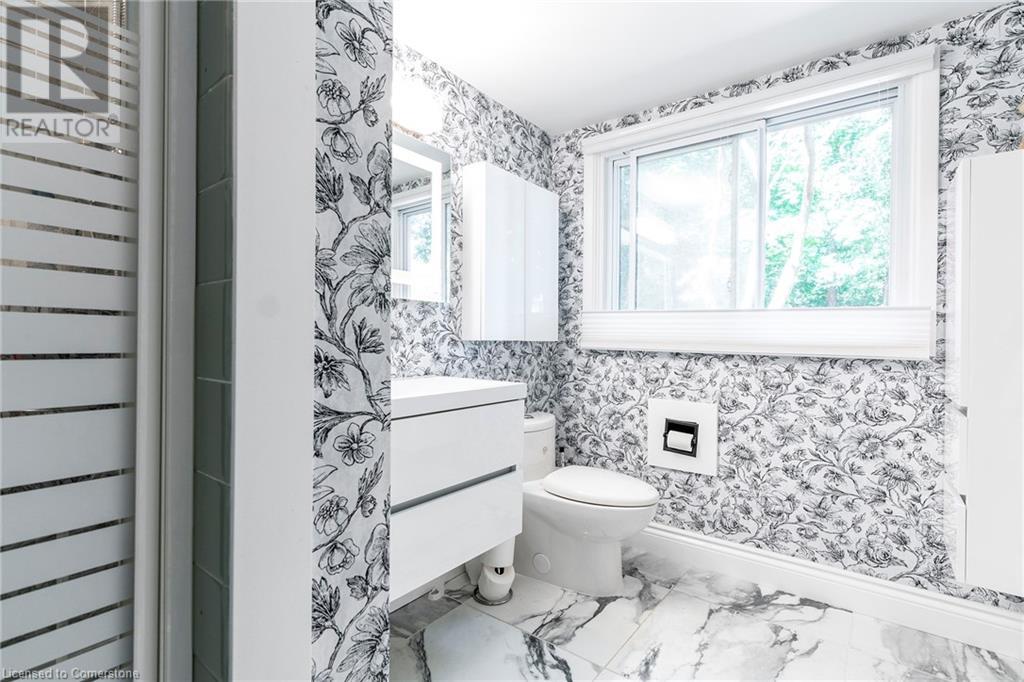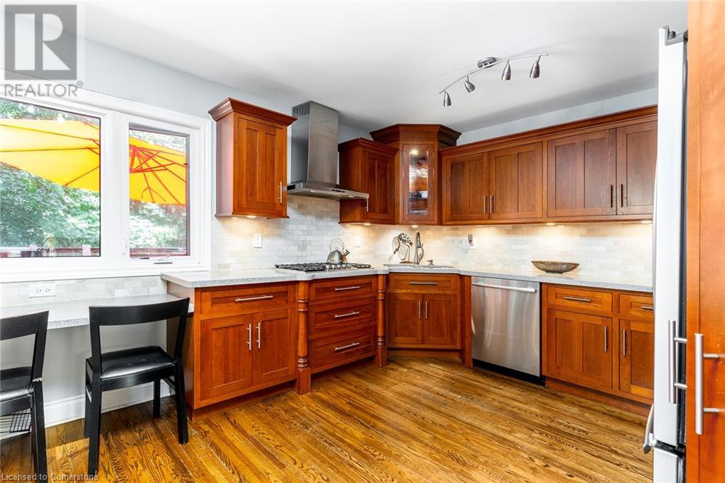 Check out this sprawling brick raised bungalow w/double garage on an amazing private wooded lot. This home offers 5 total beds & 2 baths. The main floor offers great sized main rooms giving a very spacious feel. The Liv Rm has a Gas FP perfect for cozy nights at home that is open to the Din Rm w/walk out to the large back deck making it ideal for entertaining family and friends. The custom cherry Kitchen is a chefs dream with plenty of cupboards and counter space, Granite counters, High end stainless steel appliances, breakfast bar and bonus serving counter to the Din Rm. This level is complete with 3 great sized bedrooms and a 5 pce bath. The lower level is completely finished with oversized Rec Rm., 2 Beds and an updated 3 pce bath and best of all offers a walkout to the amazing tranquil back yard. You will be in awe by the tranquil feel of this great sized back yard with new large upper deck w/glass surround and lighting and large lower flagstone patio. This home must be seen, do not miss out! (id:55009)