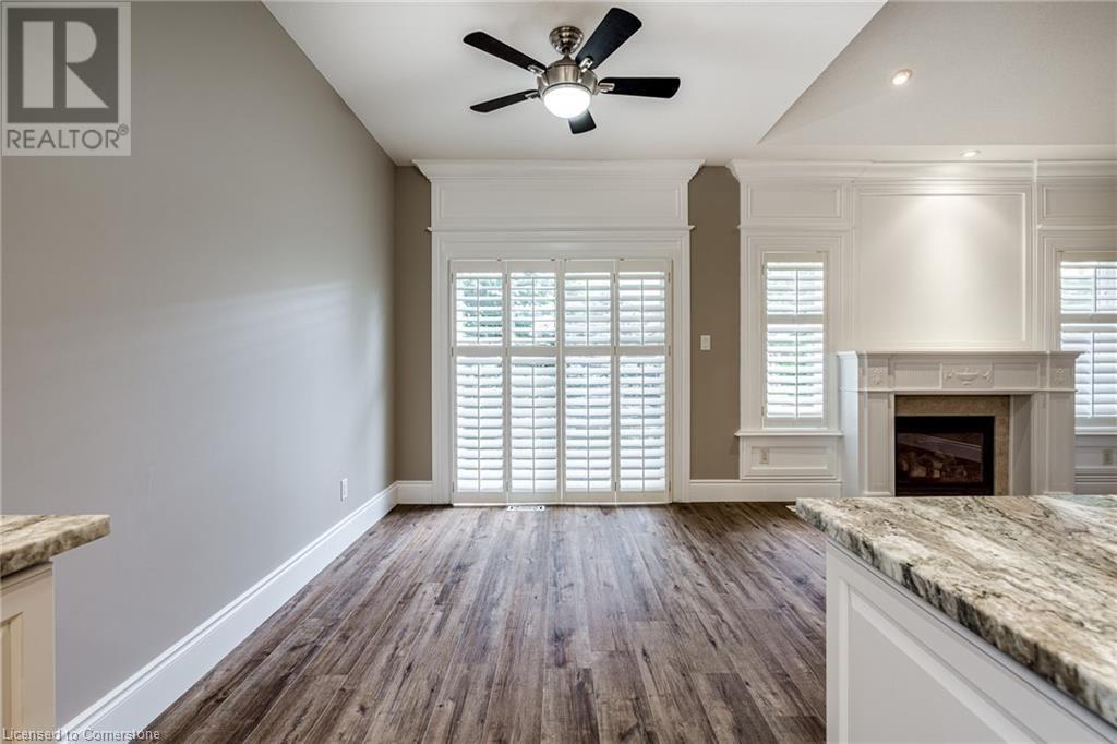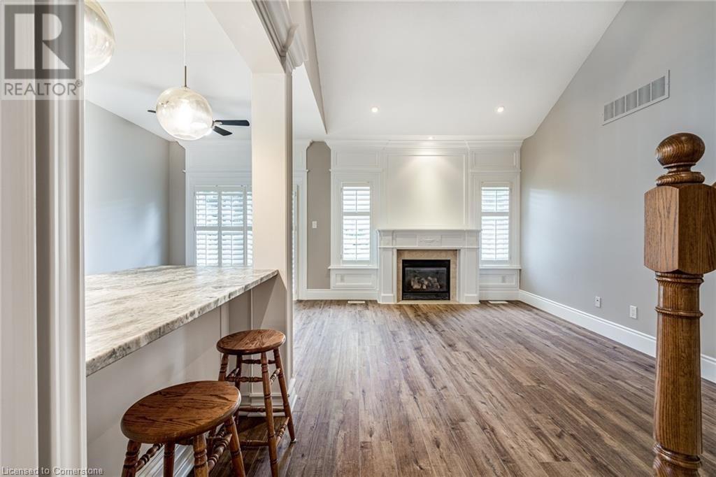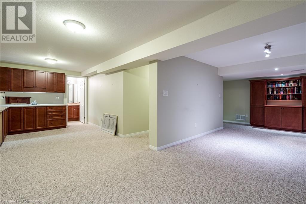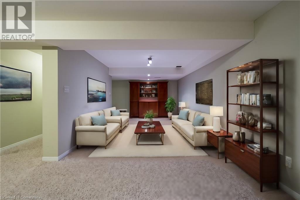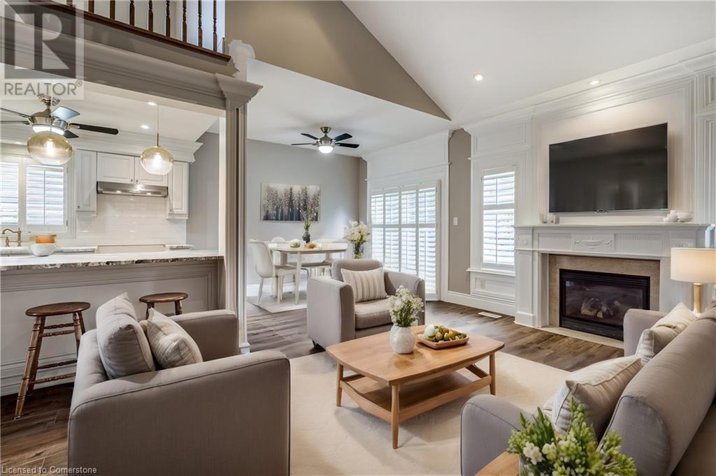 $411 MonthlyThis remarkable fully renovated bungaloft condominium in beautiful Garth Trails boasts custom high-end finishings and an abundance of space in an adult lifestyle community. Residents enjoy a variety of amenities in the private clubhouse, with indoor pool, whirlpool, sauna and gym, entertainment in the grand ballroom, library, games and crafts rooms, as well as bocce, tennis, shuffleboard and pickle ball courts and putting green. This popular 3 bedroom, 3.5 bath Deerhurst ModelEnd unit includes 2 main floor bedrooms, a 3-piece bath, laundry with new washer/dryer, inside access to the garage and a large primary bedroom boasting a walk-in closet and 4-piece ensuite. Pristine wide plank floors flow throughout the main and second floor living spaces which feature a separate dining room and recently updated kitchen complete with quartz countertops, and custom cabinets. Sliding glass doors from the breakfast area provide access to the backyard and lush green space. The spacious grand living room with gas fireplace enjoys a vaulted ceiling, beautifully detailed window mouldings, and open staircase leading to the upper loft. A third bedroom with walk-in closet and 3-piece bath complete the second floor. The basement has been perfectly designed as an additional living space and features a spacious L-shaped recreation room with corner gas fireplace, powder room and kitchenette. (id:55009)