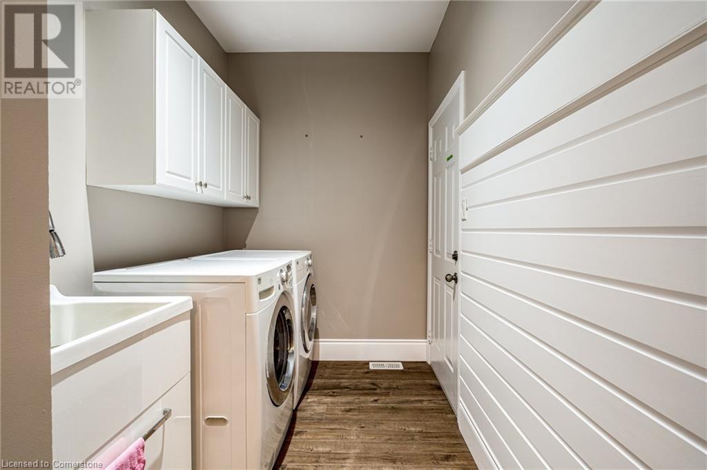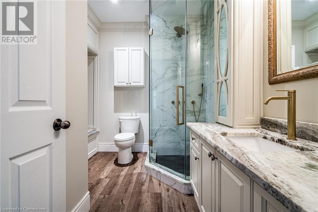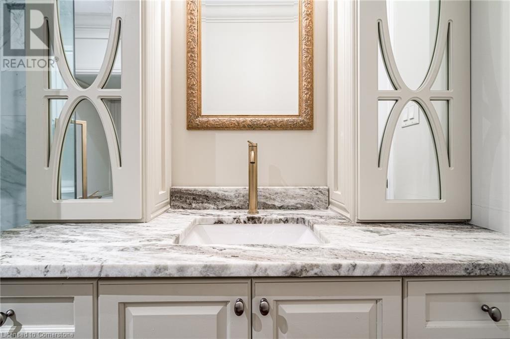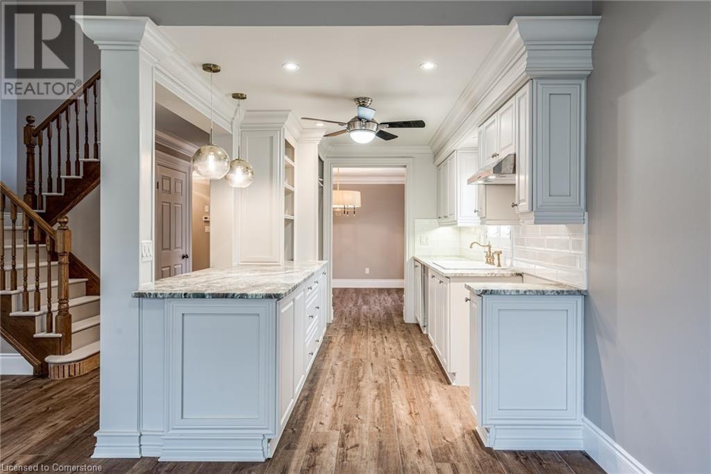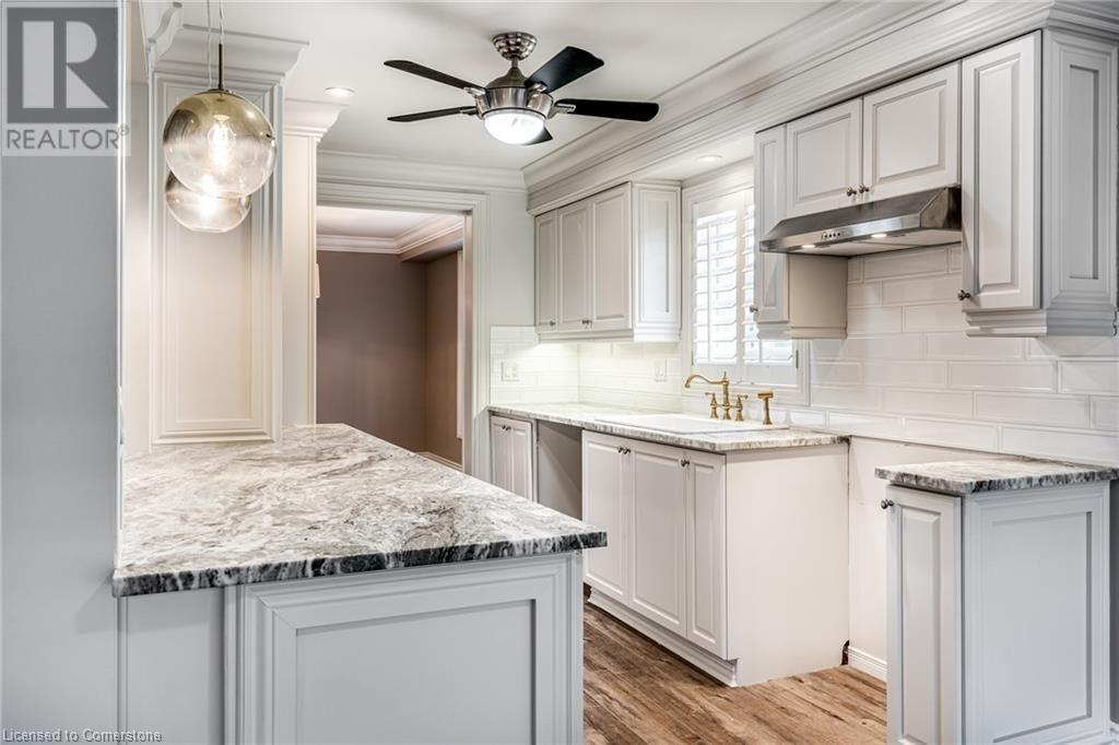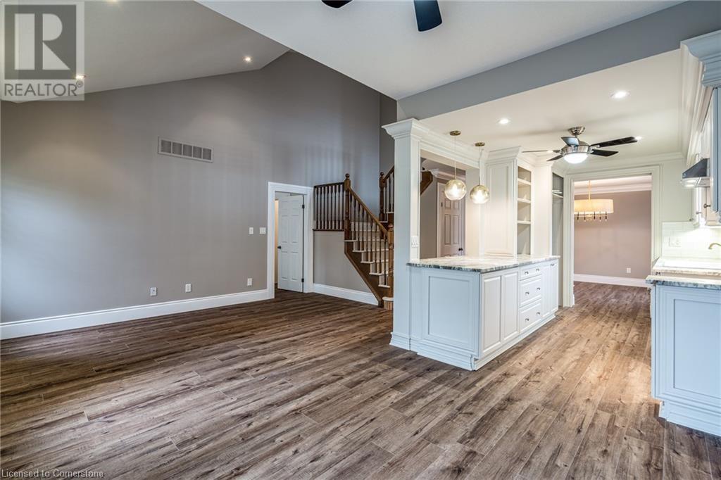 $411 MonthlyThis remarkable fully renovated bungaloft condominium in beautiful Garth Trails boasts custom high-end finishings and an abundance of space in an adult lifestyle community. Residents enjoy a variety of amenities in the private clubhouse, with indoor pool, whirlpool, sauna and gym, entertainment in the grand ballroom, library, games and crafts rooms, as well as bocce, tennis, shuffleboard and pickle ball courts and putting green. This popular 3 bedroom, 3.5 bath Deerhurst ModelEnd unit includes 2 main floor bedrooms, a 3-piece bath, laundry with new washer/dryer, inside access to the garage and a large primary bedroom boasting a walk-in closet and 4-piece ensuite. Pristine wide plank floors flow throughout the main and second floor living spaces which feature a separate dining room and recently updated kitchen complete with quartz countertops, and custom cabinets. Sliding glass doors from the breakfast area provide access to the backyard and lush green space. The spacious grand living room with gas fireplace enjoys a vaulted ceiling, beautifully detailed window mouldings, and open staircase leading to the upper loft. A third bedroom with walk-in closet and 3-piece bath complete the second floor. The basement has been perfectly designed as an additional living space and features a spacious L-shaped recreation room with corner gas fireplace, powder room and kitchenette. (id:55009)