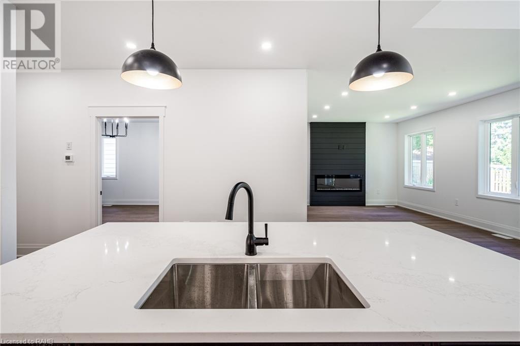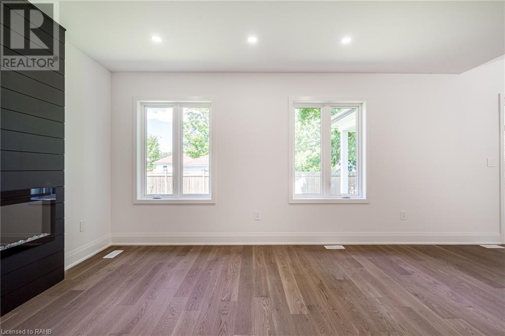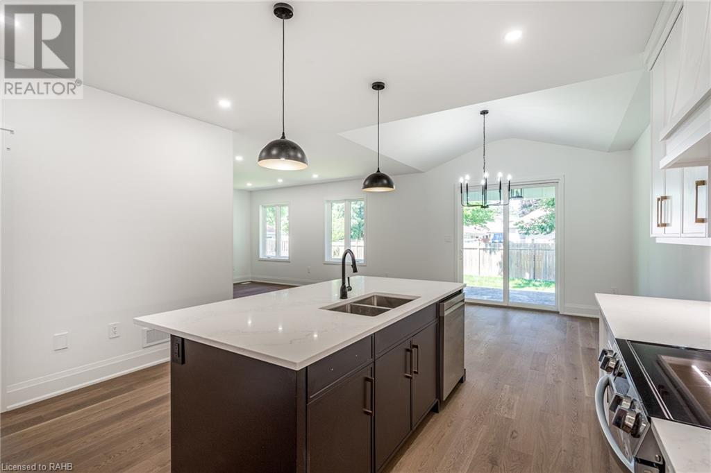 Welcome to your dream home in the heart of beautiful West Brant! This newly constructed bungalow offers modern luxury amidst a serene & family-friendly neighborhood. With mature tree-lined streets, parks,schools & the Grand River nearby, this is an outstanding place to call home. This elegant bungalow features 4 bedrooms and 3 bathrooms, thoughtfully spread across the main floor and a fully finished basement. The kitchen boasts an oversized island perfect for gatherings, a walk-in pantry, appliances & abundant counter and cabinet space.Relax in the expansive family room featuring a cozy fireplace and custom millwork. Off the dining area, step out onto a vaulted covered porch, perfect for savoring summer evenings. The primary bedroom includes an ensuite bathroom complete with double sinks, a spacious shower with bench & a walk-in closet.The basement offers a separate entrance, making it perfect for a family suite or future rental income.Experience the perfect blend of luxury & comfort in this exceptional West Brant bungalow. Schedule your private showing today. (id:55009)