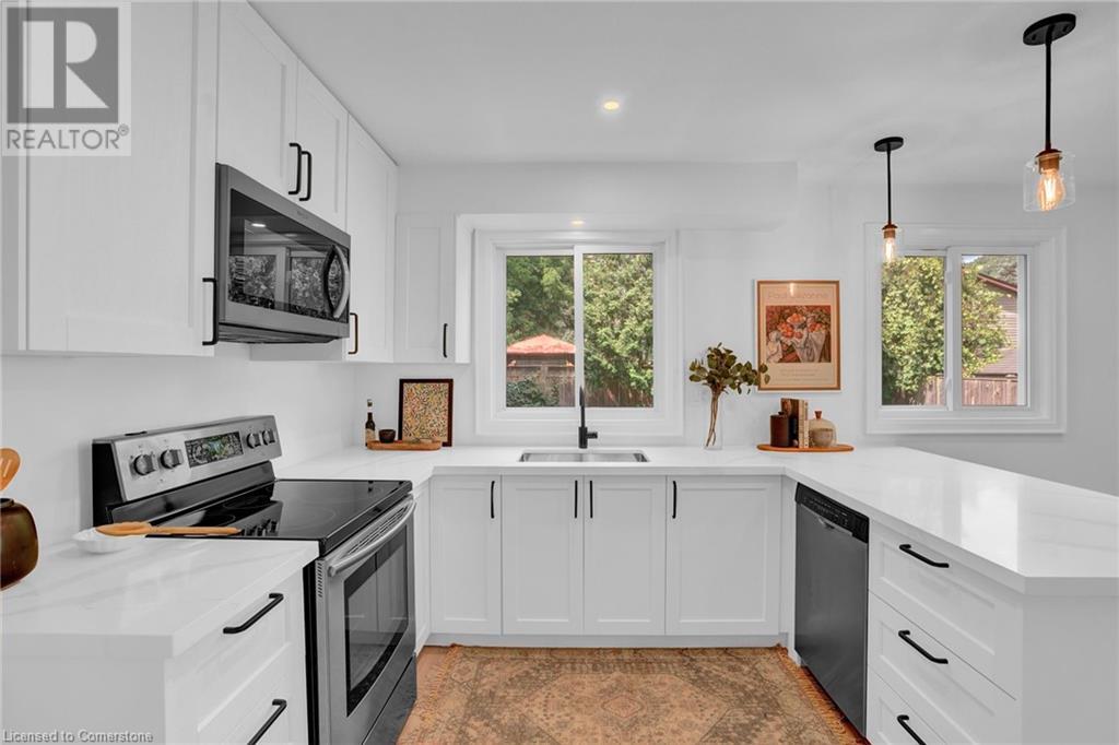 Located in the heart of the Dundas Valley. Raise your family in this beautifully updated 5 bedroom, 1.5 bath detached home with interior entrance to 1 car garage on a pool sized private landscaped lot close to all schools and amenities. Features include: new kitchen with quartz countertop (2024), new stainless steel fridge and microwave (2024), stainless steel stove and dishwasher (2018), new powder room (2024), 2 new ductless AC units (2024), new exterior & interior doors (2024), new electric light fixtures (2024), new paint (2024), new premium vinyl plank flooring (2024), new trim (2024), new carpet (2024), new living room window treatment (2024), new paved driveway (2024), 3-piece bathroom (2023), refurbished front porch (2024), roof (circa 2017), 100 AMP Service. Potential for: a heated garage, in-law suite with separate entrance to basement, HWT owned, RSA. Enjoy the family oriented small town feel of Dundas and be steps away from the Dundas Driving Park and Dundas Tennis Club. Find nature nearby being a short distance from the Christie Lake Conservation Area, the Spencer Gorge Wilderness Area, Tew's Falls, Webster's Falls, the Dundas Peak, the Dundas Valley and Beverly Golf Clubs. Explore the unique boutiques, shops, restaurants and services of nearby Downtown Dundas. Enjoy quiet suburban living with quick highway access to Toronto and beyond! Call 13 Delsey St. your new family home. You won't be disappointed. (id:55009)