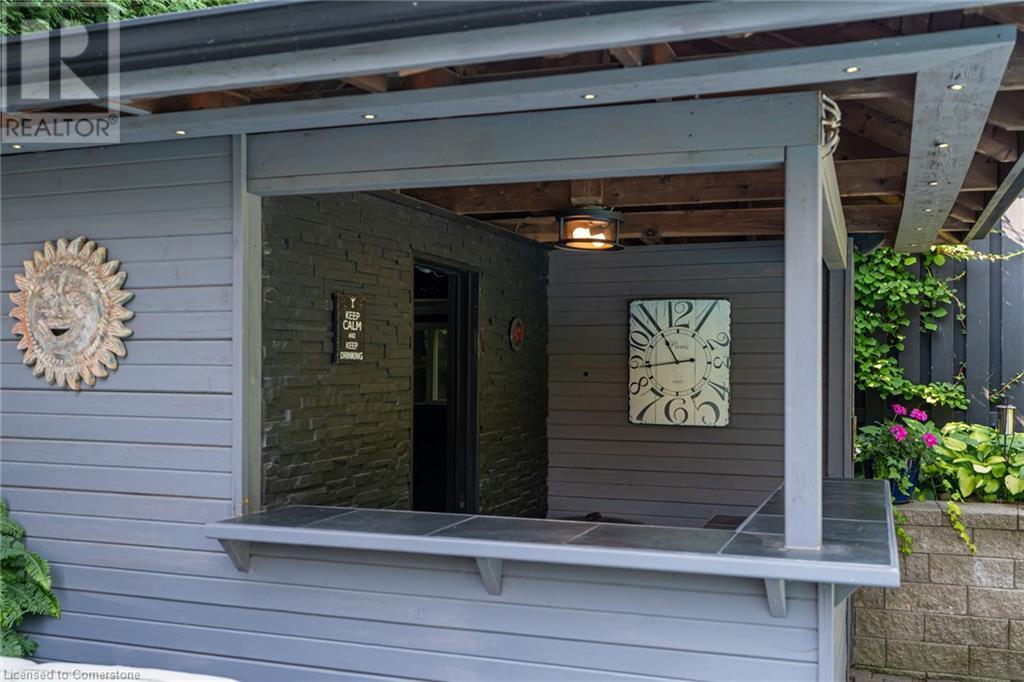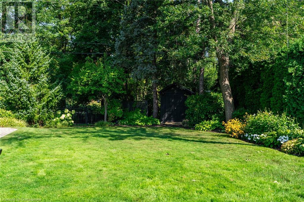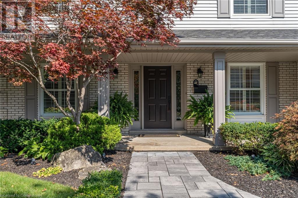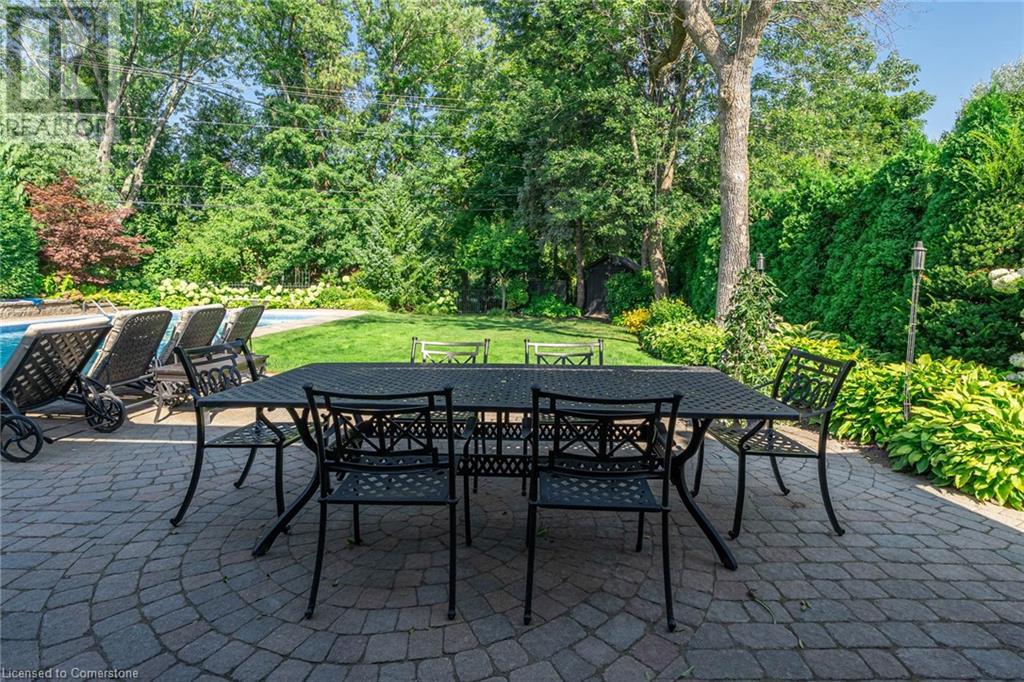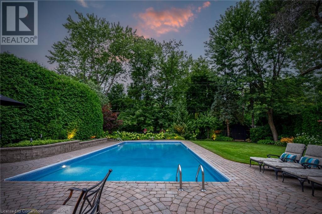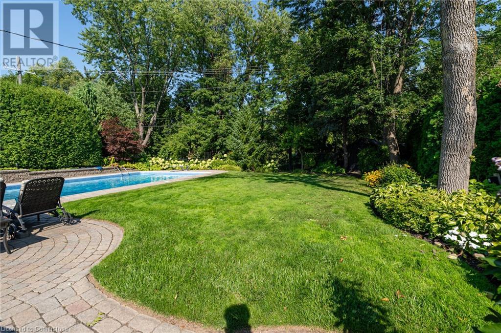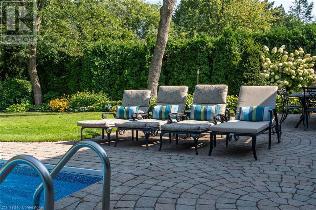 BEAUTIFUL 2-storey family home in the established Tyandaga neighbourhood impeccably maintained. This 3 bedrm, 2.5 bathrm home has just under 2000 sq ft, in-ground pool & backs onto Tyandaga Golf Course! The main floor marries a traditional floor plan with a formal living & dining room that opens up to the detailed contemporary elements of the kitchen & family room. The kitchen features honed black granite countertops, stainless steel appliances & linear tiled backsplash, with pot lights, a large window overlooking the pool & a peninsula that borders the family rm. The decorative wood beams & gas fireplace can be seen from the kitchen with convenient large glass sliding doors that add a vast amount of natural light & easy access to the backyard. The second level features 3 bedrms, hardwd floors & updated windows. The primary spa-like ensuite features a high-end white soaker tub, heated floors, large glass shower & custom white vanity with quartz countertops & a great amount of storage. The 2nd level is complete with a 2nd 4-piece bathrm with a double vanity & glass shower with subway tile. Basement features two great flex spaces & adds an additional 1000+ square feet of living space, perfect for a recreation room, theatre room, gym, home office, complete with patterned tiled flooring in the laundry & spacious storage room. Built-in wall of cabinet’s offers large storage options. The exterior of the home is fabulous with the very large PRIVATE backyard having incredible amenities such as a cedar bar/cabana & changing room, in-ground pool with a diving board, updated liner & pump, three lounge spaces on the interlock patio, TWO gas hook ups for BBQs, storage shed & a large grass area that all backs onto the Tyandaga Golf Course. The backyard is an entertainers dream. With a 2-car garage & 4-car concrete laneway this home is walking distance to parks and shops & a very short drive to all that Downtown Burlington has to offer, schools, Bruce Trail & all major highways. (id:55009)