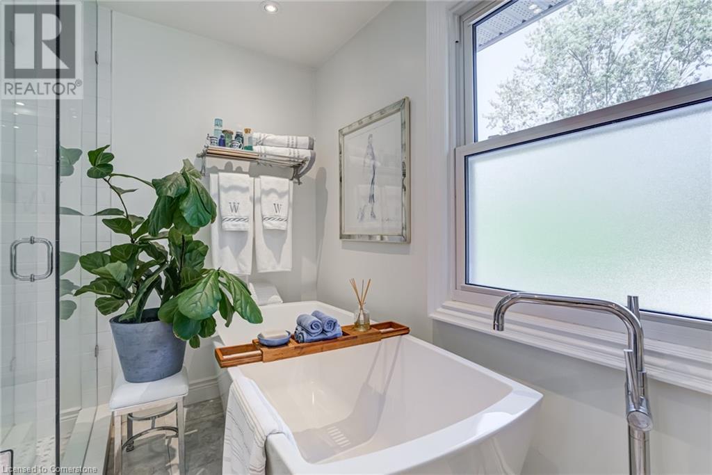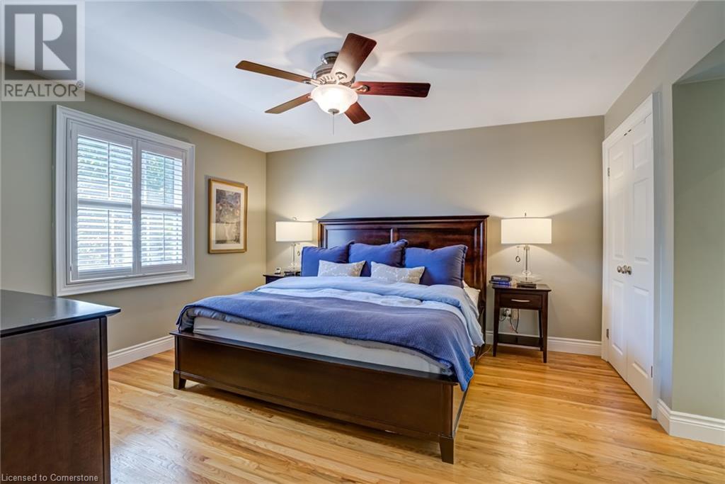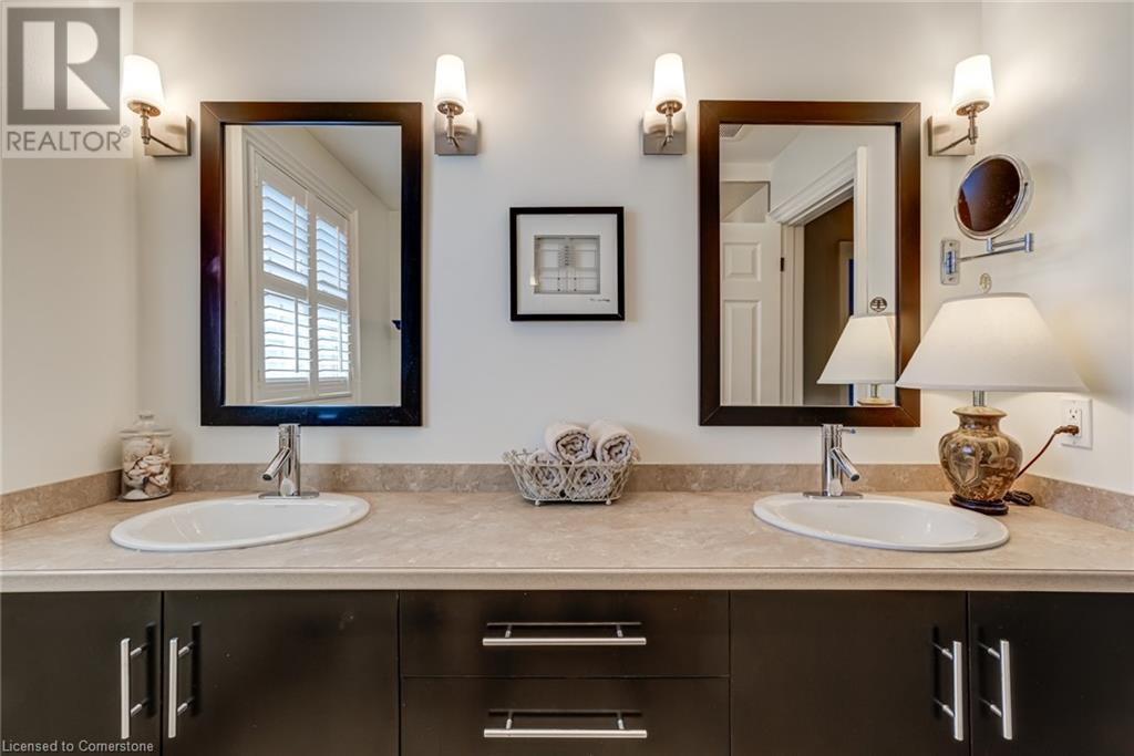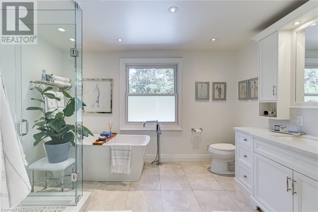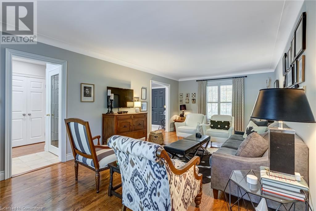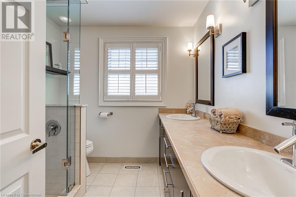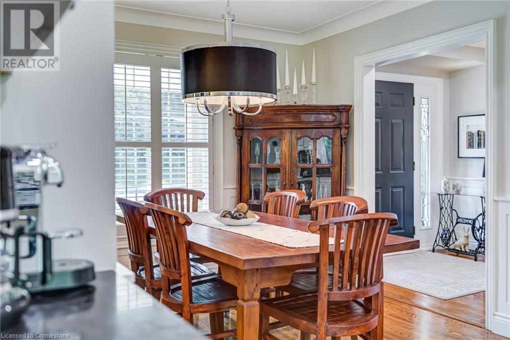 BEAUTIFUL 2-storey family home in the established Tyandaga neighbourhood impeccably maintained. This 3 bedrm, 2.5 bathrm home has just under 2000 sq ft, in-ground pool & backs onto Tyandaga Golf Course! The main floor marries a traditional floor plan with a formal living & dining room that opens up to the detailed contemporary elements of the kitchen & family room. The kitchen features honed black granite countertops, stainless steel appliances & linear tiled backsplash, with pot lights, a large window overlooking the pool & a peninsula that borders the family rm. The decorative wood beams & gas fireplace can be seen from the kitchen with convenient large glass sliding doors that add a vast amount of natural light & easy access to the backyard. The second level features 3 bedrms, hardwd floors & updated windows. The primary spa-like ensuite features a high-end white soaker tub, heated floors, large glass shower & custom white vanity with quartz countertops & a great amount of storage. The 2nd level is complete with a 2nd 4-piece bathrm with a double vanity & glass shower with subway tile. Basement features two great flex spaces & adds an additional 1000+ square feet of living space, perfect for a recreation room, theatre room, gym, home office, complete with patterned tiled flooring in the laundry & spacious storage room. Built-in wall of cabinet’s offers large storage options. The exterior of the home is fabulous with the very large PRIVATE backyard having incredible amenities such as a cedar bar/cabana & changing room, in-ground pool with a diving board, updated liner & pump, three lounge spaces on the interlock patio, TWO gas hook ups for BBQs, storage shed & a large grass area that all backs onto the Tyandaga Golf Course. The backyard is an entertainers dream. With a 2-car garage & 4-car concrete laneway this home is walking distance to parks and shops & a very short drive to all that Downtown Burlington has to offer, schools, Bruce Trail & all major highways. (id:55009)