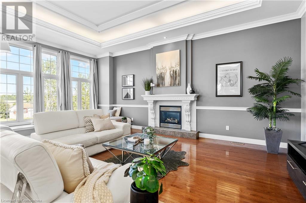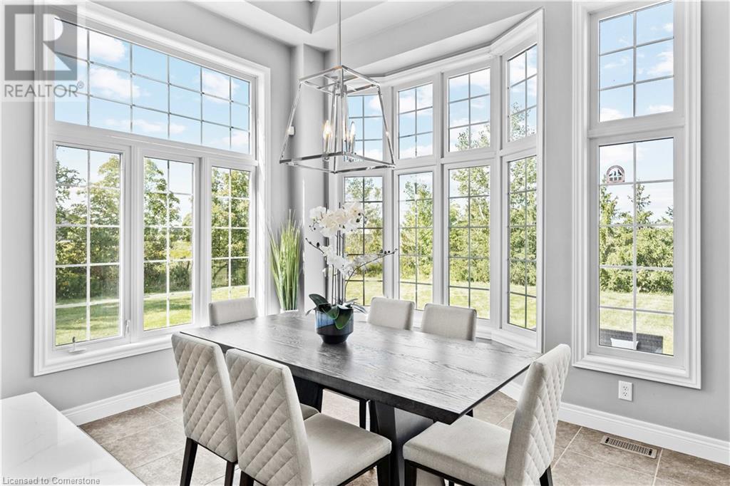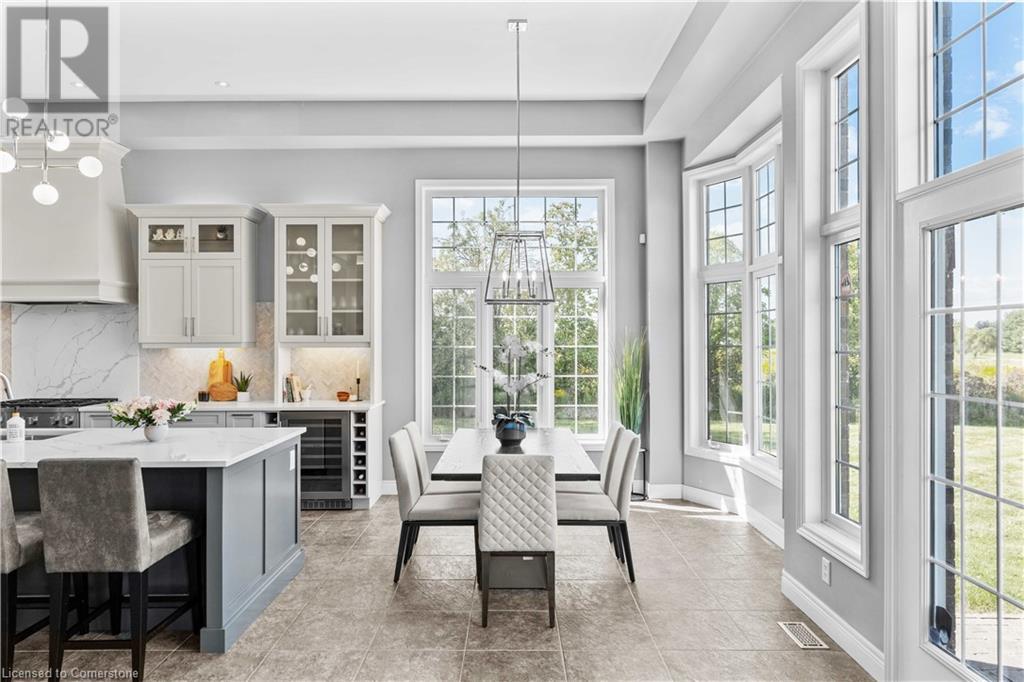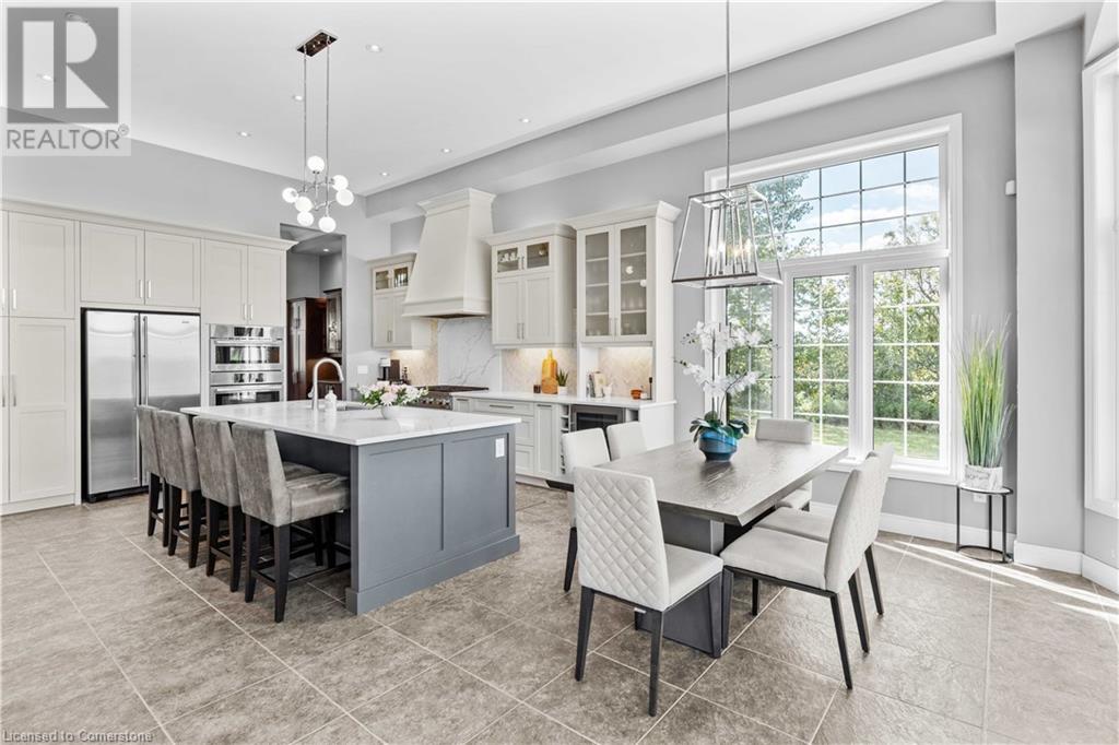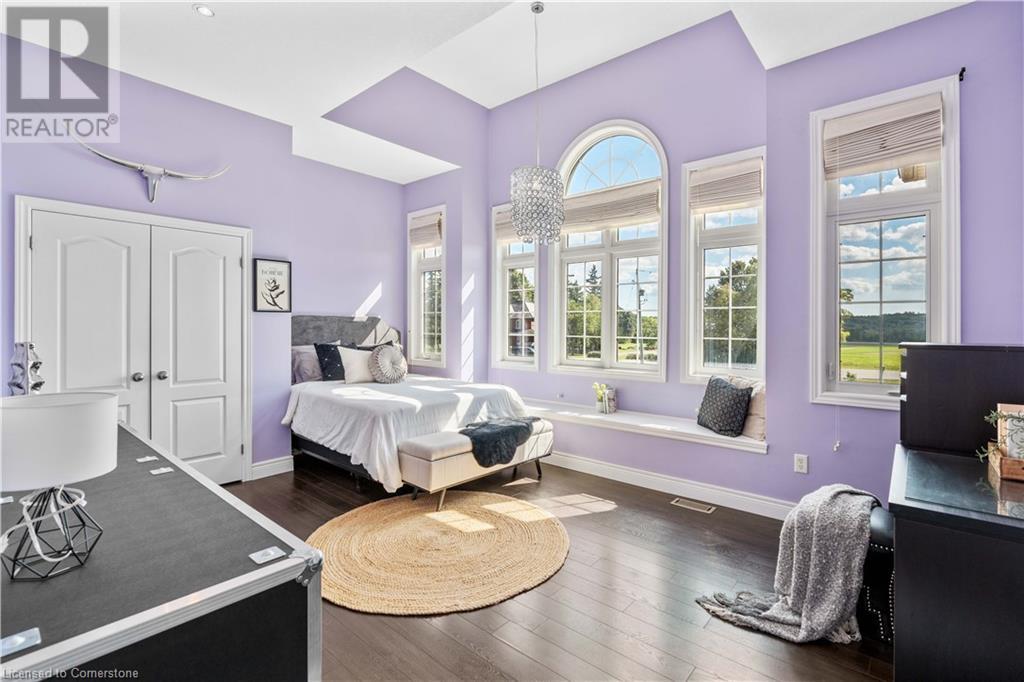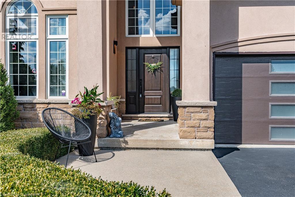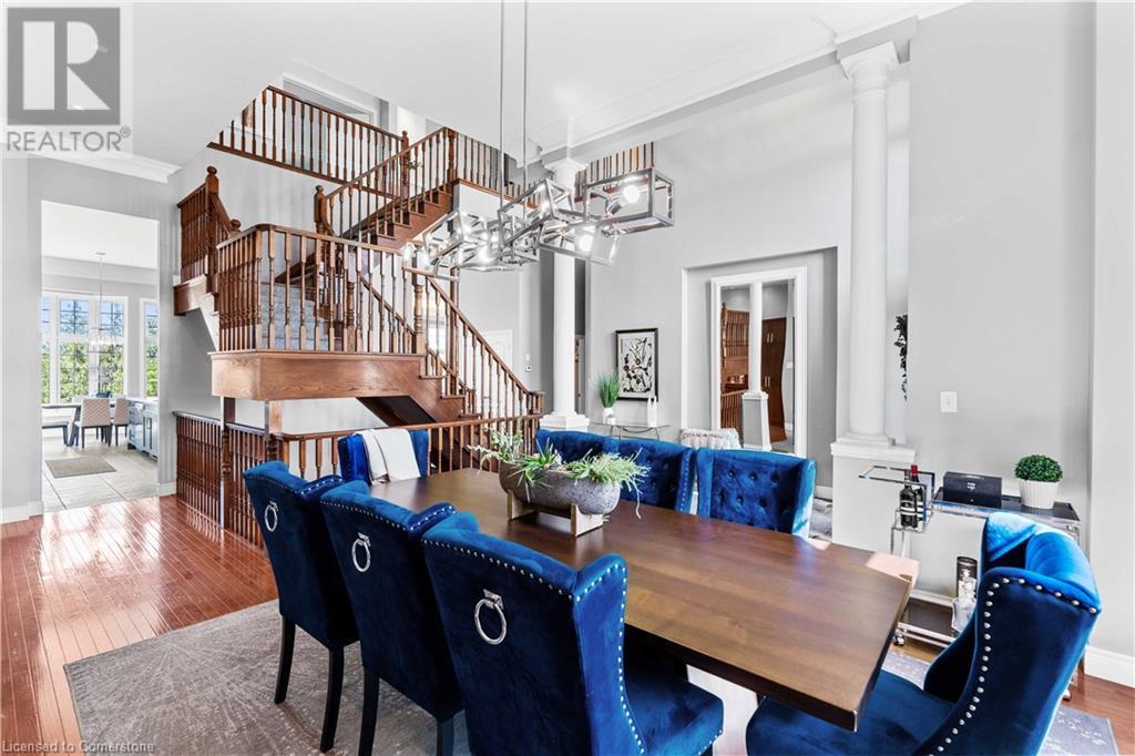 Discover your dream home in scenic Brant County! This luxurious 4-bdrm, 4-bath residence offers over 3,885 sq ft of above-grade living space, + a f-fin bsmt on a sprawling 1.334 A private property. As you approach, a gated entrance opens to a long driveway w/ parking for over 10 vehicles & a 4-car grg. Step inside to a grand foyer w/ soaring ceilings. The main flr boasts rich hrdwd flrs, a formal din rm w/ crown moulding & pot lighting, & a sophisticated butler’s servery. The renovated kitch ('19) feat white cabinetry, quartz countertops, JennAir fridge, Dacor gas range, Miele wall oven/microwave/dishwasher, a large island with seating for 4+ & a built-in custom desk. A cozy dinette area w/ oversized windows overlooks the rear yard. The adjoining great room impresses w/ tray ceilings, custom bench seating, & a gas FP. French doors lead to a lush backyard oasis, perfect for relaxation & entertaining. The upper lvl feat a serene primary retreat w/ a lavish 5-pc ensuite & oversized walk-in closet. 3 additional bdrms share a beautifully appointed 5-pc bath. The part-fin lower lvl offers a lrg rec rm w/ a stacked-stone accent wall, an office/den, & ample storage space. Outside, enjoy the interlock patio, fire pit, & mature foliage, offering privacy & tranquility with wildlife sightings. Located minutes from Caledonia, Brantford, Ancaster, & Hamilton, this home blends rural charm with urban convenience—a true sanctuary. (id:55009)