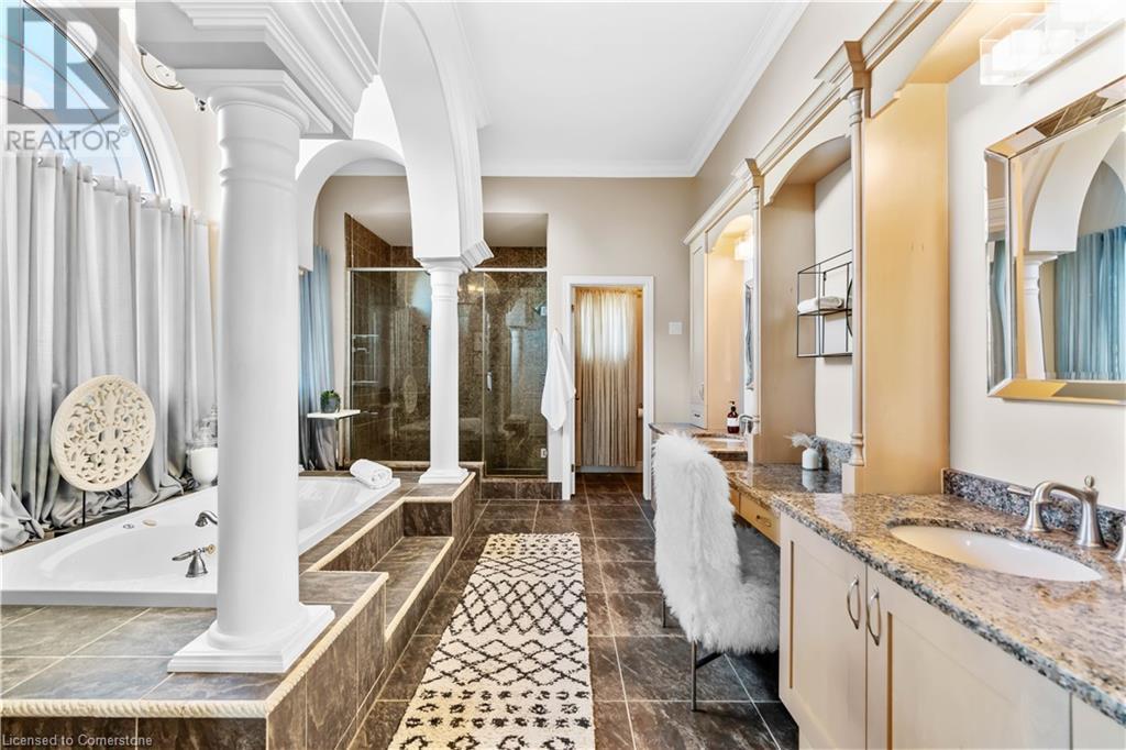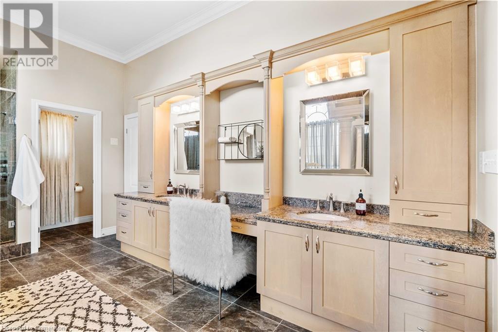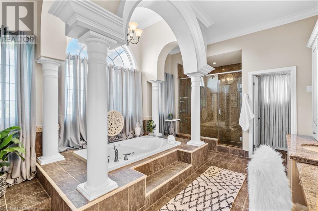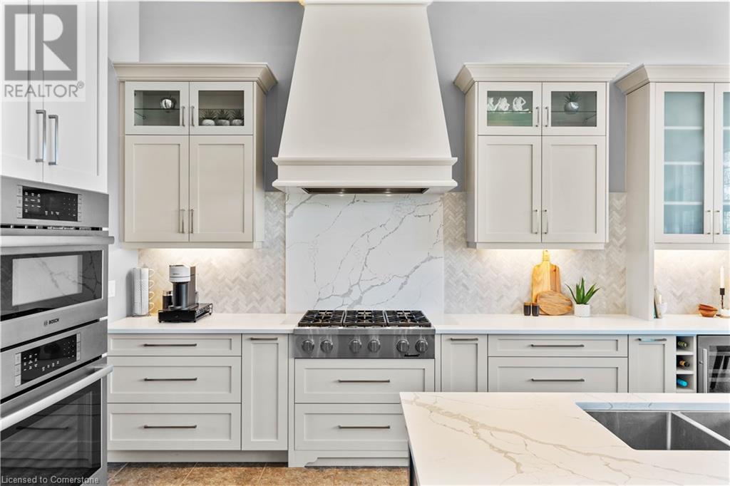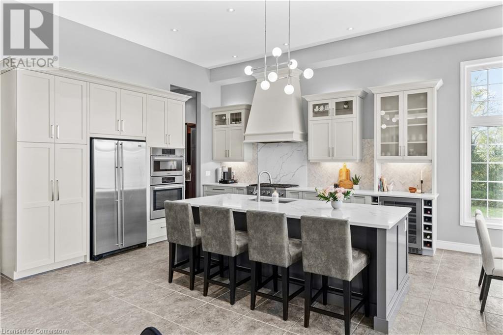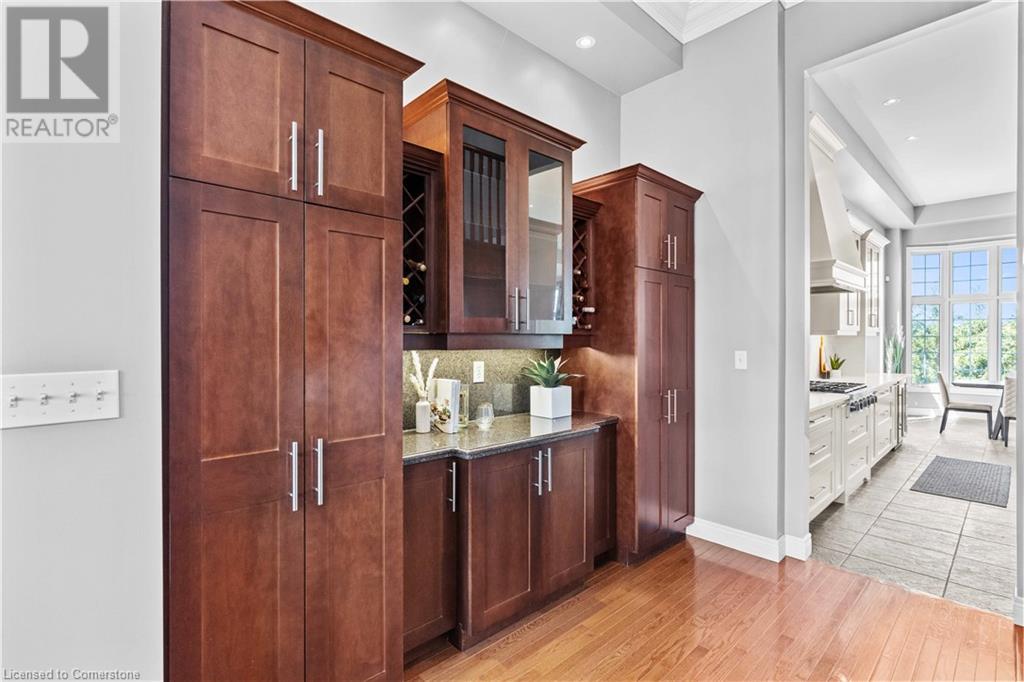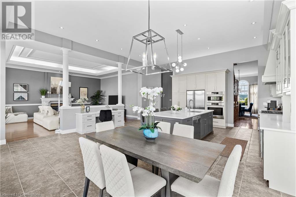 Discover your dream home in scenic Brant County! This luxurious 4-bdrm, 4-bath residence offers over 3,885 sq ft of above-grade living space, + a f-fin bsmt on a sprawling 1.334 A private property. As you approach, a gated entrance opens to a long driveway w/ parking for over 10 vehicles & a 4-car grg. Step inside to a grand foyer w/ soaring ceilings. The main flr boasts rich hrdwd flrs, a formal din rm w/ crown moulding & pot lighting, & a sophisticated butler’s servery. The renovated kitch ('19) feat white cabinetry, quartz countertops, JennAir fridge, Dacor gas range, Miele wall oven/microwave/dishwasher, a large island with seating for 4+ & a built-in custom desk. A cozy dinette area w/ oversized windows overlooks the rear yard. The adjoining great room impresses w/ tray ceilings, custom bench seating, & a gas FP. French doors lead to a lush backyard oasis, perfect for relaxation & entertaining. The upper lvl feat a serene primary retreat w/ a lavish 5-pc ensuite & oversized walk-in closet. 3 additional bdrms share a beautifully appointed 5-pc bath. The part-fin lower lvl offers a lrg rec rm w/ a stacked-stone accent wall, an office/den, & ample storage space. Outside, enjoy the interlock patio, fire pit, & mature foliage, offering privacy & tranquility with wildlife sightings. Located minutes from Caledonia, Brantford, Ancaster, & Hamilton, this home blends rural charm with urban convenience—a true sanctuary. (id:55009)