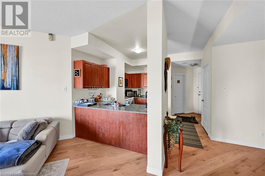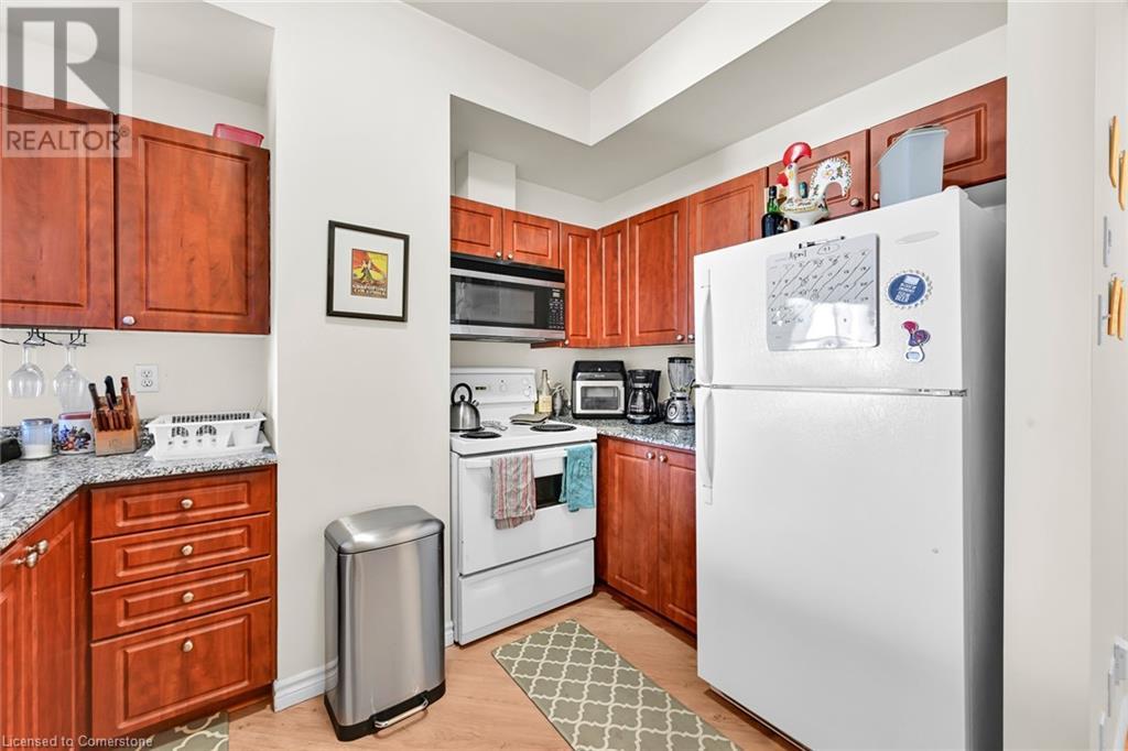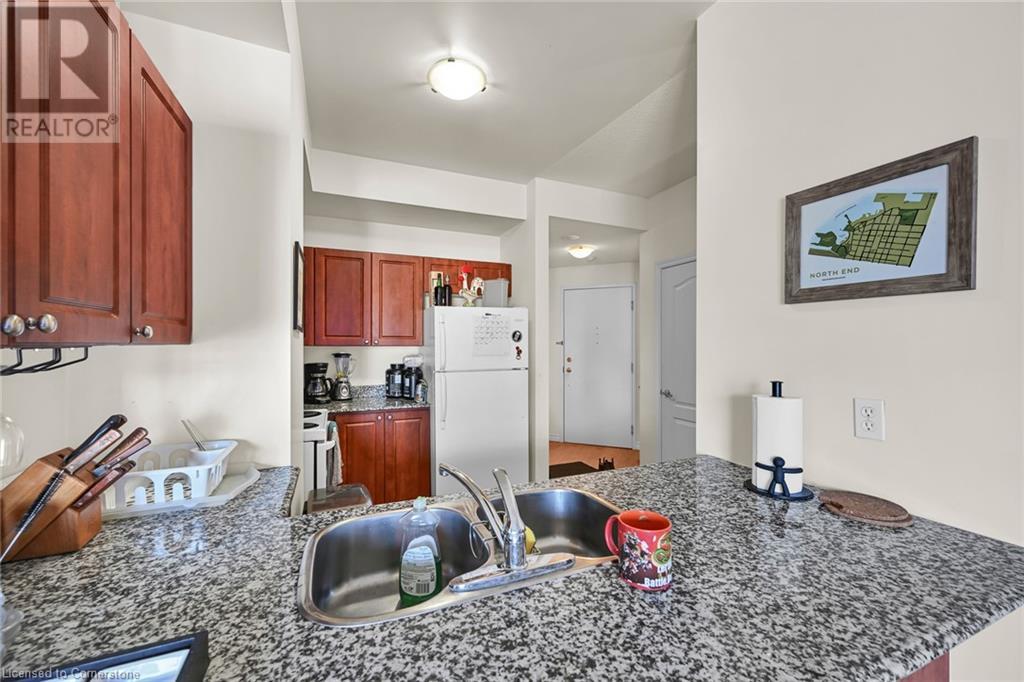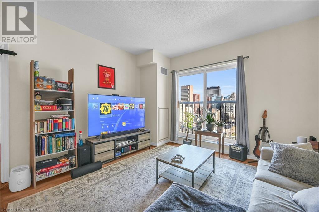 $753.80 MonthlyExperience urban living at its finest in this stylish one-bedroom apartment, ideally located near trendy cafes, restaurants, and shops. This well-maintained unit offers 850 square feet of living space, featuring a spacious living area with large windows that fill the space with natural light and offer stunning city views. Step inside to discover an open-concept kitchen with sleek granite countertops and ample storage, complemented by a cozy dining nook perfect for meals or a home office. The generous bedroom provides a peaceful retreat, while the oversized bathroom and convenient in-suite laundry add to the unit’s appeal. Enjoy the building amenities, including an in-house gym and a rooftop terrace with breathtaking views of the Hamilton skyline, especially at night. A transferable underground parking space has been secured for the new owner. Professionally cleaned and ready for immediate occupancy, this condo also offers 24-hour concierge service for your convenience and security. Don't miss your chance to live in one of Hamilton's most sought-after neighbourhoods. (id:55009)