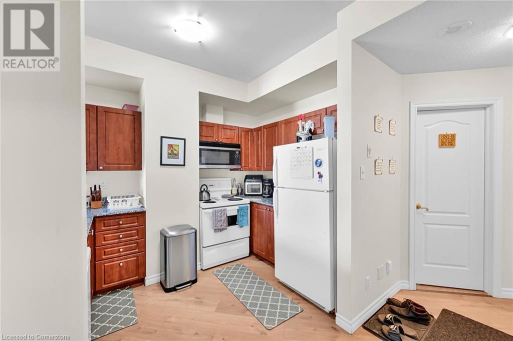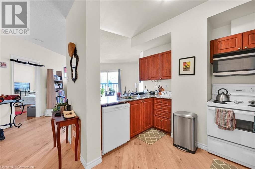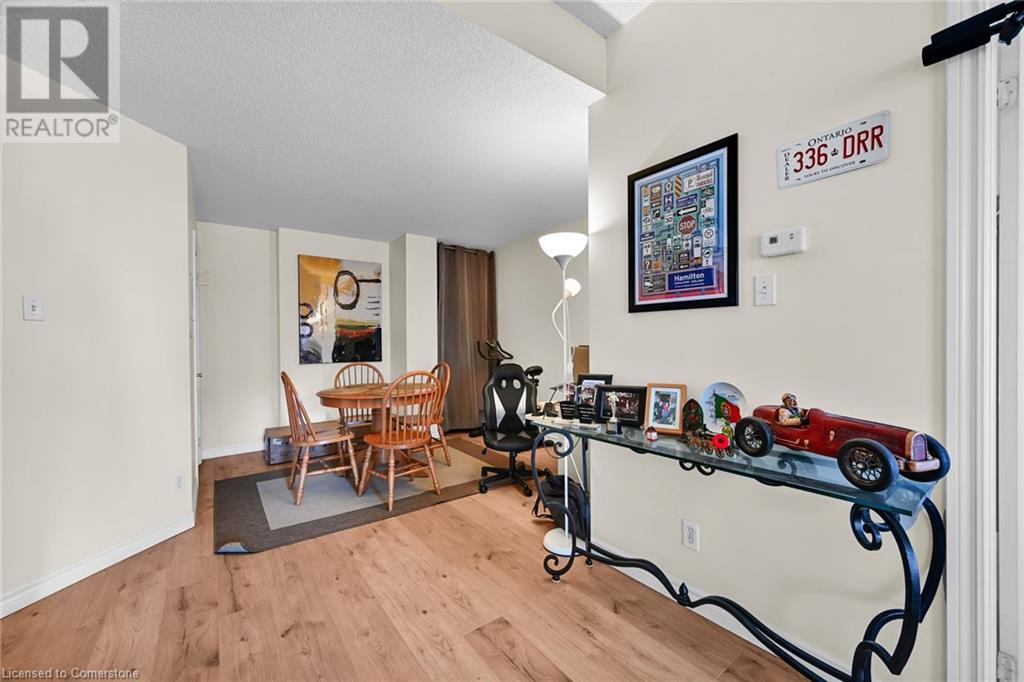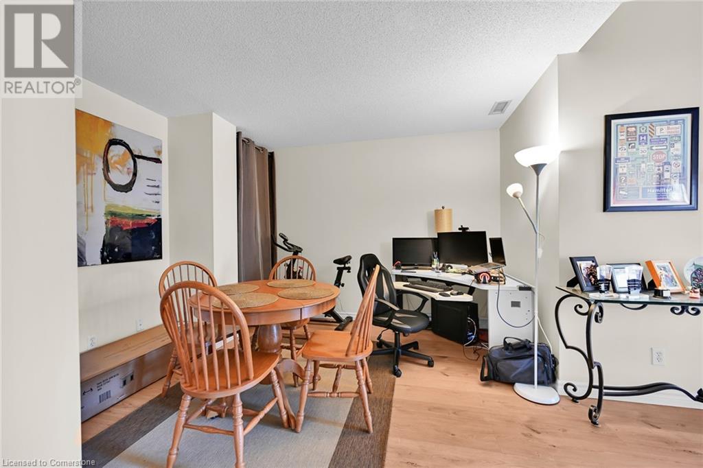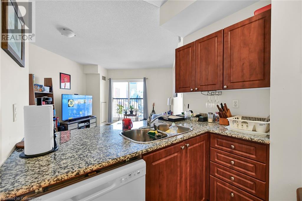 $753.80 MonthlyExperience urban living at its finest in this stylish one-bedroom apartment, ideally located near trendy cafes, restaurants, and shops. This well-maintained unit offers 850 square feet of living space, featuring a spacious living area with large windows that fill the space with natural light and offer stunning city views. Step inside to discover an open-concept kitchen with sleek granite countertops and ample storage, complemented by a cozy dining nook perfect for meals or a home office. The generous bedroom provides a peaceful retreat, while the oversized bathroom and convenient in-suite laundry add to the unit’s appeal. Enjoy the building amenities, including an in-house gym and a rooftop terrace with breathtaking views of the Hamilton skyline, especially at night. A transferable underground parking space has been secured for the new owner. Professionally cleaned and ready for immediate occupancy, this condo also offers 24-hour concierge service for your convenience and security. Don't miss your chance to live in one of Hamilton's most sought-after neighbourhoods. (id:55009)