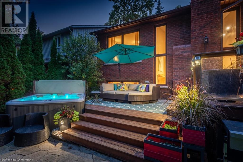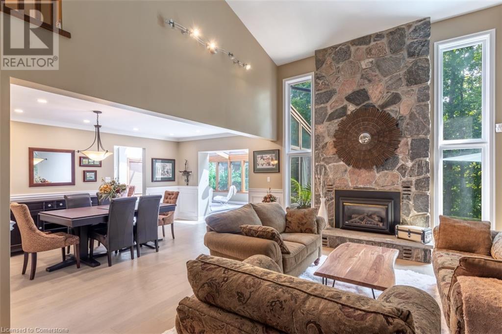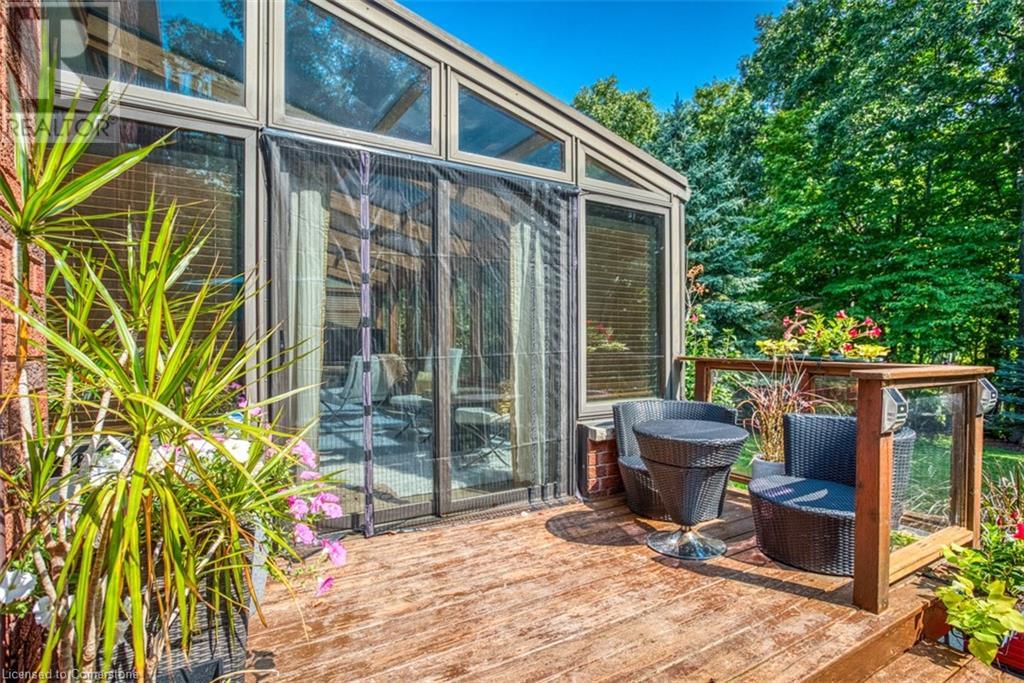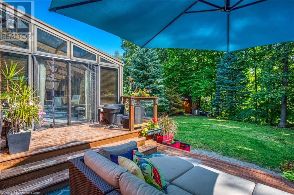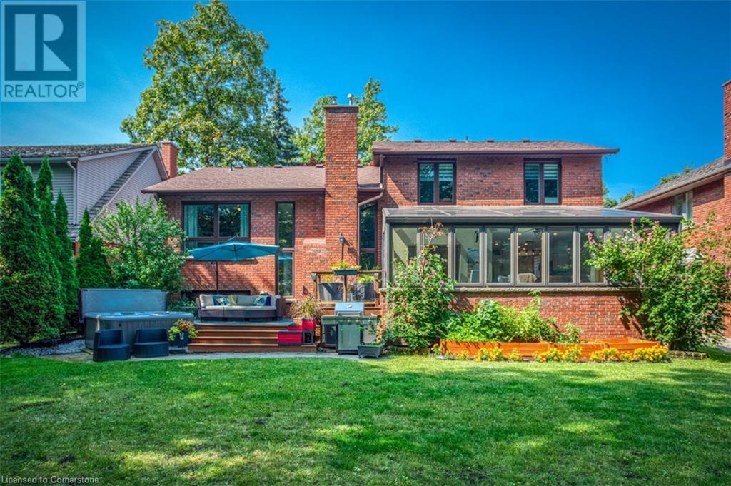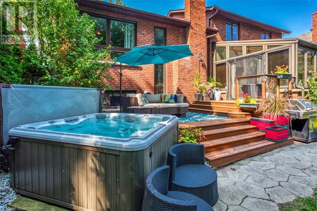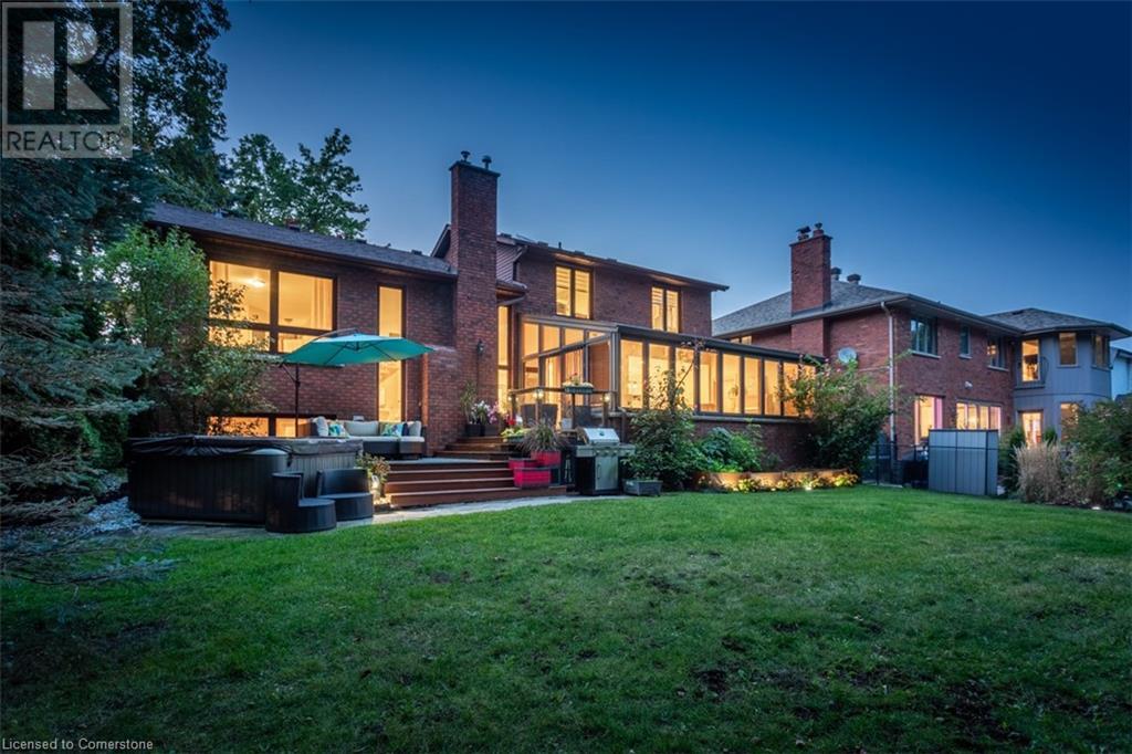RAVINE SETTING - One-of-a-kind 'TRIGIANI' built, brick, 4 bd, 4 bth home - nestled on a 60 x 144 ft premium lot. Too special to build the ordinary - designed for entertaining & building memories. EXCELLENT CURB APPEAL - UPDATED & METICULOUSLY maintained. Boasting Pride-of-Ownership featuring a SOARING VAULTED CEILING in the living room with a DRAMATIC STONE GAS FIREPLACE, a SUNFILLED 4 season SUNROOM with glassed-window walls bringing the outdoors inside. The 'chefs' kitchen has an abundance of counter space, 'Frigidaire' & 'Bosch' appliances, pantry, wine fridge & breakfast area - a large dining room for family gatherings. Richly panelled walls in the MAIN FLOOR OFFICE have plenty of built-in bookshelves, desk area & oversized window. A MAIN FLOOR HOME THEATRE has its own wet bar - movie night with the family! The primary bedroom offers a secluded area for peace & quietness with a walk-in closet, 5 piece ensuite, separate shower stall, soaker tub & double vanity. 3 remaining bedrooms, on a separate wing, are spacious with ample closet space. A full size basement has a recreation room, multi-purpose & exercise area, 3 piece bath, coldroom & utility room. The over-sized double car garage has plenty of storage space, in-side entry to the residence & inter-locking brick drive. The front, back & garden irrigation system has a roof censor monitor. Rear yard decking/HOT TUB. Quick access to area amenities such as Schools, Hwy's 5, 407 & 403, Places of Worship - SOUGHT AFTER AREA!! (id:55009)