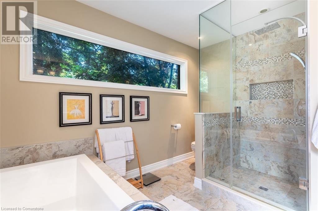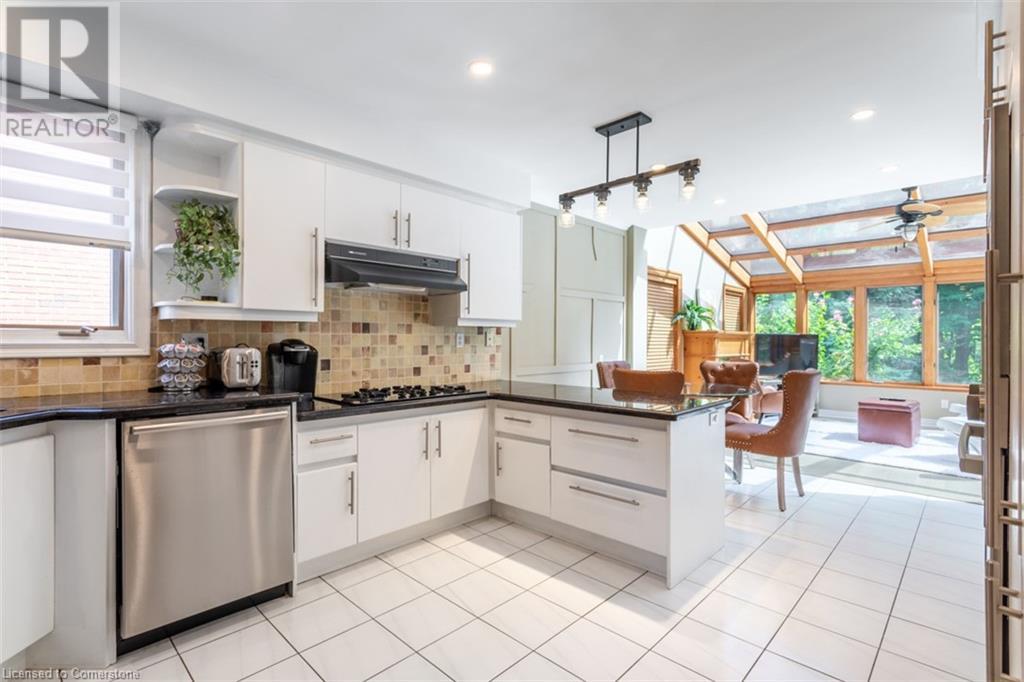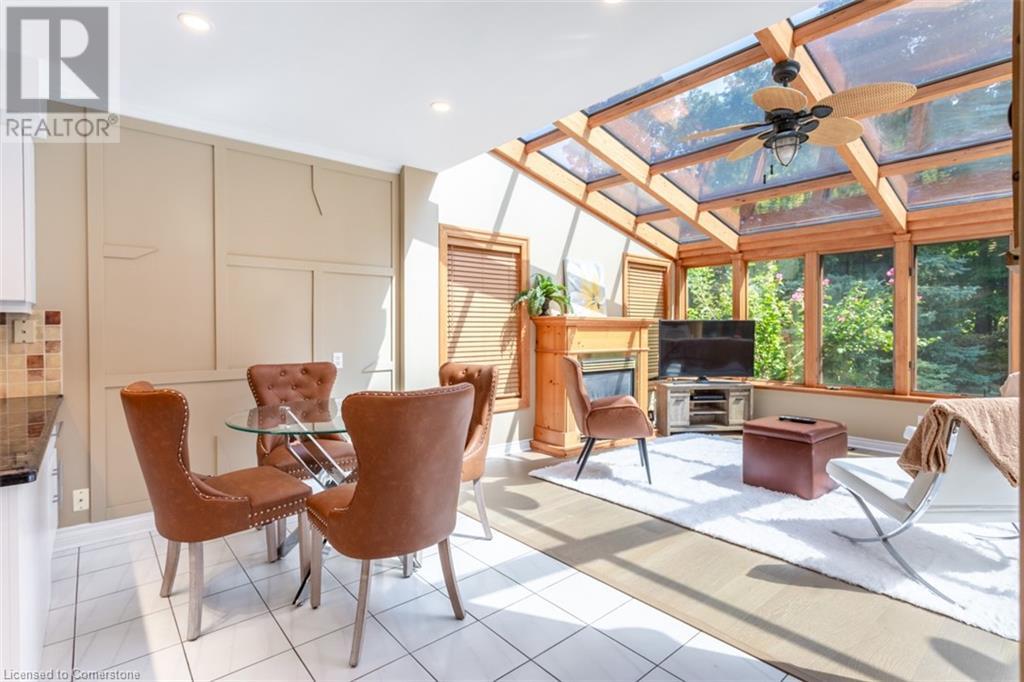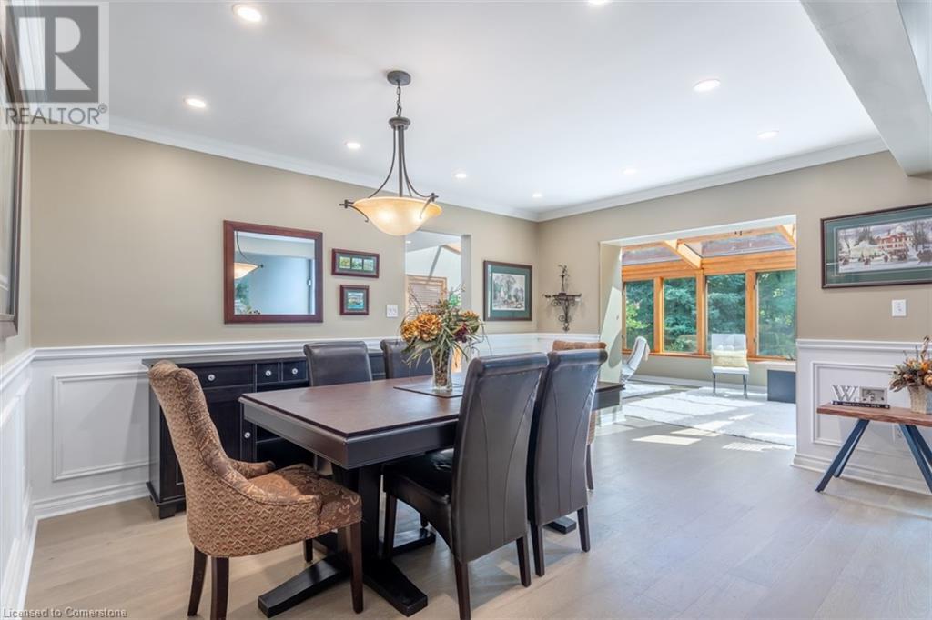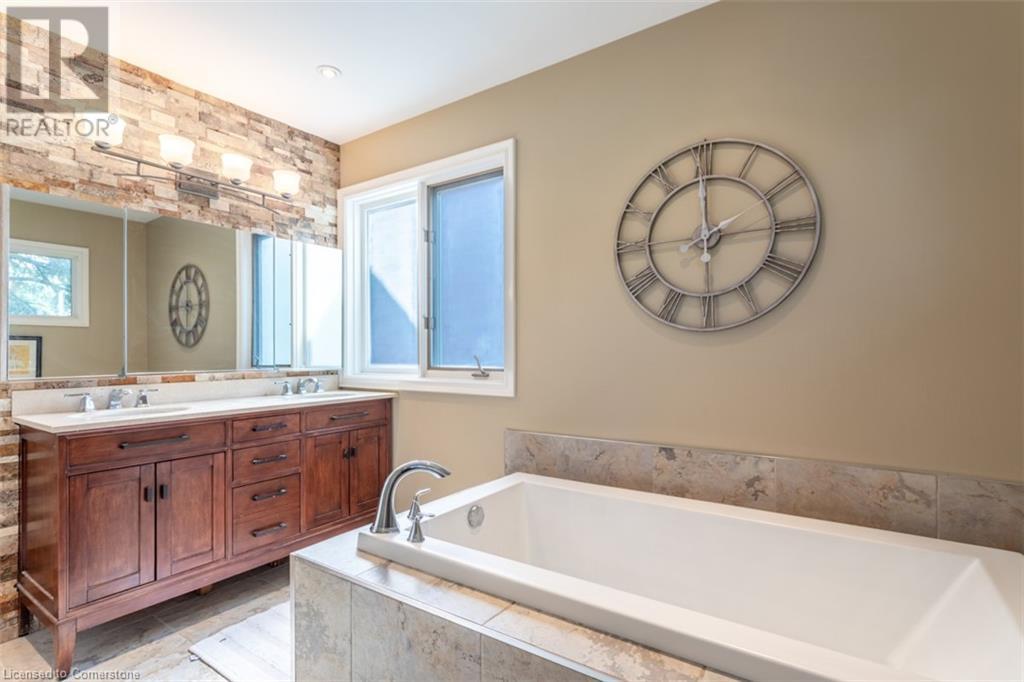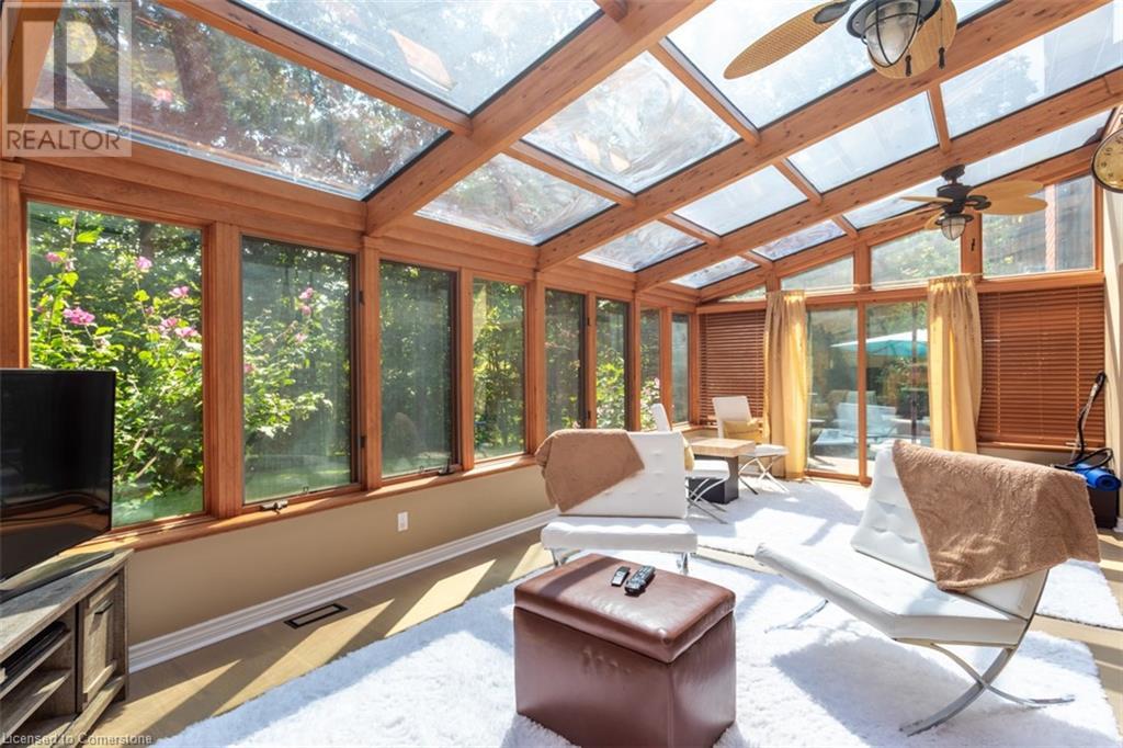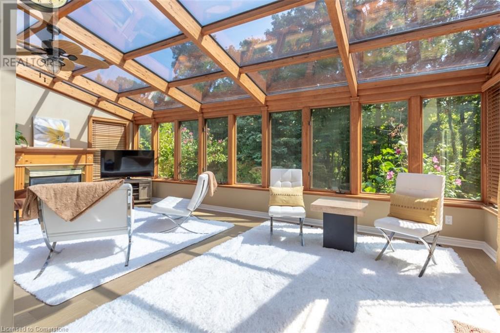 RAVINE SETTING - One-of-a-kind 'TRIGIANI' built, brick, 4 bd, 4 bth home - nestled on a 60 x 144 ft premium lot. Too special to build the ordinary - designed for entertaining & building memories. EXCELLENT CURB APPEAL - UPDATED & METICULOUSLY maintained. Boasting Pride-of-Ownership featuring a SOARING VAULTED CEILING in the living room with a DRAMATIC STONE GAS FIREPLACE, a SUNFILLED 4 season SUNROOM with glassed-window walls bringing the outdoors inside. The 'chefs' kitchen has an abundance of counter space, 'Frigidaire' & 'Bosch' appliances, pantry, wine fridge & breakfast area - a large dining room for family gatherings. Richly panelled walls in the MAIN FLOOR OFFICE have plenty of built-in bookshelves, desk area & oversized window. A MAIN FLOOR HOME THEATRE has its own wet bar - movie night with the family! The primary bedroom offers a secluded area for peace & quietness with a walk-in closet, 5 piece ensuite, separate shower stall, soaker tub & double vanity. 3 remaining bedrooms, on a separate wing, are spacious with ample closet space. A full size basement has a recreation room, multi-purpose & exercise area, 3 piece bath, coldroom & utility room. The over-sized double car garage has plenty of storage space, in-side entry to the residence & inter-locking brick drive. The front, back & garden irrigation system has a roof censor monitor. Rear yard decking/HOT TUB. Quick access to area amenities such as Schools, Hwy's 5, 407 & 403, Places of Worship - SOUGHT AFTER AREA!! (id:55009)