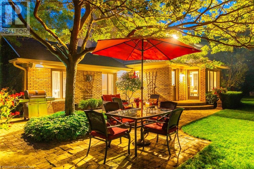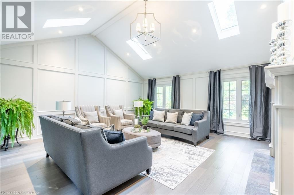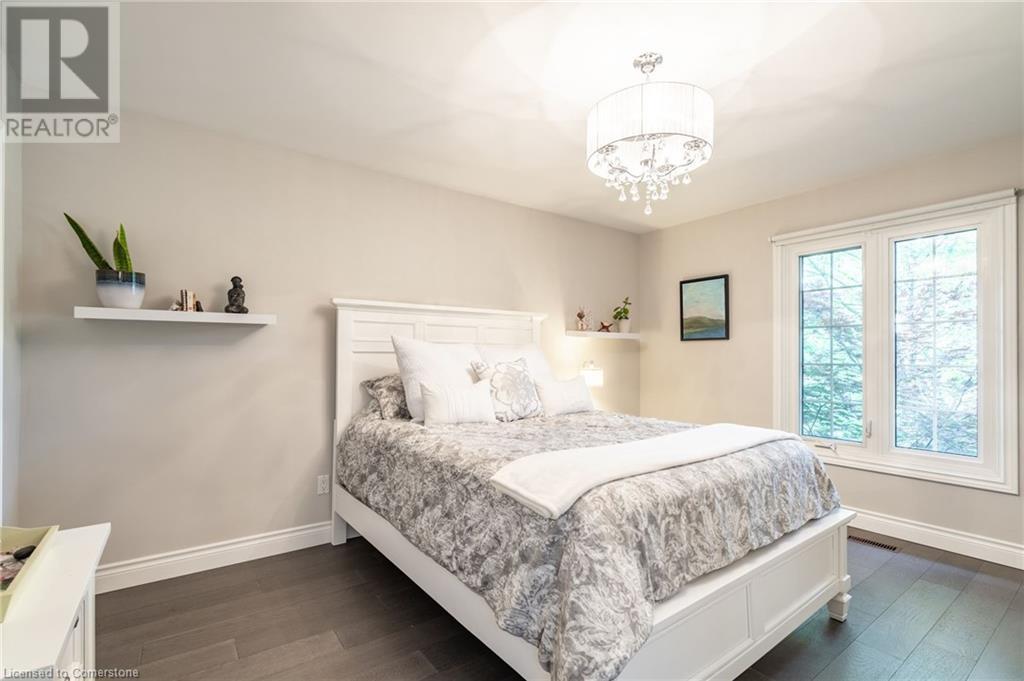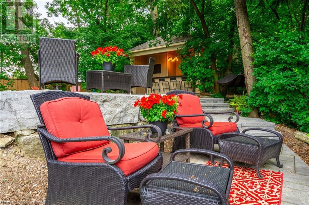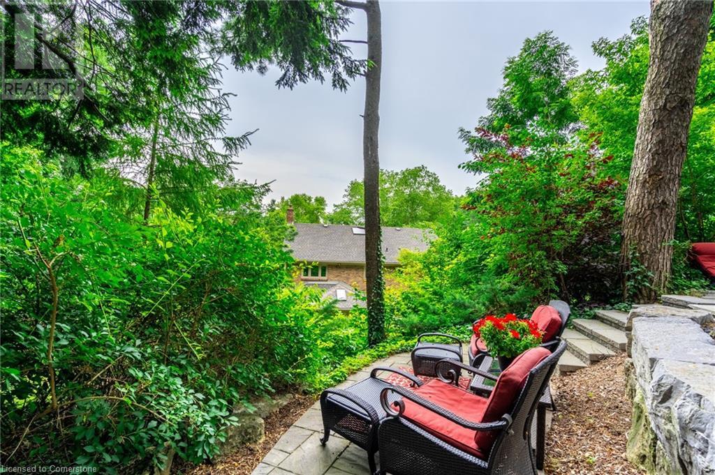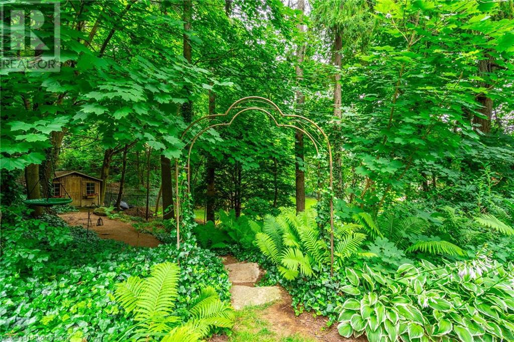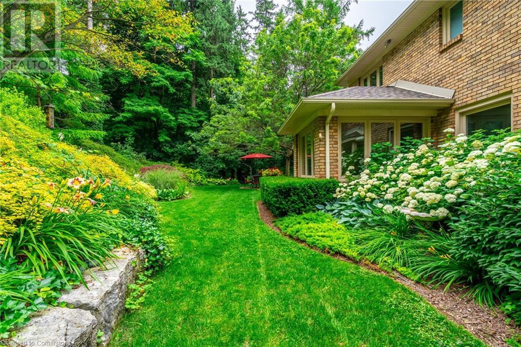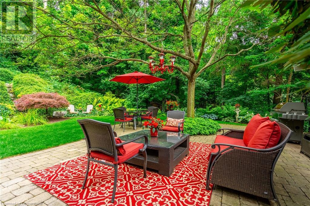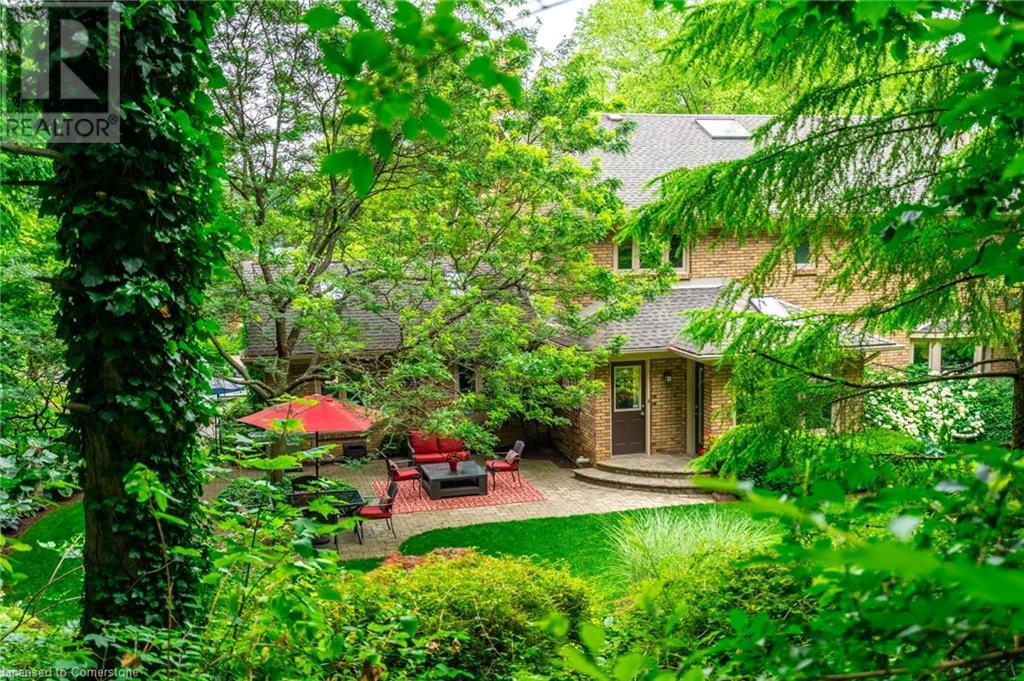 Stunning luxury 2stry home loc at the end of a quiet crt, set back from the road, on an oversized pie shaped lot in the heart of old Ancaster. This fairytale-like fenced-in property surrounded by mature trees offers incredible privacy. You can truly relax w its ingrnd saltwater pool & outdoor cabana w chandelier, TV & sound system ‘22. There is also ample grass space for kids & pets. Enjoy meals in the outdoor din area while taking in the breathtaking, but low-maintenance, perennial-gardens & beautifully designed 25ft waterfall tht flows into a lily-filled pond. Stepping inside the all-brick fully reno’d home you're met w beautiful engineered oak hdwd t’out ‘23, updated kitch w maple cabinets, quartz counters, gas cooktop & all new KitchenAid appl ‘23. Each window views a different angle of the yard, taking in hydrangeas, Japanese maples & lilacs to name a few. Heading to the great rm, which was transformed in 23 from a flat ceiling into a 13ft cathedral ceiling w skylights, is an instant favourite w its lrg size & wood burning fp. Upstairs are 4 spacious bdrms & 2 reno’d full bthrms. Heading to the bsmnt you have a wet bar for entertaining, gas fp, dedicated theatre rm w 150” screen, 4K projector & sound system ‘22, gym, sauna & 3pc bth. The home is a property to marvel at, an ideal family home w/i walking dist to conservation, hiking trails & Tiffany Falls, min bike ride to town, 5min walk to Rousseau Primary School, easy drive to the High School & min to The Linc & 403. (id:55009)