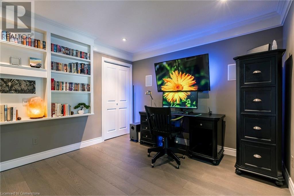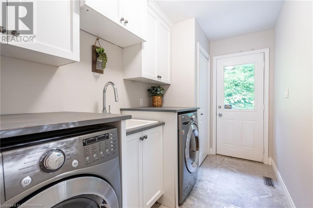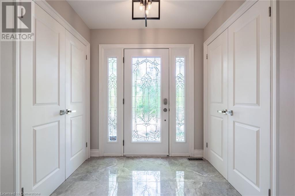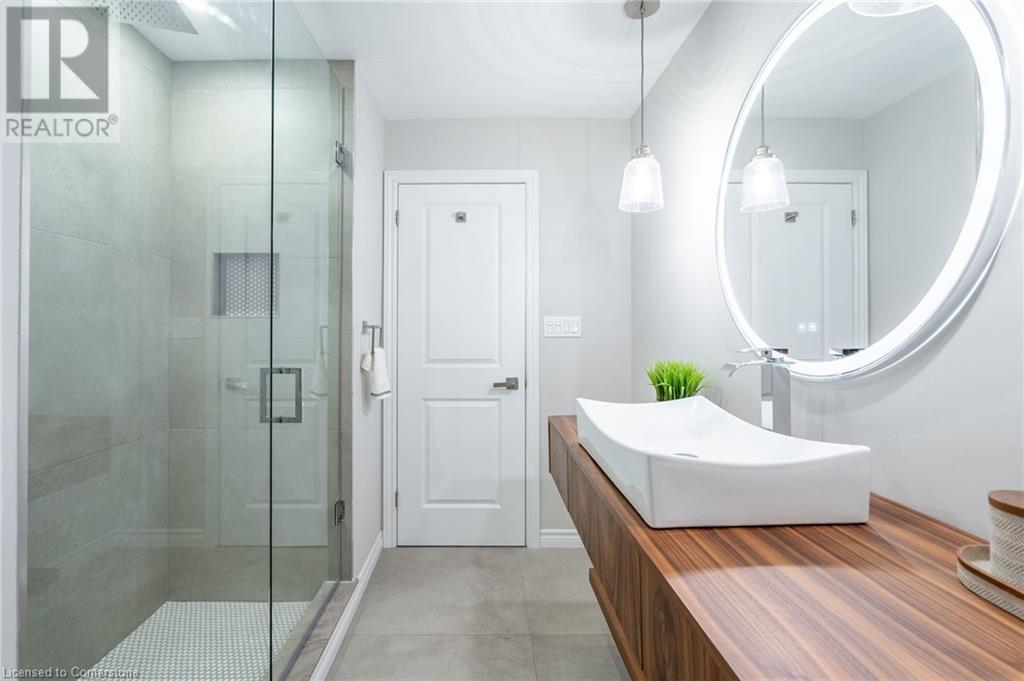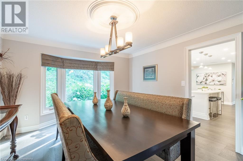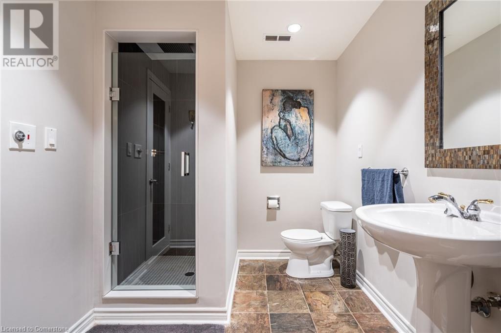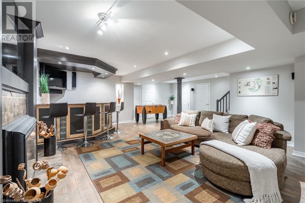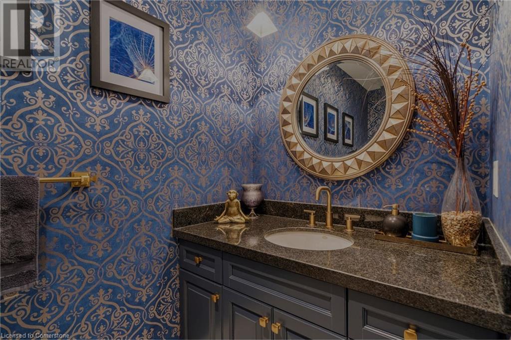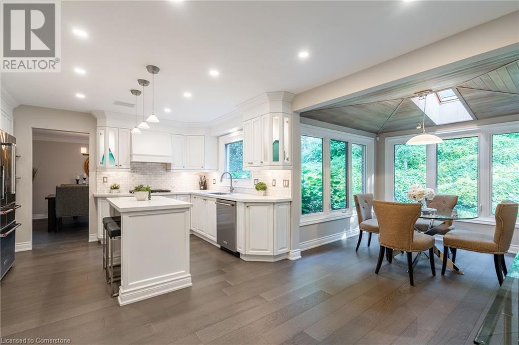Stunning luxury 2stry home loc at the end of a quiet crt, set back from the road, on an oversized pie shaped lot in the heart of old Ancaster. This fairytale-like fenced-in property surrounded by mature trees offers incredible privacy. You can truly relax w its ingrnd saltwater pool & outdoor cabana w chandelier, TV & sound system ‘22. There is also ample grass space for kids & pets. Enjoy meals in the outdoor din area while taking in the breathtaking, but low-maintenance, perennial-gardens & beautifully designed 25ft waterfall tht flows into a lily-filled pond. Stepping inside the all-brick fully reno’d home you're met w beautiful engineered oak hdwd t’out ‘23, updated kitch w maple cabinets, quartz counters, gas cooktop & all new KitchenAid appl ‘23. Each window views a different angle of the yard, taking in hydrangeas, Japanese maples & lilacs to name a few. Heading to the great rm, which was transformed in 23 from a flat ceiling into a 13ft cathedral ceiling w skylights, is an instant favourite w its lrg size & wood burning fp. Upstairs are 4 spacious bdrms & 2 reno’d full bthrms. Heading to the bsmnt you have a wet bar for entertaining, gas fp, dedicated theatre rm w 150” screen, 4K projector & sound system ‘22, gym, sauna & 3pc bth. The home is a property to marvel at, an ideal family home w/i walking dist to conservation, hiking trails & Tiffany Falls, min bike ride to town, 5min walk to Rousseau Primary School, easy drive to the High School & min to The Linc & 403. (id:55009)