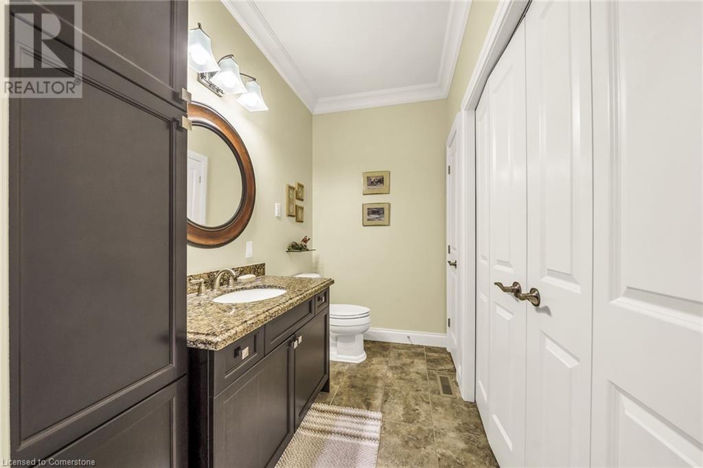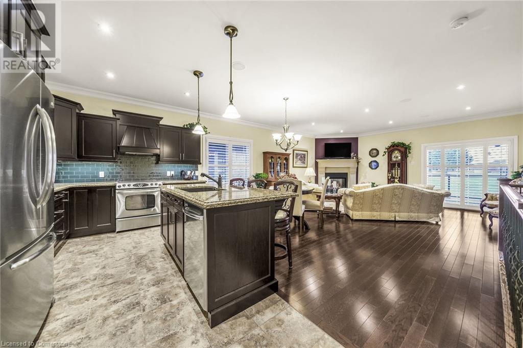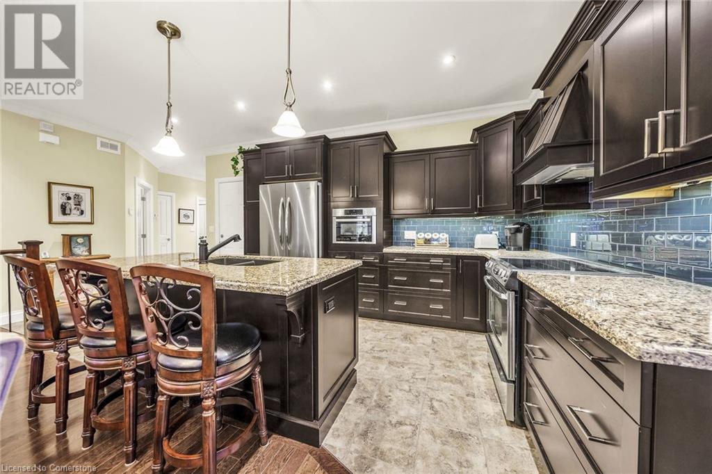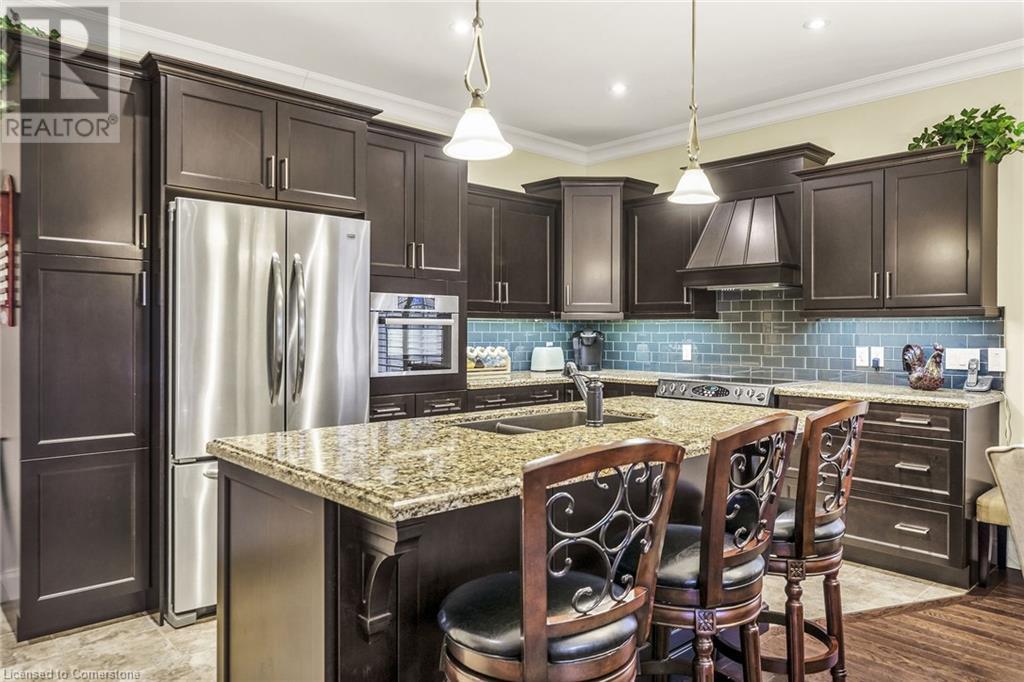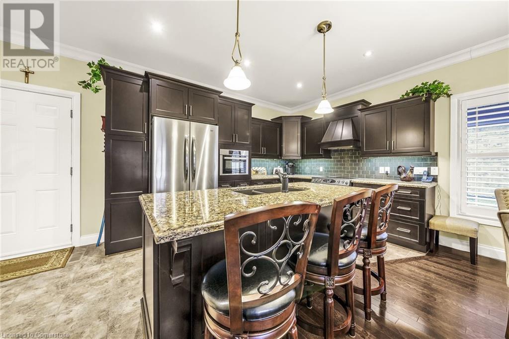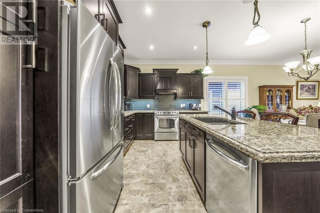 $195 MonthlyTruly Stunning, Custom Built 4 bedroom, 3 bathroom Bungalow with high quality finishes throughout situated in sought after “Fairway Estates” subdivision. Incredible curb appeal with brick & complimenting stone exterior, concrete driveway, attached double garage, & covered back porch with glass railings, remote sun shade blinds, & welcoming front porch. The flowing, open concept interior offers over 2400 sq ft of exquisitely finished living space highlighted by gourmet eat in kitchen with rich cabinetry, granite countertops, subway tile backsplash, oversized island, & S/S appliances, gorgeous hardwood floors throughout formal dining area & living room with corner gas fireplace featuring custom designed hearth, crown moulding throughout MF rooms, 2 MF bedrooms including primary suite with walk in closet & chic 3 pc ensuite with tile floors & tile shower, 2 pc bathroom, & desired MF laundry. The finished basement includes spacious rec room with electric fireplace, 2 additional bedrooms, 4 pc bathroom, & storage/utility area. Highlights include modern decor, fixtures, & lighting, built in speaker system throughout MF, & more! Conveniently located minutes to amenities, shopping, parks, schools, & more. Easy access to 403 & 401. Call today to Experience & Enjoy Delhi Living at its Finest! (id:55009)