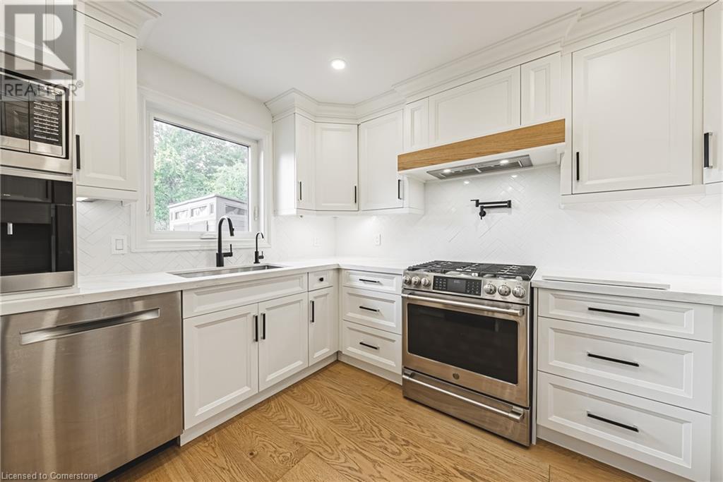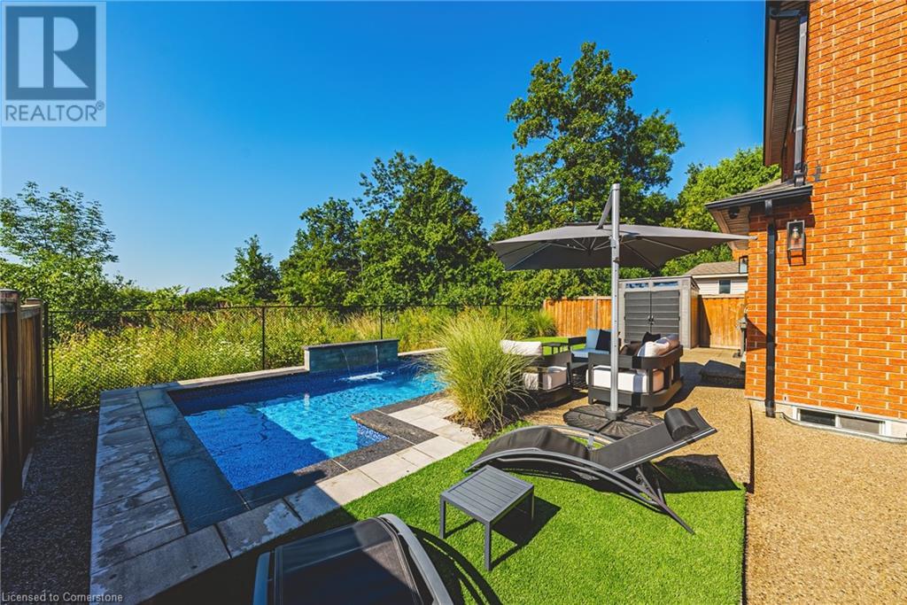 Nestled in a peaceful court with no rear neighbours, this stunning 3-bedroom, 2.5-bathroom home has been fully renovated with modern finishes throughout. The thoughtful layout creates a bright, airy atmosphere that feels spacious and inviting. At the heart of the home is the gorgeous chef's kitchen, featuring high-end stainless steel appliances, a built-in espresso machine, and a sleek beverage bar. The kitchen boasts elegant quartz countertops, a pot filler above the stove for added convenience, and ample cabinetry, making it both functional and stylish—a true culinary haven. The home also includes an expansive living room and a sunken family room, perfect for entertaining or relaxing. The custom-designed office is ideal for working from home in style. Every detail has been meticulously updated, from the bathrooms and flooring to the windows, creating a fresh, contemporary feel. Outside, the beautifully landscaped yard offers your own private oasis, complete with a brand-new inground pool and a serene waterfall. With a host of upgrades, this home feels like new and is located in a family-friendly neighbourhood. This is the perfect blend of modern living and timeless charm—don't miss your opportunity to make it yours! (id:55009)