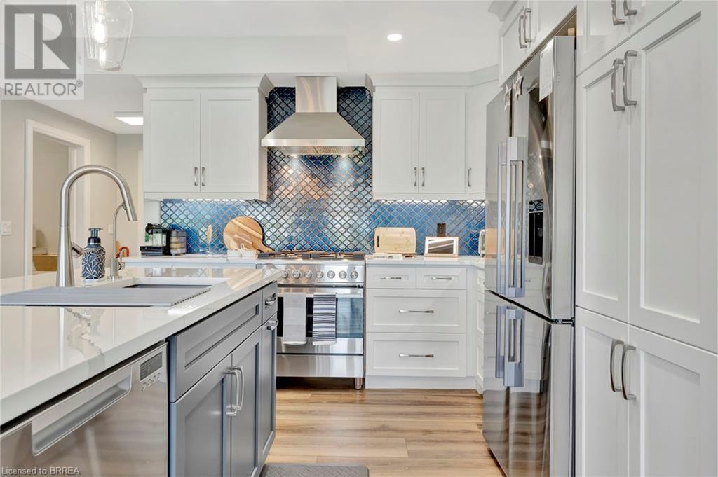 Welcome home to 14 Hudson Dr., Brantford. Custom built in 2022 on premium greenspace lot, two homes in one! Separate entrance to basement suite with separate heating and cooling controls. Modern design sleek and straight out of a magazine! Kid and dog friendly with the highest end luxury vinyl wide plank throughout upstairs and down. 9 and 10ft ceilings on main level and upgraded 9ft ceilings in basement. Bright and spacious! Chefs kitchen with custom walk in pantry added post build. Quartz counters with high end Fisher & Paykel appliances in both main kitchen and the second kitchen. Gorgeous backplash in both kitchens and pot filler in main kitchen. Open to the stunning living room with custom ceiling work and built ins added in living room (2023). Up to 4 beds on the main level and up to two (could be converted to 3+) beds downstairs and 4.5 baths total. This is one of two custom designed legal in law suites on the street with city met requirements of septic system and size. AND each suite has its own dedicated laundry. Extensive sound proofing between the main level and basement. Stay cozy all winter with the boiler system and in floor heat and 2 gas fireplaces.In floor is extremely efficient can heat entire home. Primary ensuites are equipped with bidets. All custom lighting from Avenue Lighting. Even the colour of the brick was a builder upgrade. No inch of this property was ignored. Gas lines for BBQ and pre installed for pool heater. 25k upgrade for cold cellar. The entire house is backed up on the Generac generator. Professional landscape and concrete walkway in front and back (23/24). Extended upper deck with composite decking on upper balcony and upgraded railing. Lower level 3 season enclosed sun room with flooring (2024). Reverse osmosis system, water softener and boiler system for hot water all owned, no rentals. Tarion warranty is transferable. Shows A+++ pride of ownership very apparent upon entry. Meticulously maintained and upkept. See it today! (id:55009)