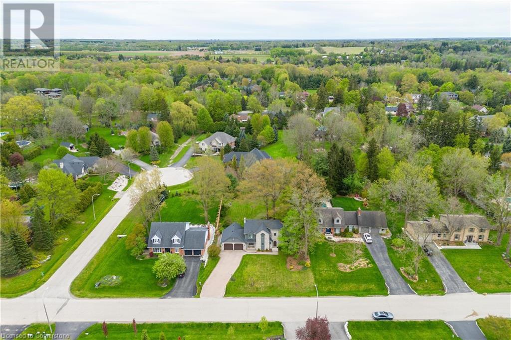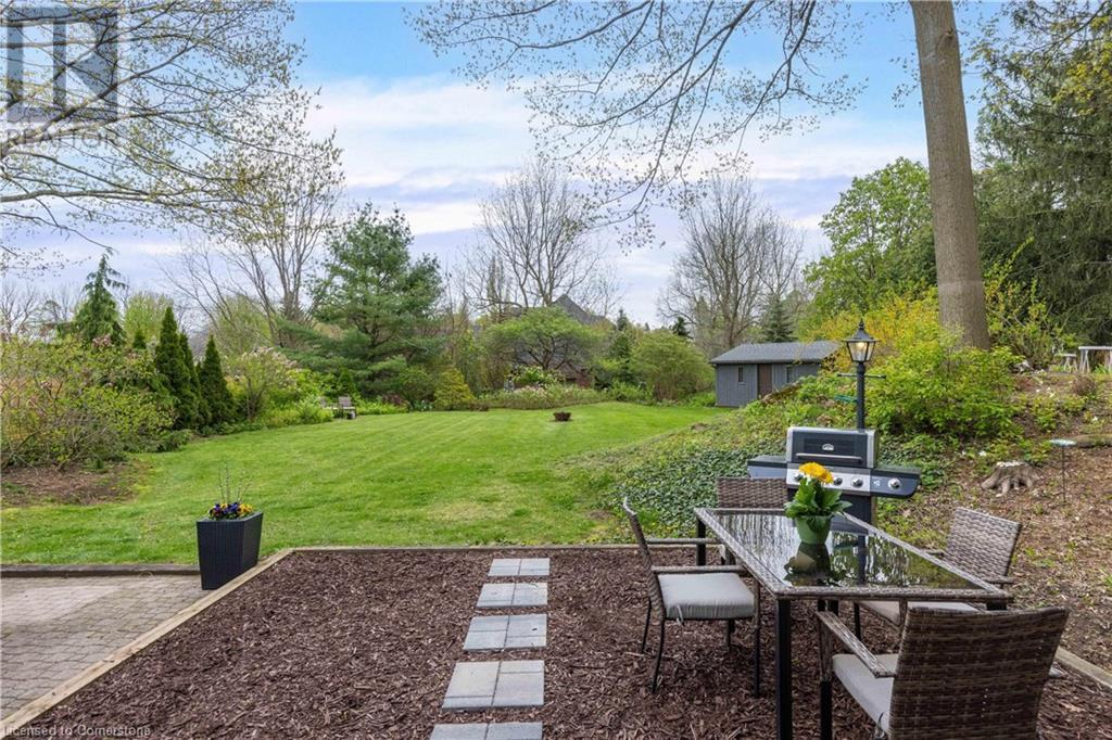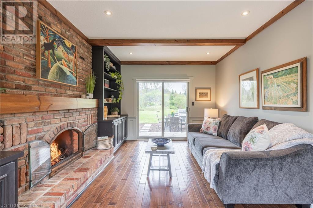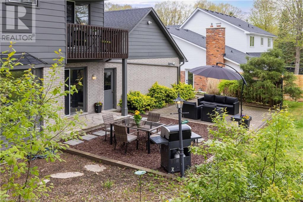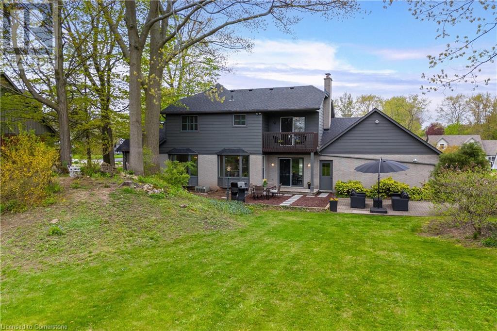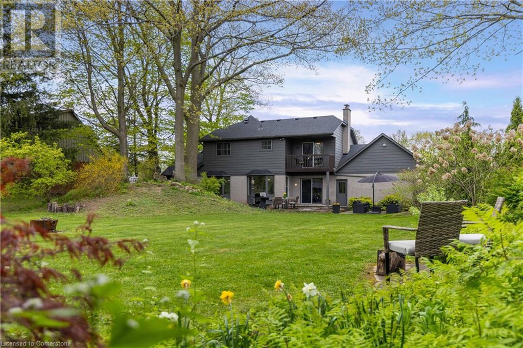 Welcome to your new home situated on a generous-sized lot in the charming rural settlement of Carlisle. This lovely, 2-storey, family home offers over 2100 square feet of living space above grade plus a finished lower level. Enjoy quality time with family and friends in front of the cozy fireplace or step outside and relax on the large patio surrounded by the picturesque back yard. Entertain in the bright, eat-in kitchen or the fabulous dining room while enjoying the scenic view of the enchanting garden. Retreat upstairs to the spacious primary bedroom featuring a private balcony, a walk-in closet, and a 3-piece ensuite. The upstairs also features two additional bedrooms and a view of the grand foyer. This fabulous home is minutes from shops, restaurants, and golf courses and will expand your options for live, work, and play. Unlock the door to exceptional real estate! (id:55009)