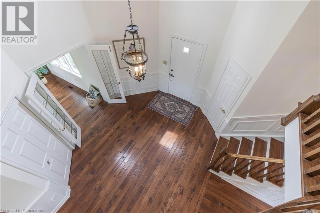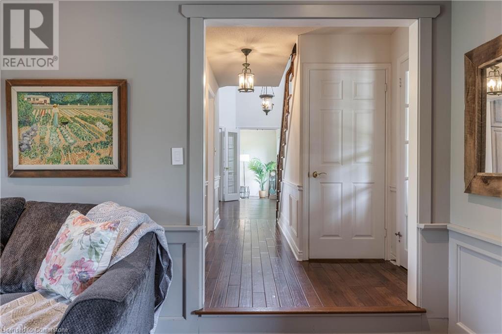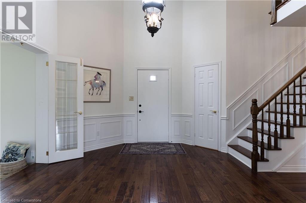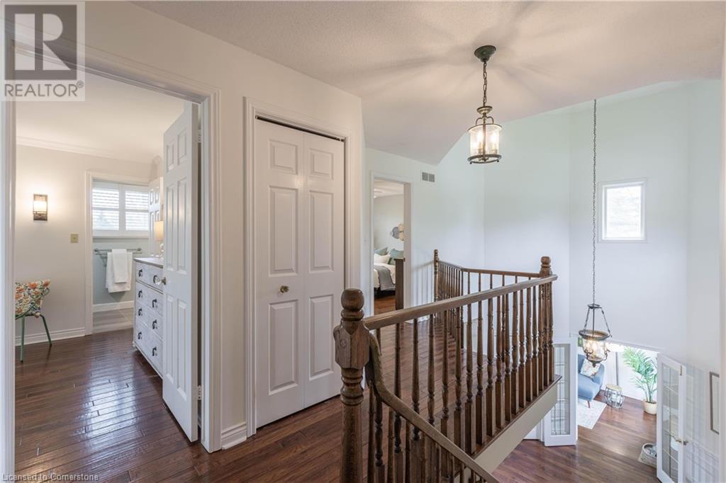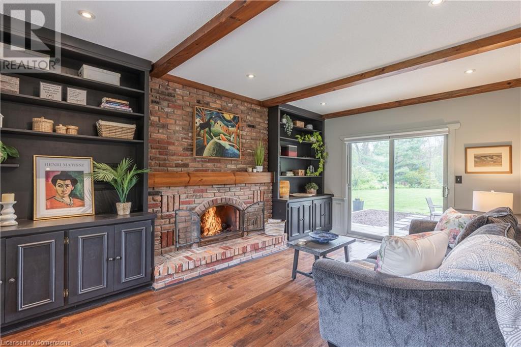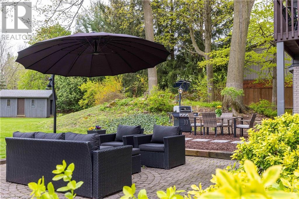 Welcome to your new home situated on a generous-sized lot in the charming rural settlement of Carlisle. This lovely, 2-storey, family home offers over 2100 square feet of living space above grade plus a finished lower level. Enjoy quality time with family and friends in front of the cozy fireplace or step outside and relax on the large patio surrounded by the picturesque back yard. Entertain in the bright, eat-in kitchen or the fabulous dining room while enjoying the scenic view of the enchanting garden. Retreat upstairs to the spacious primary bedroom featuring a private balcony, a walk-in closet, and a 3-piece ensuite. The upstairs also features two additional bedrooms and a view of the grand foyer. This fabulous home is minutes from shops, restaurants, and golf courses and will expand your options for live, work, and play. Unlock the door to exceptional real estate! (id:55009)