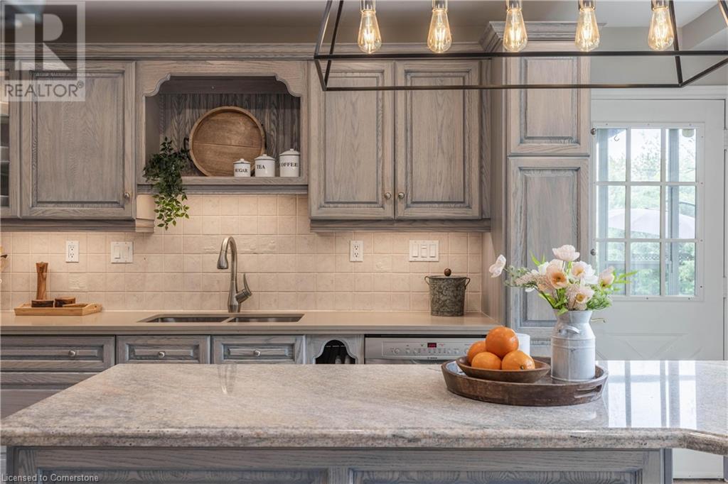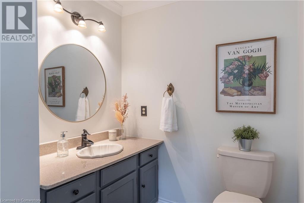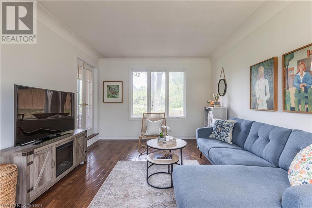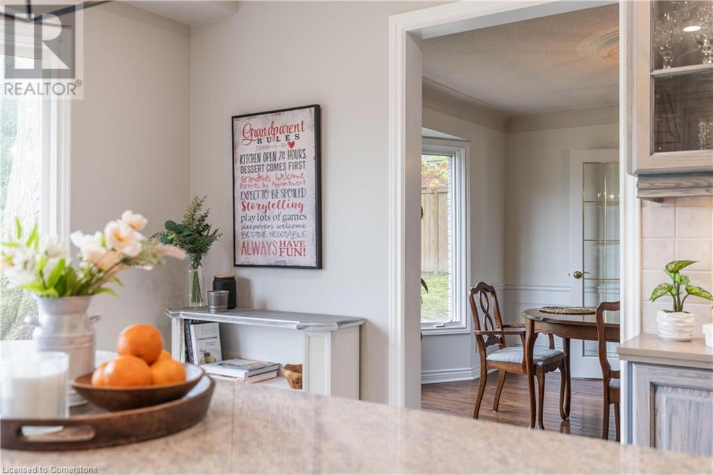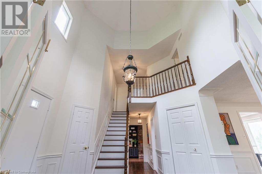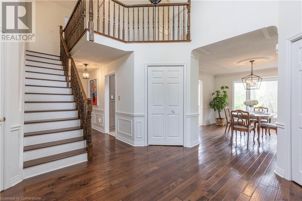 Welcome to your new home situated on a generous-sized lot in the charming rural settlement of Carlisle. This lovely, 2-storey, family home offers over 2100 square feet of living space above grade plus a finished lower level. Enjoy quality time with family and friends in front of the cozy fireplace or step outside and relax on the large patio surrounded by the picturesque back yard. Entertain in the bright, eat-in kitchen or the fabulous dining room while enjoying the scenic view of the enchanting garden. Retreat upstairs to the spacious primary bedroom featuring a private balcony, a walk-in closet, and a 3-piece ensuite. The upstairs also features two additional bedrooms and a view of the grand foyer. This fabulous home is minutes from shops, restaurants, and golf courses and will expand your options for live, work, and play. Unlock the door to exceptional real estate! (id:55009)