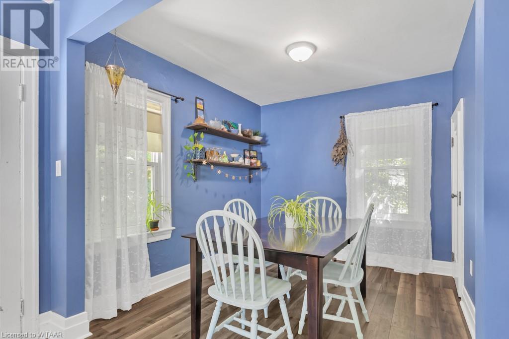 Welcome to this charming 1.5 storey home nestled on a scenic ravine lot on desirable Potters Road in Tillsonburg. Step inside to discover a light-filled main floor with updated finishes, spacious kitchen, separate dining area, cozy living room, plus a bedroom and a 4-piece bathroom. Upstairs, you’ll find the roomy primary bedroom that includes a relaxing sitting area. The fully finished basement adds even more living space with another bedroom, a 2-piece bathroom and a family/rec room. Enjoy the outdoors from the comfort of the front porch or unwind in the backyard overlooking the serene ravine. The single detached garage is ideal for parking, storage, or as a workshop. This home offers the tranquility of country living while being just a short drive to local amenities. Perfect for those seeking a peaceful escape - don’t miss the opportunity to make this rural retreat your own. Call today for more information! (id:55009)