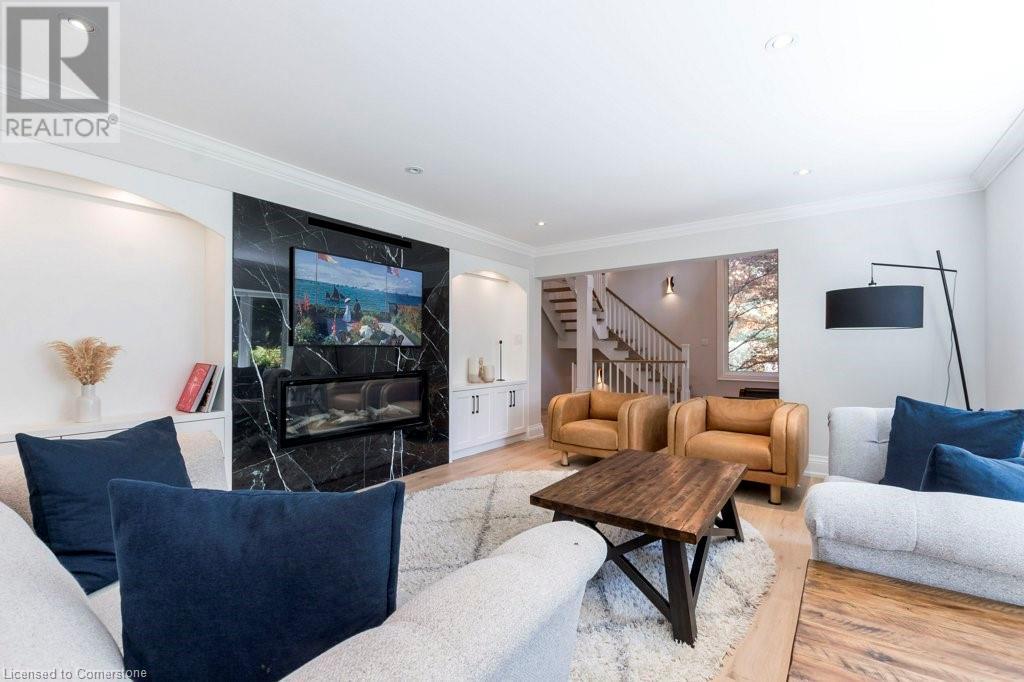 Welcome to 145 Birett Drive! A beautiful home located south of Lakeshore rd. in an exclusive and highly desirable area of South Burlington. Offering a total finished living area space of approx. 4600 sq/ft. This masterfully recrafted home boasts many high end upgrades, materials and designer features. Located just steps from Lake Ontario with sightlines to the Lake! This custom redesigned 3+1 Bedroom home offers gorgeous hardwood floors that encapsulates this open concept layout with a modern décor. The Gourmet Kitchen is perfect for the entertainer and complete with New Wolf appliances, custom cabinetry and a convenient breakfast area. A Large, bright living room offers a cozy gas fireplace. The Office has just had a full professional make over. This is a very bright home complete with large windows! The Main floor offers an open flow, separate dining room and a custom mud/entry room. The 3 Bdrms are a spacious size. The Master bedroom has a walk in closet, large 5 pce - ensuite bathroom and a sitting area. The fully finished basement offers a large rec room, Custom Wine Cellar, Large Wine Fridge also a corotated laundry room and lots of storage. Newer Broadloom in the basement. The double car garage has a recent epoxy floor with upgraded storage systems/racks and cabinetry. This lot offers ample parking on your private double driveway. Private backyard. The grounds are professionally landscaped with a full irrigation system. Nestled within a very private enclave of homes! (id:55009)