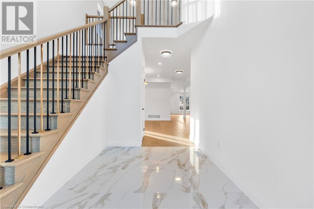 Exquisite custom-built home, spanning 2995 sq ft, featuring 4 bedrooms and a 2-storey design. Positioned on a premium 42' x 150' lot in Hamilton Mountain, this residence boasts4 bedrooms and 3 bathrooms on the 2nd floor, a convenient 2nd-floor laundry, and a separate side entrance to the basement. Enjoy the elegance of a 9-foot main floor ceiling, an inviting Open Concept layout, and a grand Double Door Entrance. Revel in the beauty of an Oak Staircase, abundant oversized windows, Granite Counters l, and the warmth of a Gas Fireplace. Delight in the luxuriousness of Hardwood Floors and Porcelain Tile throughout. The exterior boasts an impressive All Brick and stone To Roof finish, complemented by a 2-car garage with inside entry. With its proximity to schools, shopping, highway access, restaurants, and other amenities, this residence offers the perfect blend of comfort and convenience. RSA (id:55009)