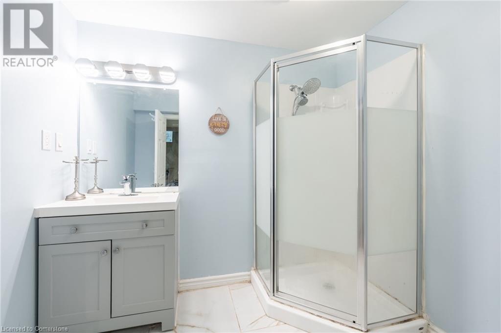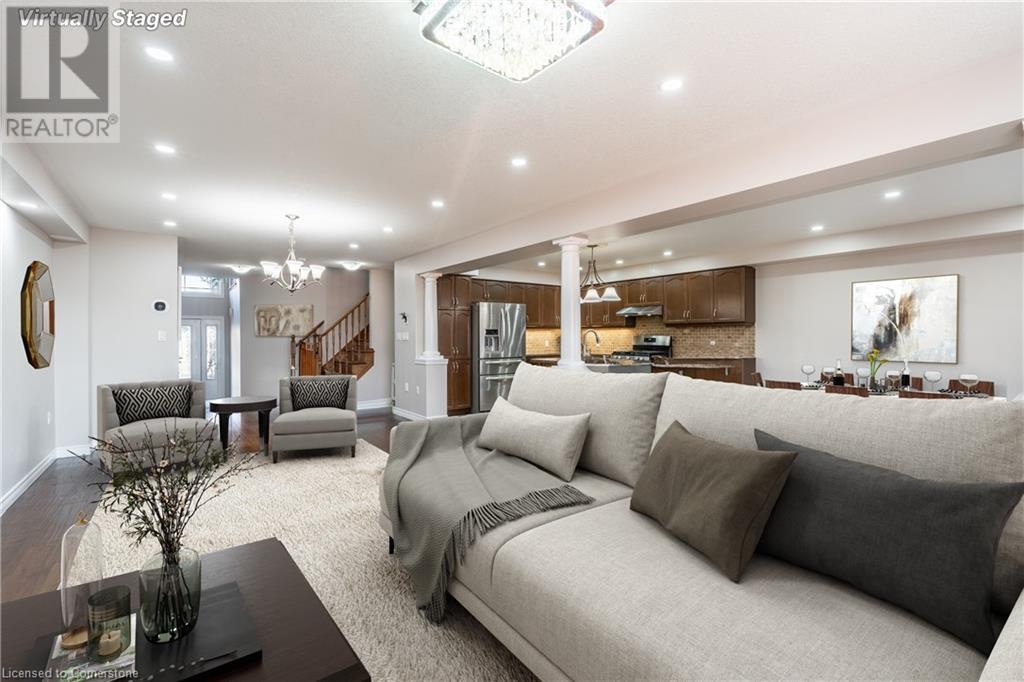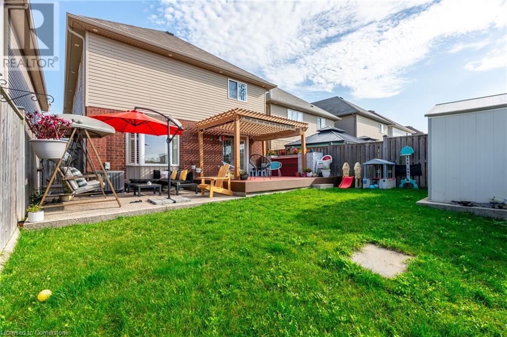 Welcome home to this beautiful pride of ownership two story home in Summit Park! This beautifully maintained 3-bedroom, 2.5-bath home offers stylish, family-friendly living with modern touches. The inviting driveway, framed by a decorative aggregate border, leads to the front entrance and around to the side and backyard. Inside, the open-concept main floor greets you with a spacious foyer, leading into the living and dining areas, all featuring engineered hardwood floors. The kitchen boasts a breakfast bar, cozy dinette, and garden doors to a\ composite deck with pergola, ideal for outdoor gatherings. The patio has an aggregate finish and a gas line for summer barbecues. The private backyard overlooks serene green space. On the second floor, discover a bright great room with expansive windows, perfect for entertaining or as a home office. Just a few steps up, three generously sized bedrooms await, including the primary with a sleek glass shower ensuite. The finished lower level includes a large family room, a versatile den or home office. Conveniently located highway access ,QEW Niagara/Toronto with Lincoln Alexander Parkway. Book your appointment today! (id:55009)