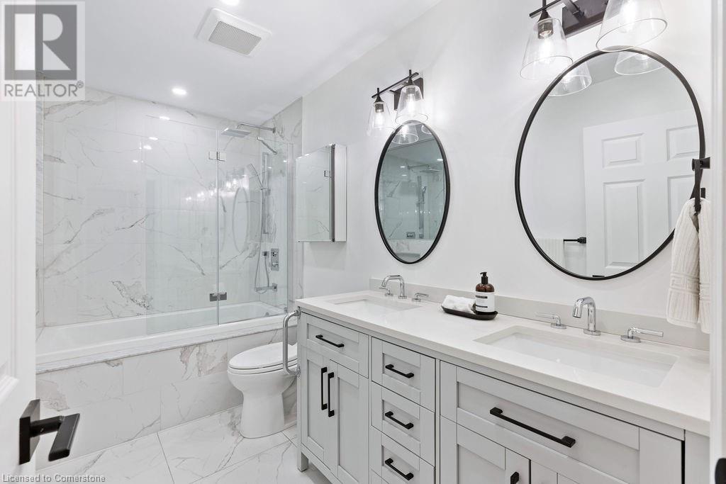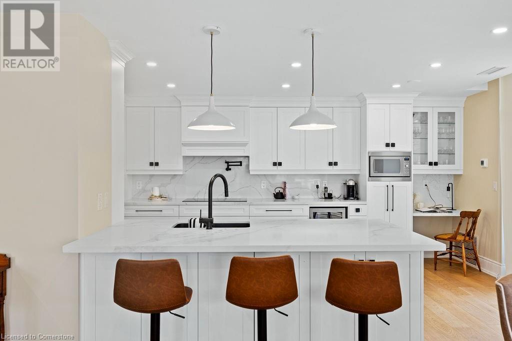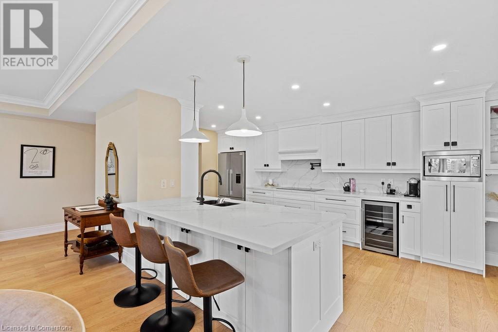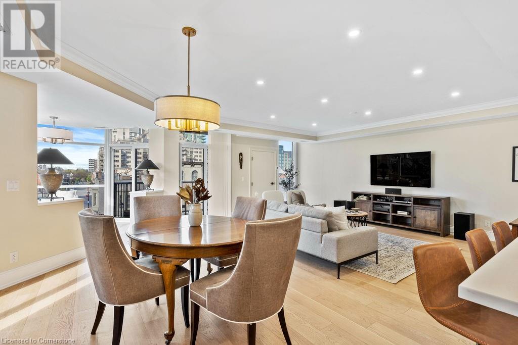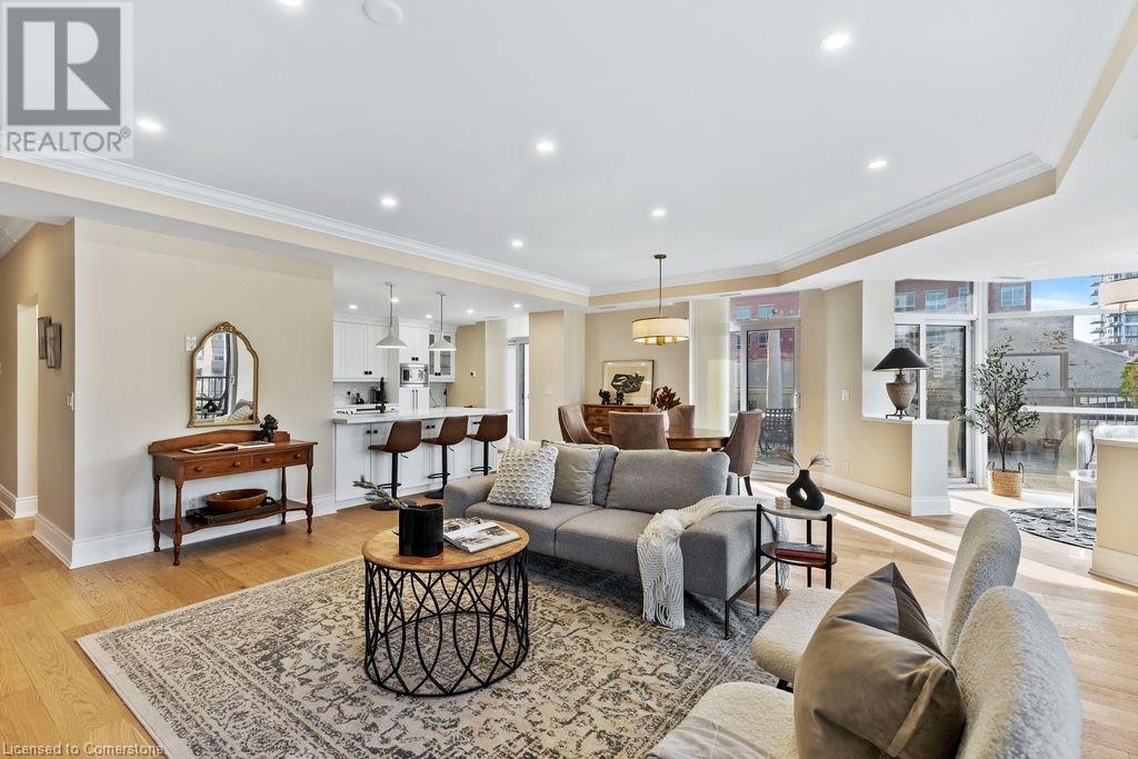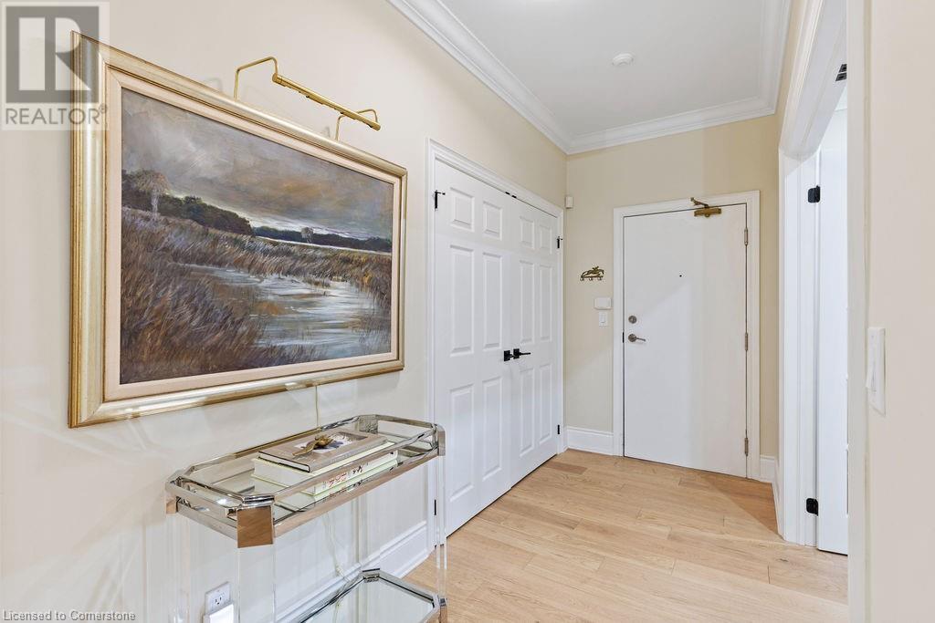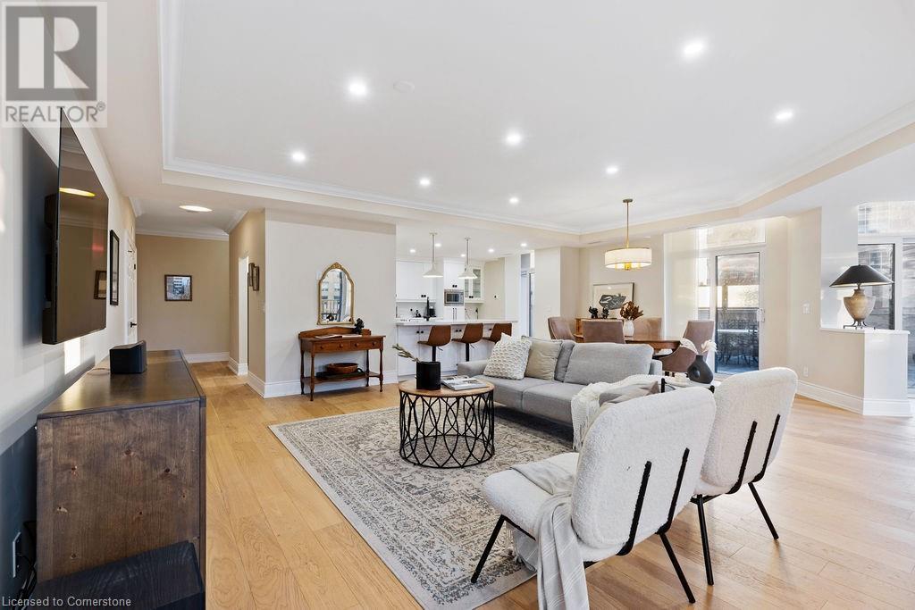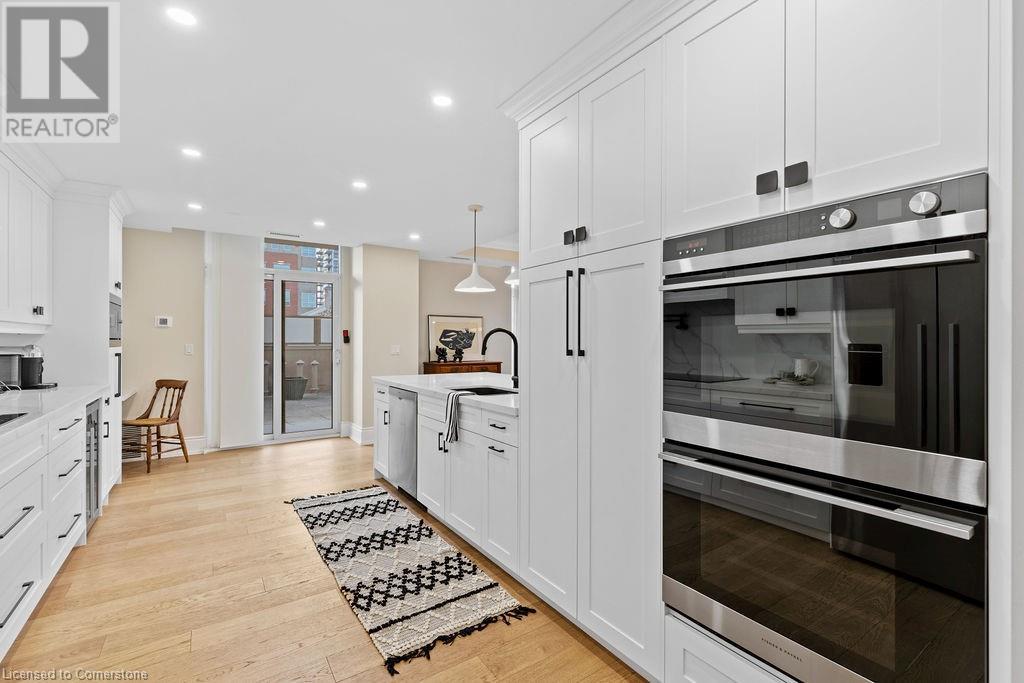 $1,466.64 MonthlyStunning 2-bedroom PLUS den, 2 full bath condo in the heart of downtown Burlington! Approximately 2000 square feet PLUS an incredible 1300 square foot TERRACE! This unit has been COMPLETELY renovated and includes 2 underground parking spots and an oversized locker! This unit boasts an incredible open concept floorplan with smooth 9 ft ceilings throughout. There is a custom kitchen, 2 renovated bathrooms, pot lights, automated window treatments, wide-plank engineered hardwood flooring and updated trim/doors/fixtures/crown moulding throughout! The eat-in kitchen features custom white cabinetry, quartz counters and gourmet stainless appliances including a built-in double wall oven, microwave, induction cook top and wine fridge! The kitchen opens to the oversized dining/family rooms which feature beautiful downtown views and access to both the terrace and balcony! There is also a sunroom and laundry/storage area. The primary bedroom includes a large walk-in closet with custom organizer and an incredible spa-like 5-piece ensuite with heated flooring, a large glass shower and separate soaker tub. The 3-piece main bath features a large walk-in shower and heated flooring! There is also a large 2nd bedroom and separate office/den with custom built ins! The massive terrace features 3 separate entrances and a gas BBQ hookup! Building amenities include a rooftop pool/patio/BBQ area with incredible views, a gym & steam room, hobby room, indoor golf net, party room/lounge & billiards! (id:55009)