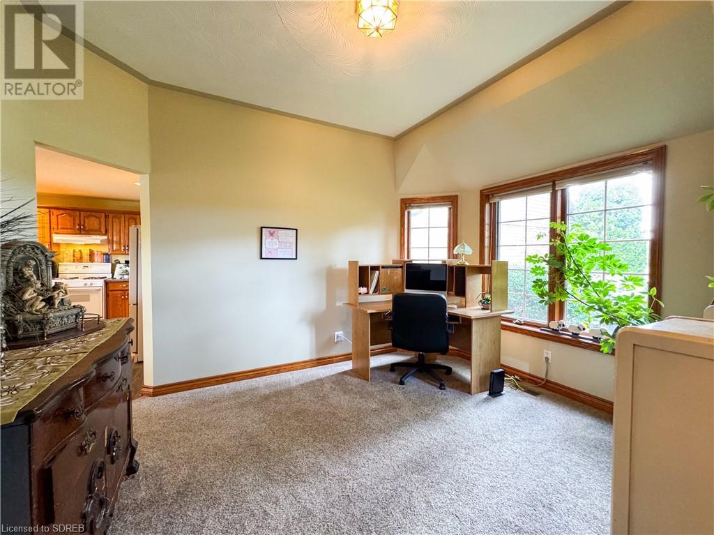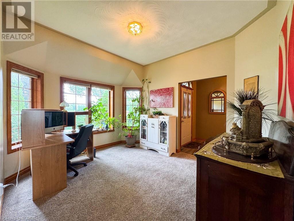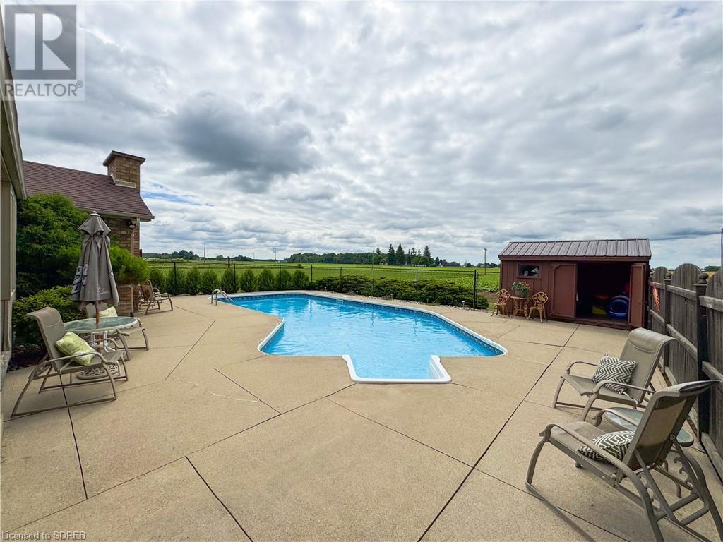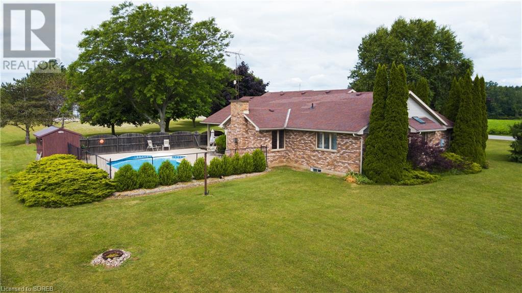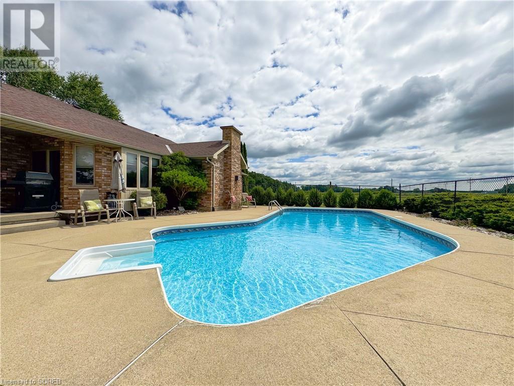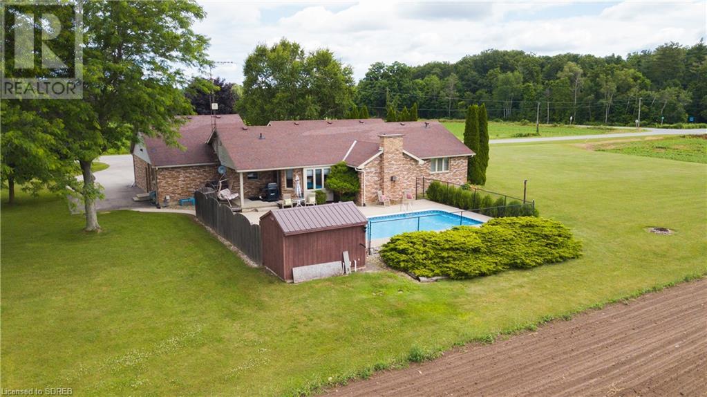 Nestled on a prime 2-acre setting between Waterford & Simcoe, this one-owner custom-built brick ranch from 1993 at 148 Concession 12, Waterford, offers a tranquil retreat with stunning views of farmers' fields. Boasting over 2,000 square feet of main floor living space, this home features a spacious eat-in kitchen with sliding doors to the rear covered porch and pool area, a formal dining room, a cozy family room with a gas fireplace, and an office with a separate entrance and a convenient 3-piece bathroom - perfect for those working from home. The main floor includes two guest bedrooms, a 4-piece bathroom, a large primary bedroom with a walk-in closet and a private 3-piece ensuite bathroom complete with a jacuzzi tub and a skylight. Additional highlights of this property include inside access from the attached 2-car garage with walk-up stairs from the basement, a main-floor laundry room, and a basement level with a 4th bedroom and partially finished recreation and games rooms - awaiting your personal touch to complete. Beyond the main residence, a detached barn provides ample storage space and opportunities for hobbies or home-based businesses. Situated just a short drive away from shopping and amenities, this property offers the perfect blend of peaceful rural living and convenient access to urban conveniences. (id:55009)