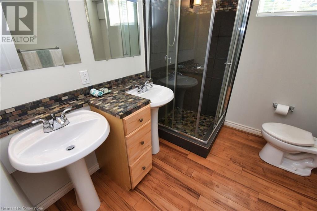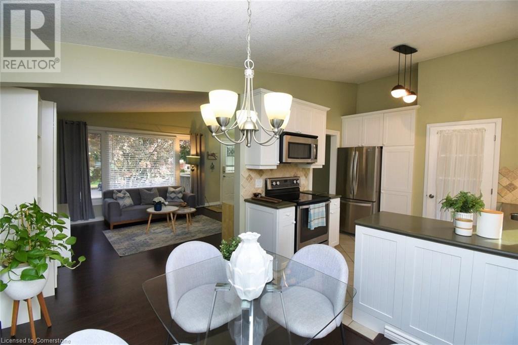 Desirable West Mtn Location. Within walking distance of parks, scenic trails and escarpment waterfalls. This spacious bungalow has a separate entrance to an in-law suite, teen retreat or multi-generational opportunity and more. This well maintained home offers 3+2 bedrooms, 2 kitchens, 2 full baths, 2 laundry areas, loads of parking and a huge fenced yard with concrete patio approx. '21. The upper level features a bright living/dining room, an upgraded kitchen, 3 good sized bedrooms, and a 4 piece bathroom. The lower level with separate entrance offers 2 more bedrooms, living room, full kitchen, another full bathroom and laundry/utility room. Ideally located close to lots of amenities.. shopping, dining, public transportation, schools, parks and more. Other updates include: shingles on house & shed '2024 (50yr with 10 year warranty), eaves, fascia, soffits & sidings '14, electrical panel '12, ceiling sound proofing, windows. Furnace & A/c approx. 2019 (seller will consider paying off). (id:55009)