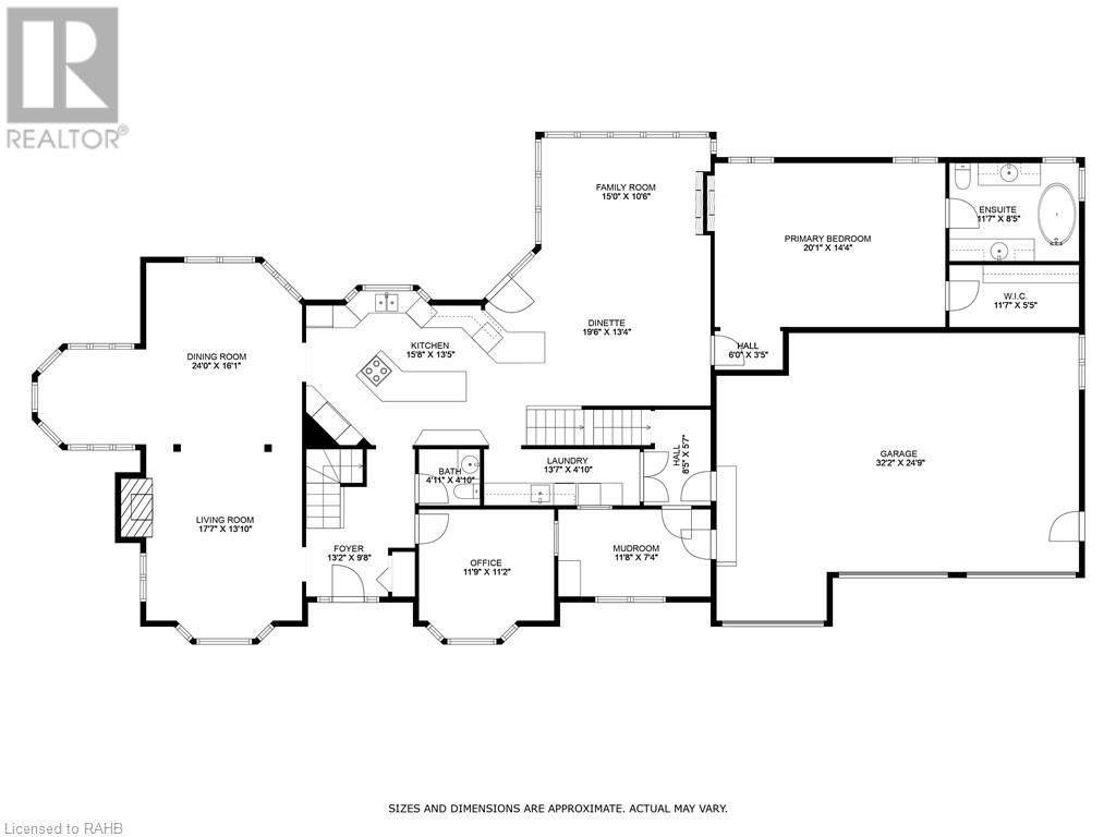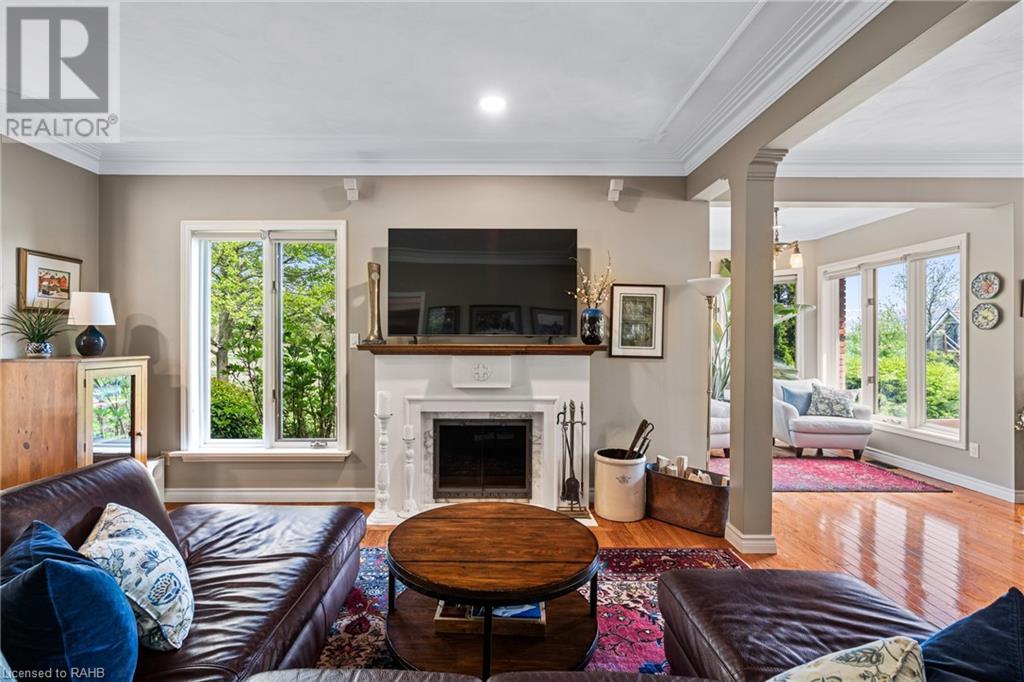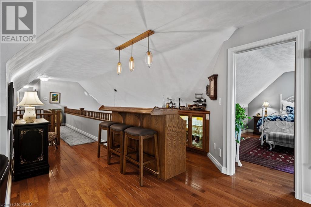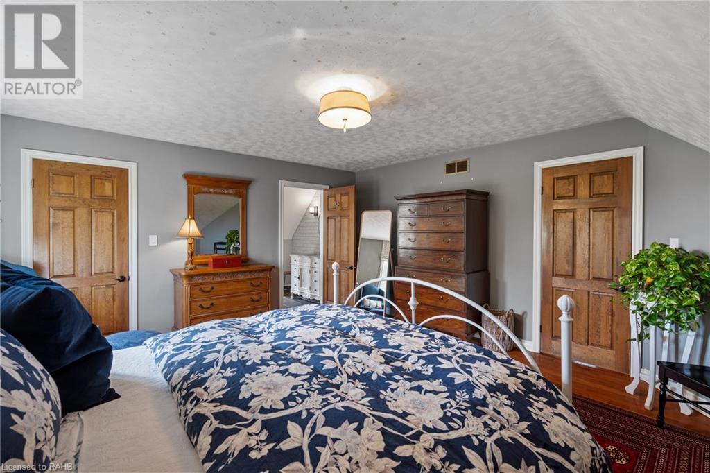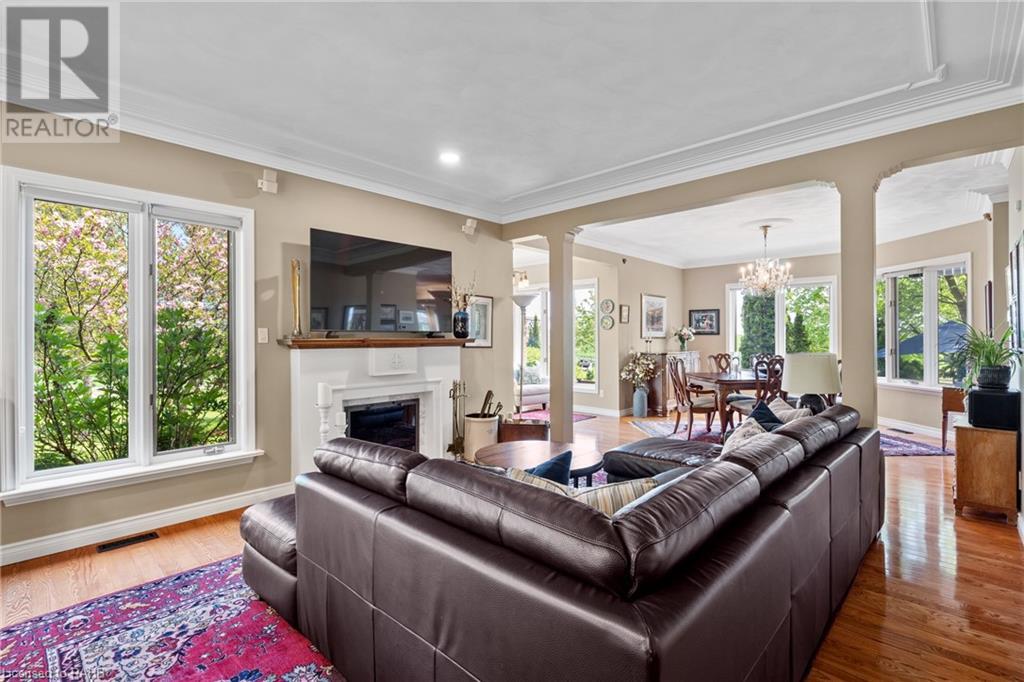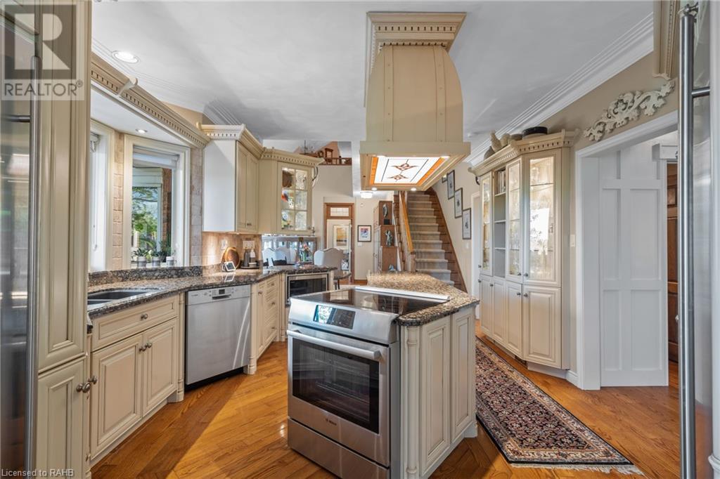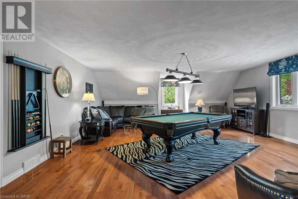 The gated grounds and sweeping driveway set the stage for this family friendly country estate just minutes to the Ancaster core! This reclaimed brick masterpiece boasts the rare combination of a main floor primary suite and 3 car garage. Inside, elegance meets functionality in the formal living and dining areas, a cozy sunroom nook, and a family room that is open to the custom off-white kitchen with designer appliances including a Subzero fridge. The aforementioned primary suite boasts views of the rear, a spa inspired ensuite with his and her vanities, and a large walk-in closet. This level is finished off by a home office with built-ins, powder room, laundry room, and a mudroom with garage access. Meanwhile, head upstairs via one of the two staircases and enjoy an oversized family rec space and bar. This level also boasts 4 bedrooms, 2 bathrooms, and an additional laundry room. Back outside, the rear yard has something for everyone in the family including a raised deck with hot tub, a saltwater pool surrounded by patio seating and beautiful perennial gardens, a pond, a firepit, 2 outbuildings, and ample grass. This home is completed as you head downstairs and discover a fully finished basement presenting 2 large rec rooms, a bathroom, a projector for family movie nights, and both a sprawling utility room and additional storage room. Meticulously maintained and tastefully upgraded, this geothermal heated home is also ultra efficient and waiting for its next stewards! (id:55009)