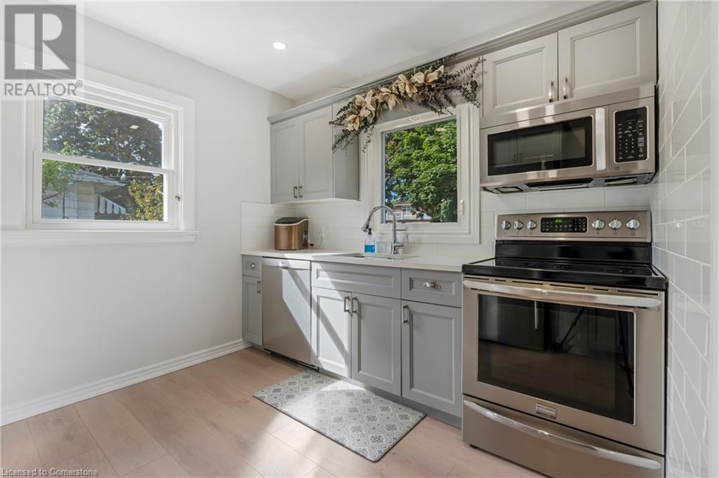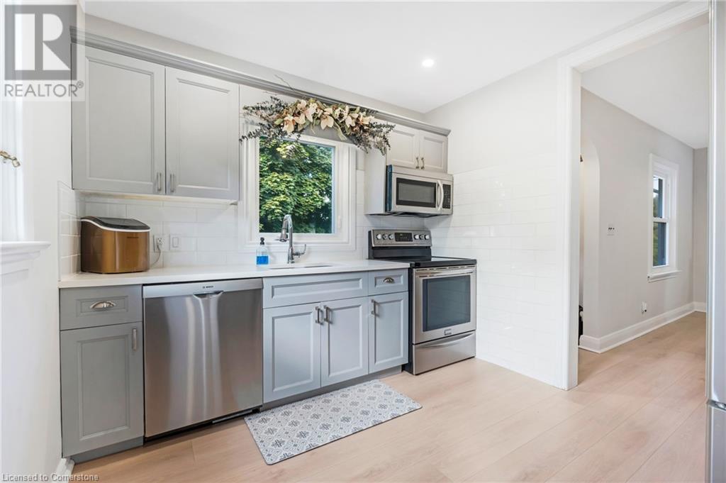 Welcome to 15 James Avenue, a beautifully updated bungalow in Brantford's desirable Echo Place neighbourhood. This nearly 1,000 sq/ft home offers 3+1 bedrooms. Main floor featuring fresh paint and new luxury vinyl plank flooring. The professionally renovated kitchen boasts quartz countertops and stainless steel appliances. One of the main floor bedrooms provides access to a spacious backyard. A side door entrance offers the potential for a separate basement entrance, which includes tall ceilings and a 4th bedroom. Situated on a mature, tree-lined street with easy access to the 403 and all amenities, this home is a must-see. (id:55009)
