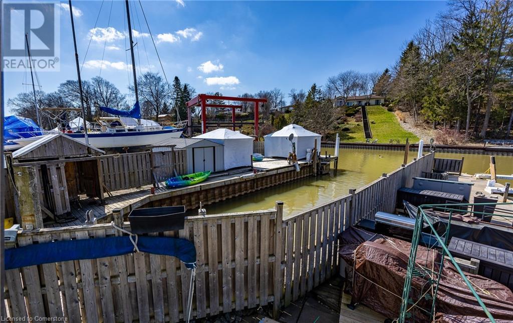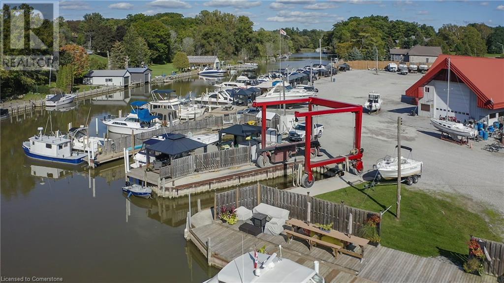 Situated on 2+ acres with an impressive 500+ feet of water frontage on Black Creek (made up of 3 individually deeded lots). Boasting convenient access to Lake Erie via a short boat ride, this property beckons boaters who wish to have drive up access to their boats. Recently updated boardwalk and pedestals (Hydro/water supply for slips). Travel lift boat well, yacht slip (75' x 22'), 32 large boat slips all complete with hydro and water connections, as well as ample space for winter storage of 125 boats. This property presents a unique prospect for investors and enthusiasts alike. Possibilities may include: dockaminium with clubhouse, personal barndominium residence (with docks for 32 of your friends), multi-residential development or develop each lot individually. Impressive 1870 sqft residence/clubhouse on the upper level with soaring cathedral ceilings includes open concept great room, kitchen and dining area, three bedrooms including the crews’ quarters on the north west wing, 4 piece and 2 piece bathroom. Boast a 3200 sqft heated shop with 20'x20' power door & 27' ceiling, 800 sq ft retail/garage space with power door and office. 2 marina washrooms with showers. Includes a marine travel lift, Conolift hydraulic boat trailer, Case 35A tractor with L340A loader, 2 overhead cranes, blocking and stands for storing boats. Whether you are seeking a marine business or an investor eyeing potential future development, this property presents an enticing opportunity not to be overlooked. Check out the virtual tour and book your viewing today. (id:55009)