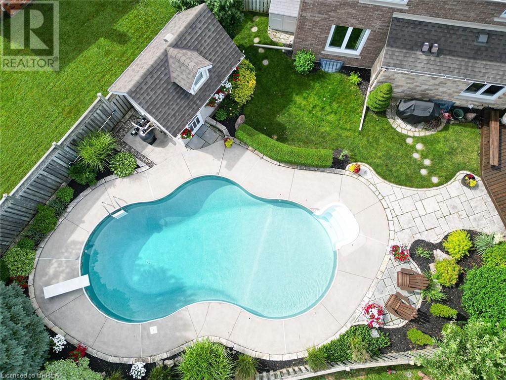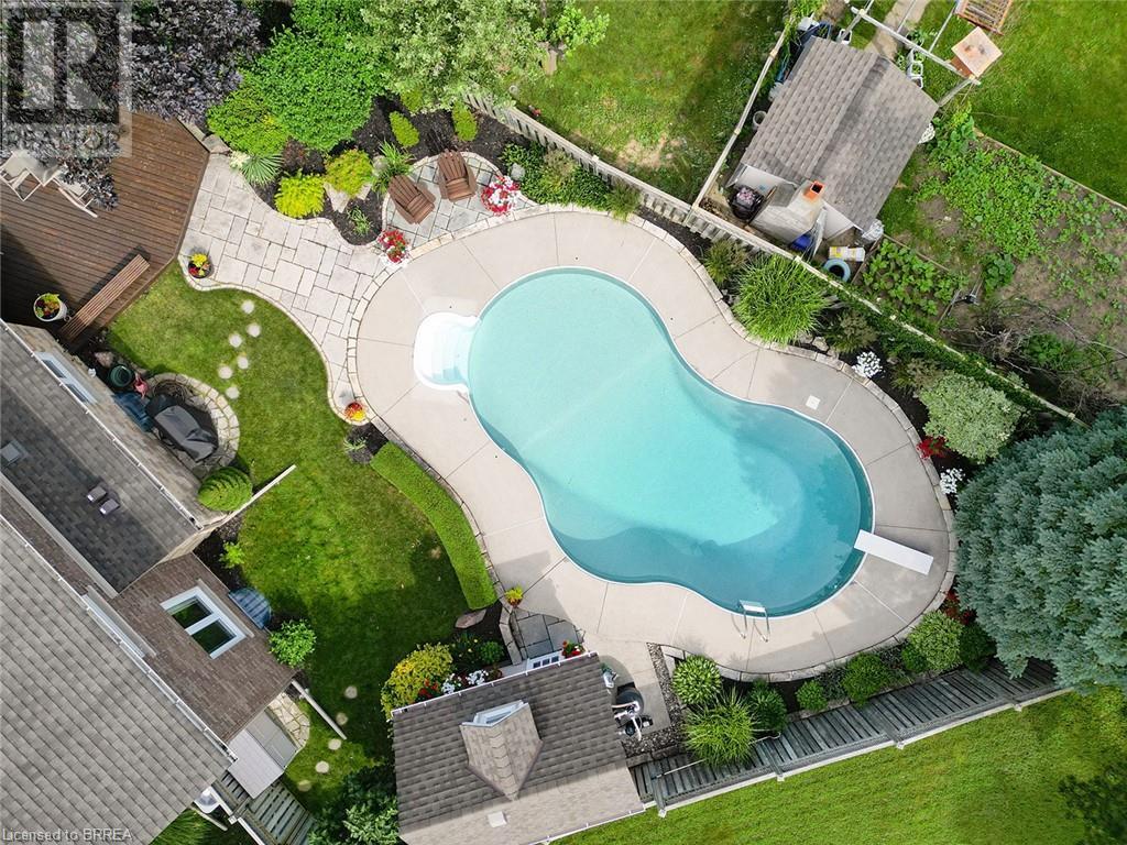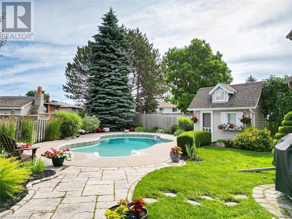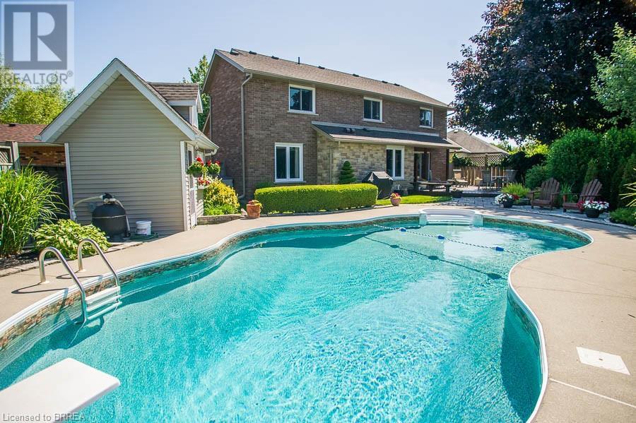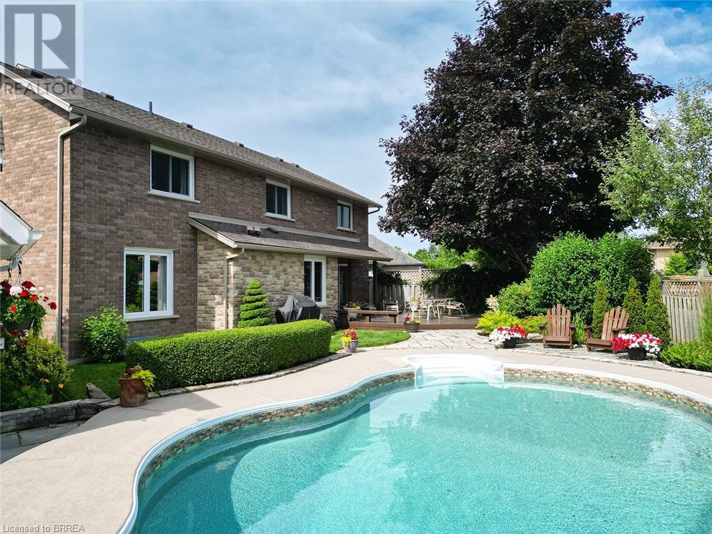 Welcome to 15 Pinto Court, a stunning 2-storey home nestled in the popular Lynden Hills! This meticulously maintained residence boasts a blend of luxury & comfort for modern living both inside & out. As you approach the house, you're greeted by a charming exterior, featuring a combination of brick, hand-chiselled stone & a touch of siding, complemented by dormer windows & a peak that adds to its curb appeal. The manicured landscaping enhances the beauty of the property. Upon entering, the foyer welcomes you w Italian porcelain tile flooring, leading you into the heart of the home where hand-scraped engineered hardwood flooring flows seamlessly through the living room, dining room, & family room. Crown moulding & updated light fixtures add a touch of sophistication, while large windows flood the rooms w natural light. The kitchen is a chef's delight, featuring custom maple cabinetry, granite countertops & top-of-the-line SS appliances incl. a GE Profile stove w a double oven & a Bosch dishwasher. The island offers ample seating & additional storage, making it perfect for entertaining guests. Relax & unwind in the family room, where a cozy gas fireplace w a granite inlay & oak mantel creates a warm & inviting atmosphere. Patio doors lead out to the backyard oasis, complete w a wood deck, BI seating, & a luxurious in-ground pool surrounded by natural stone borders. Upstairs, the master suite offers a tranquil retreat w admirable laminate flooring, a walk-in closet, & a fully renovated ensuite bathroom featuring a shower insert & granite countertops. 2 additional bedrooms provide comfortable accommodation for guests, each boasting exceptional laminate flooring & ample closet space. The upper floor is complete w a 4-pc renovated bath w a custom vanity & granite countertops. The finished basement adds extra living space, w a rec room, den & 2-pc bath. Storage won't be an issue w the storage room equipped w ample cabinetry. Check out the feature sheet for more information! (id:55009)