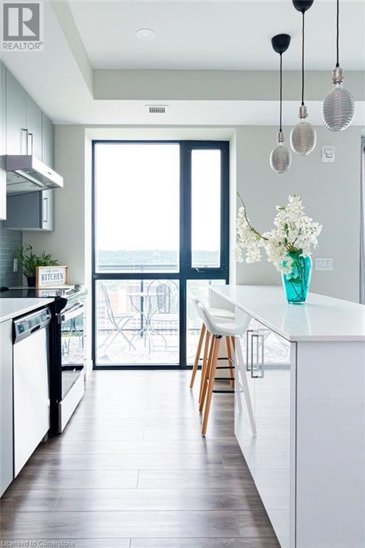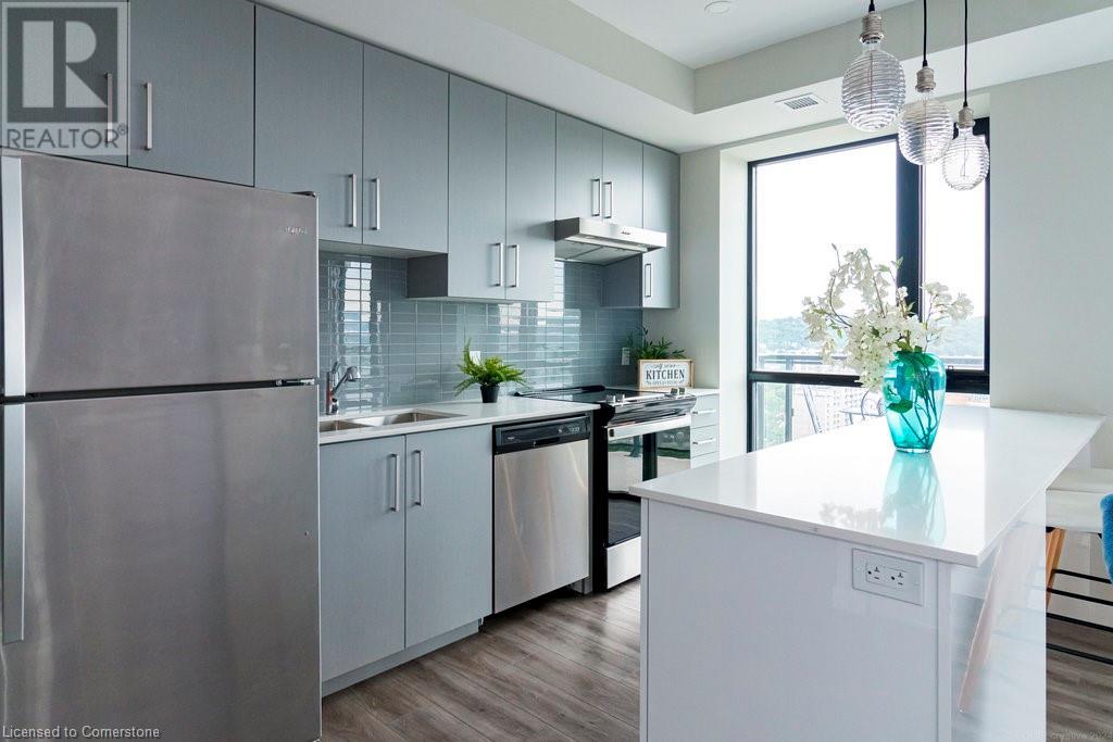 Short term - 6 Month fixed term Lease - Sophisticated Sophisticated Urban Lifestyle living can be yours! Stunning Like New Sub-Penthouse Condo PHI (only 1 of 2) * Open design w/ floor to ceiling windows w. lots of natural light! 9' Ceilings, LED lighting & beautiful finishes throughout! Kitchen offers Quartz counter & Peninsula (perfect to add barstools, nice workspace too), Stainless Steel Appliances * Open to the Living Room & Dining Room & the Sliding door w/out to the 19 open Deck/Terrace w. sweeping Unobstructed views from the Harbour to Escarpment & gorgeous Sunset views. * 2 bedrooms, 4 piece Ensuite & 3 pce. Bath with walk-in Shower * In-suite Laundry, great closet space! In a fab locale, steps to the shops, Breweries & Restaurants, Hess Locke St. Villages, AGH, minutes to MAC, GO pickup, bus & proposed LRT routes, the 403 & everywhere! 87 Walk Score!! Owned Underground Parking, 1 owned Locker & use of Amenities; Party Lounge, Fitness Studio, Bike Storage, Landscaped Rooftop patio, all in a Secure Bldg. Fresh decor throughout, looks like new! Quick possession is available. Shows A++ (id:55009)