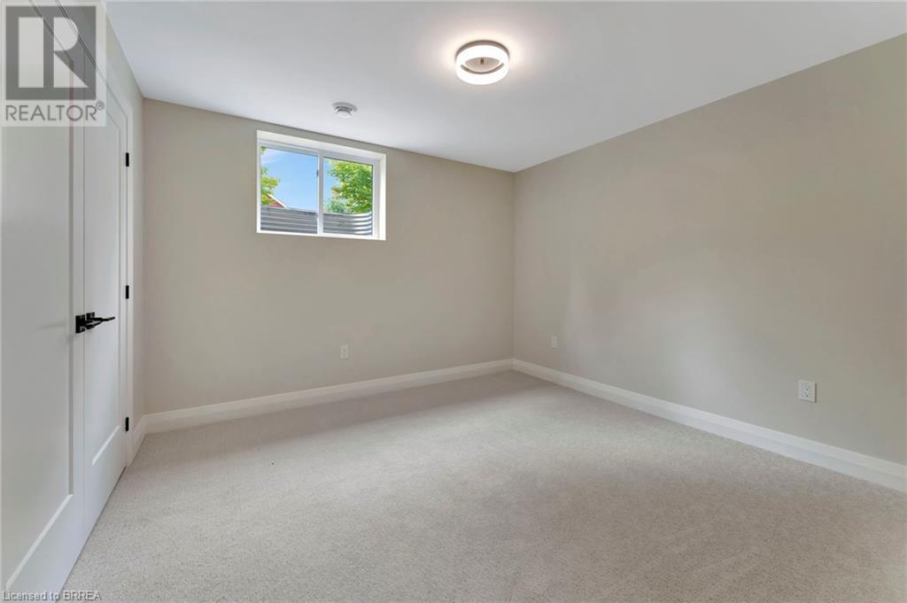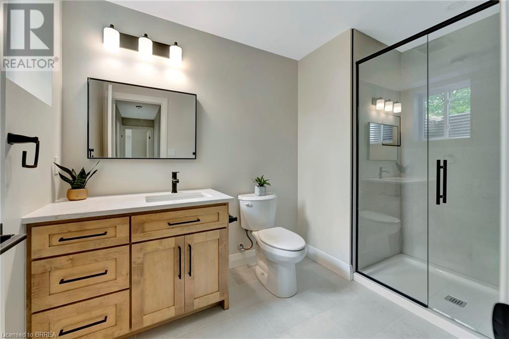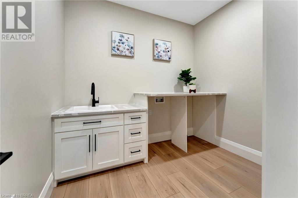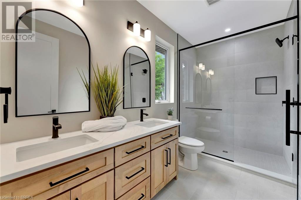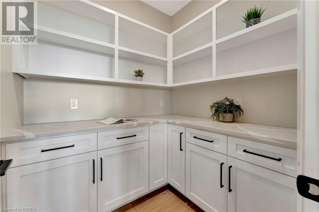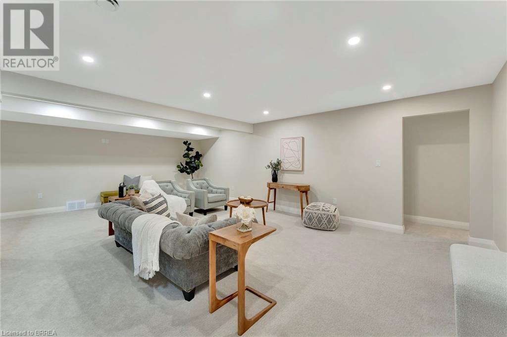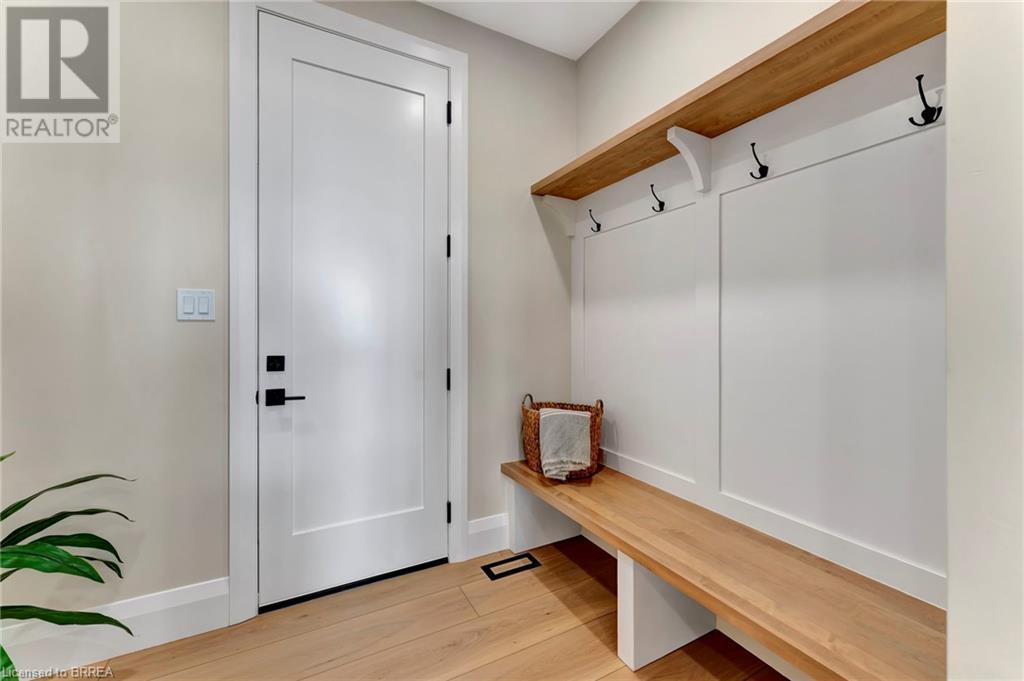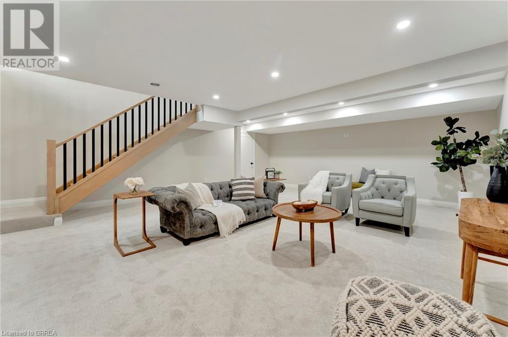 Nestled in the serene rural community of Our Lady of La Salette, just north of Delhi in Norfolk County, this executive-style bungalow by Wolf Homes offers a perfect blend of luxury and tranquility. Situated on a 0.9 acre lot, this home is designed with high-end finishes and modern elegance. The long driveway leads to a double garage, with a pathway and front entry that is awaiting your landscaping dreams. The striking stone exterior, accented with wood and sleek black details, welcomes you through a grand double-door entry. Inside, high ceilings, light-toned floors, and snow-white trim create a stunning contrast with black elements and recessed lighting, giving the home a contemporary yet warm feel. The heart of the home is the open-concept family room, featuring a gas fireplace, tray ceiling with exposed beams, and a wall of windows offering breathtaking views of the green fields beyond. Step out onto the covered back patio for seamless indoor-outdoor living. Adjacent to the family room, the spacious dining area is perfect for gatherings. The kitchen is a showstopper with floor-to-ceiling cabinetry, quartz countertops, a light wood breakfast bar island, and a sparkling backsplash. Black hardware and lighting add a sleek finish, while the large walk-in pantry ensures plenty of storage. The primary bedroom offers a peaceful retreat with a walk-in closet featuring built-in shelving and a luxurious 4 pc ensuite with a walk-in shower and double vanity. Two additional bedrooms share a stylish 4 pc bathroom. The lower level offers a rec room and two more bedrooms with deep windows, plush carpeting and a 3pc bathroom with a walk-in shower. Outside, the covered back porch with recessed lighting and fan is perfect for summer nights, offering serene views. Ditch the hustle and bustle of city life and embrace the beauty of this rural community, just 20 minutes from the City of Brantford and close to all necessary amenities. (id:55009)