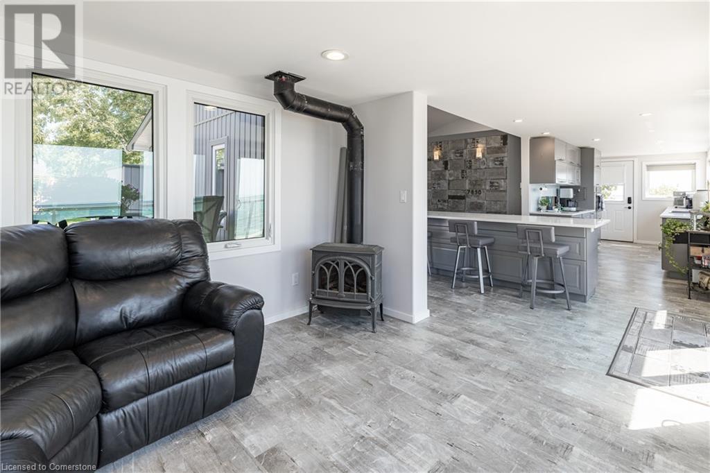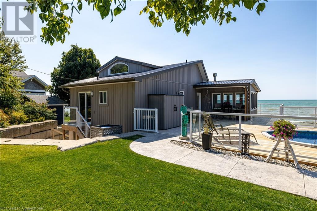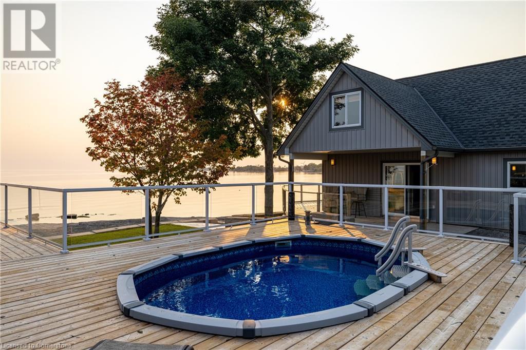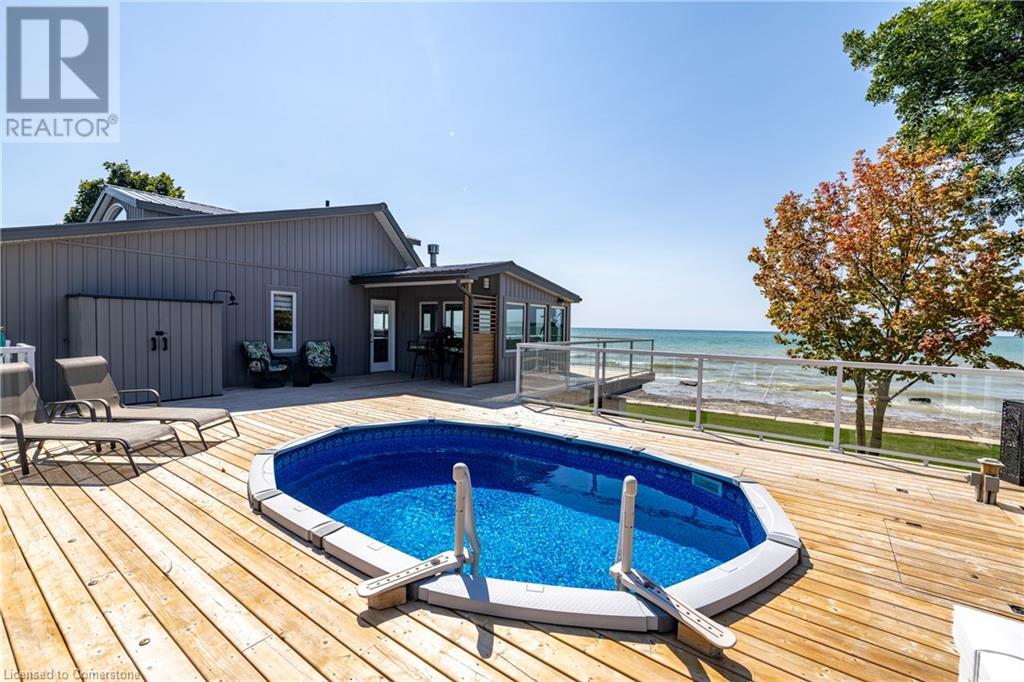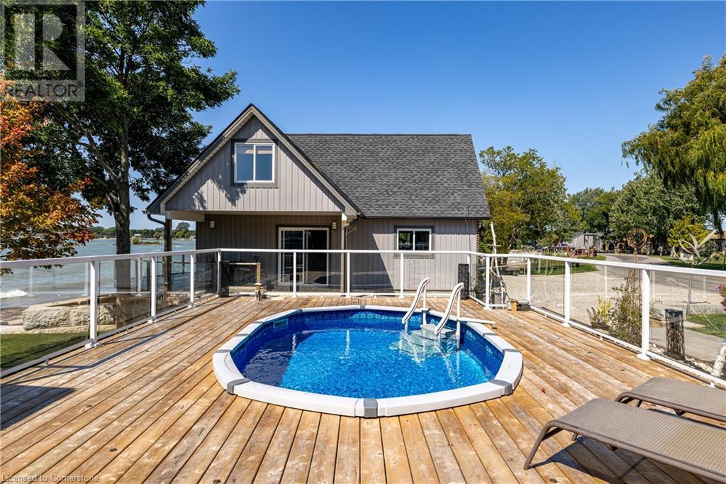 Welcome to 1500 Lakeshore Rd, Selkirk – a stunning, turn-key waterfront retreat! This fully updated, open-concept bungalow features vaulted ceilings, a spacious kitchen with a large quartz island, and a cozy one-bedroom plus den layout. The property is move-in ready, offering modern upgrades throughout for worry-free living, including a metal roof (2017), furnace (2020), A/C (2018), and drilled well (2020). The main house underwent a large addition, and all renovations were completed in 2017, with spray foam insulation applied to both the house and the garage for enhanced energy efficiency. Enjoy breathtaking lake views from the wrap-around deck with sleek glass railings, or relax in the outdoor hot tub and the heated on-ground pool. Inside, unwind in the infrared sauna. The large detached garage (22 x 32) includes a loft apartment with a kitchenette and 3-piece bath, perfect for guests or additional income. With a durable metal roof, this home offers peace of mind, comfort, and style. Just pack your bags and enjoy your new lakeside lifestyle! (id:55009)