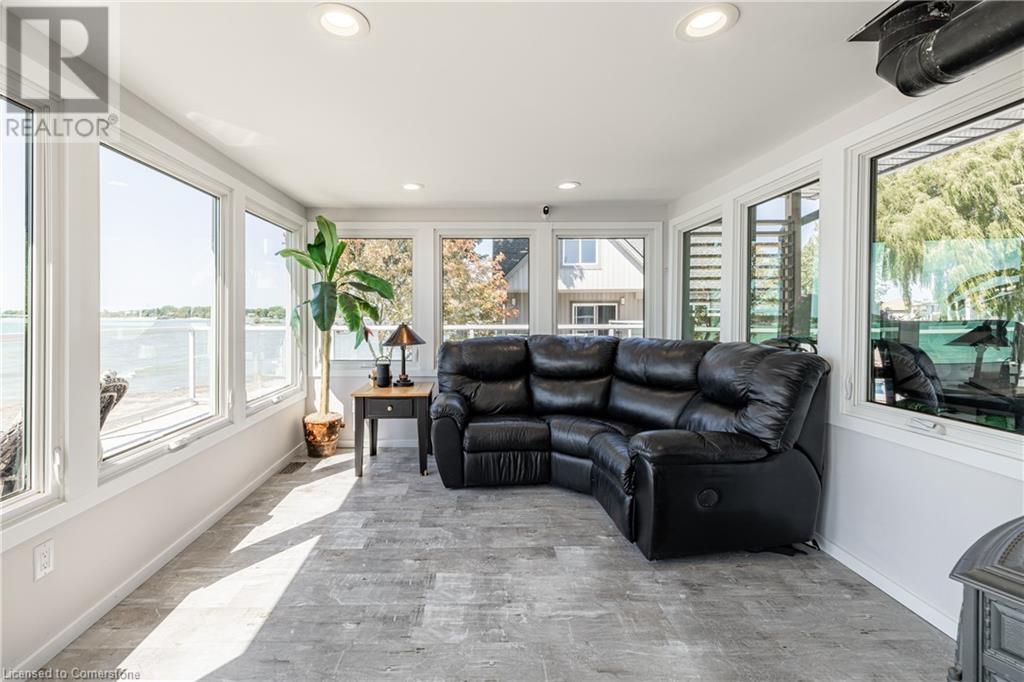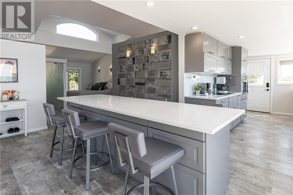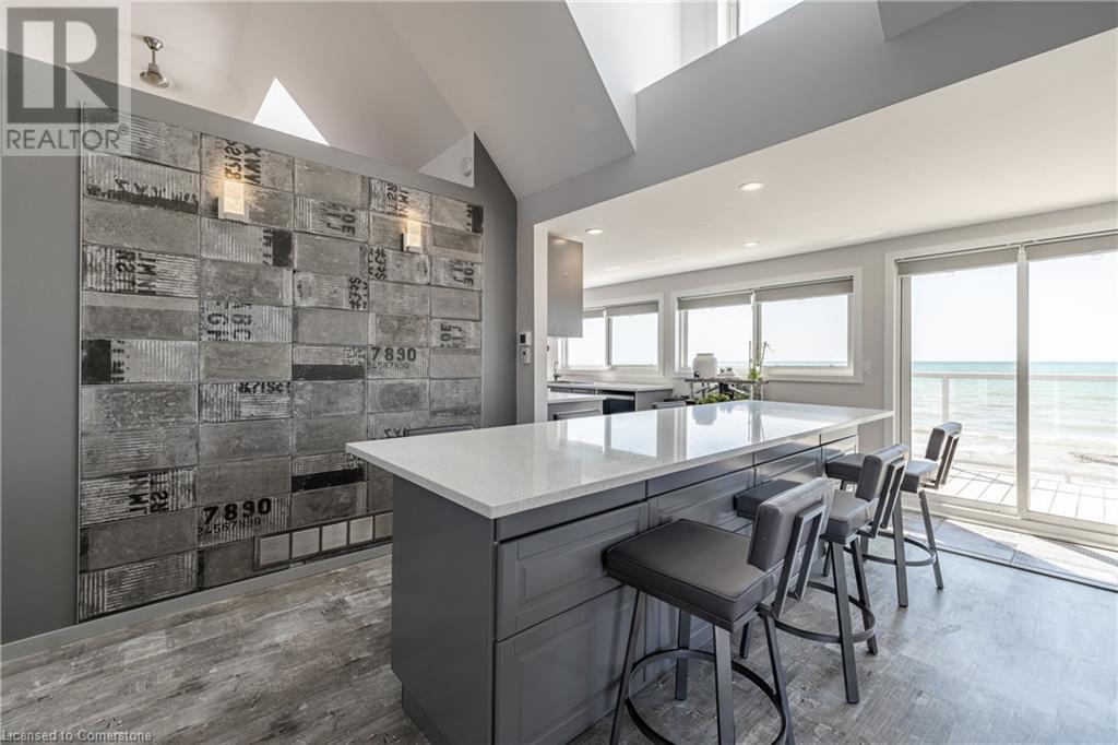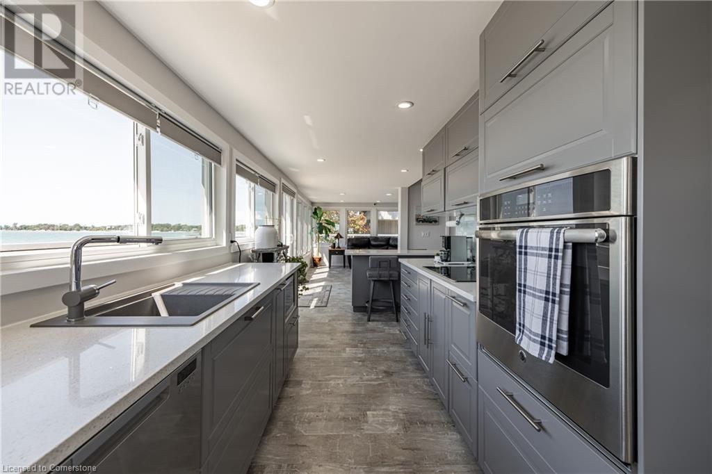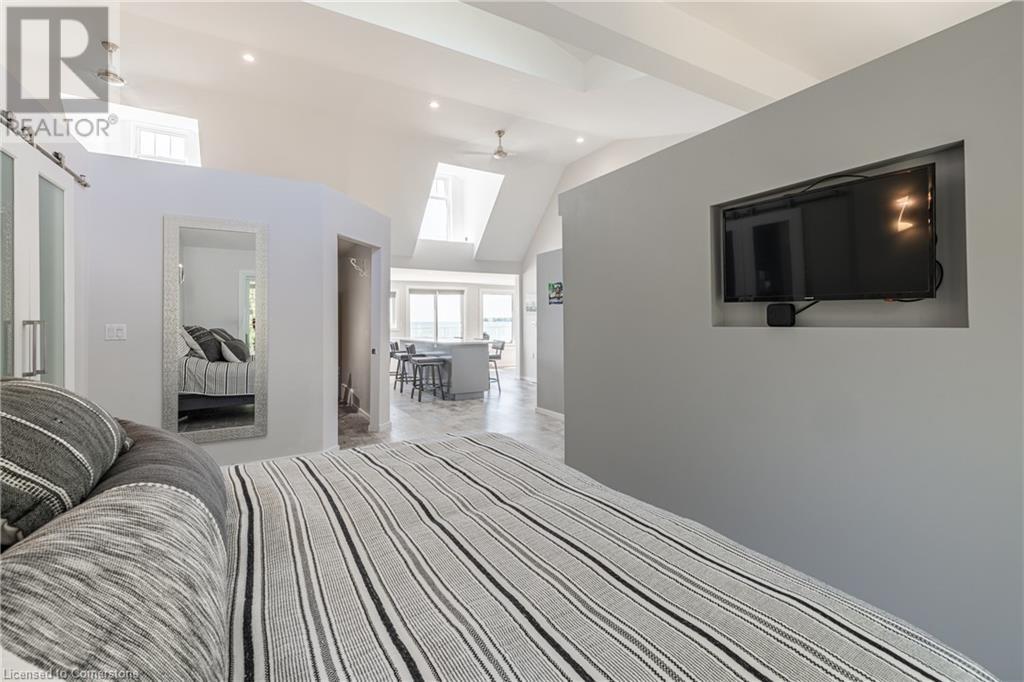 Welcome to 1500 Lakeshore Rd, Selkirk – a stunning, turn-key waterfront retreat! This fully updated, open-concept bungalow features vaulted ceilings, a spacious kitchen with a large quartz island, and a cozy one-bedroom plus den layout. The property is move-in ready, offering modern upgrades throughout for worry-free living, including a metal roof (2017), furnace (2020), A/C (2018), and drilled well (2020). The main house underwent a large addition, and all renovations were completed in 2017, with spray foam insulation applied to both the house and the garage for enhanced energy efficiency. Enjoy breathtaking lake views from the wrap-around deck with sleek glass railings, or relax in the outdoor hot tub and the heated on-ground pool. Inside, unwind in the infrared sauna. The large detached garage (22 x 32) includes a loft apartment with a kitchenette and 3-piece bath, perfect for guests or additional income. With a durable metal roof, this home offers peace of mind, comfort, and style. Just pack your bags and enjoy your new lakeside lifestyle! (id:55009)