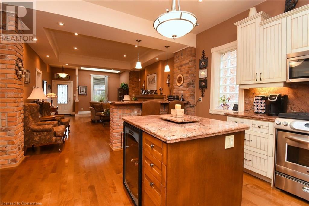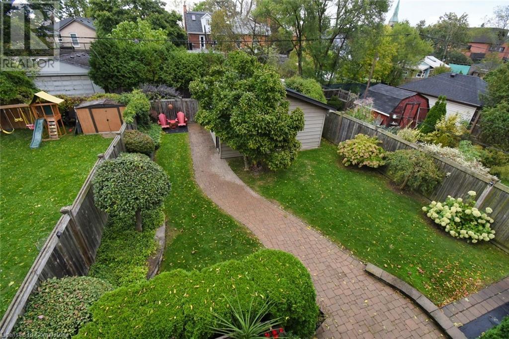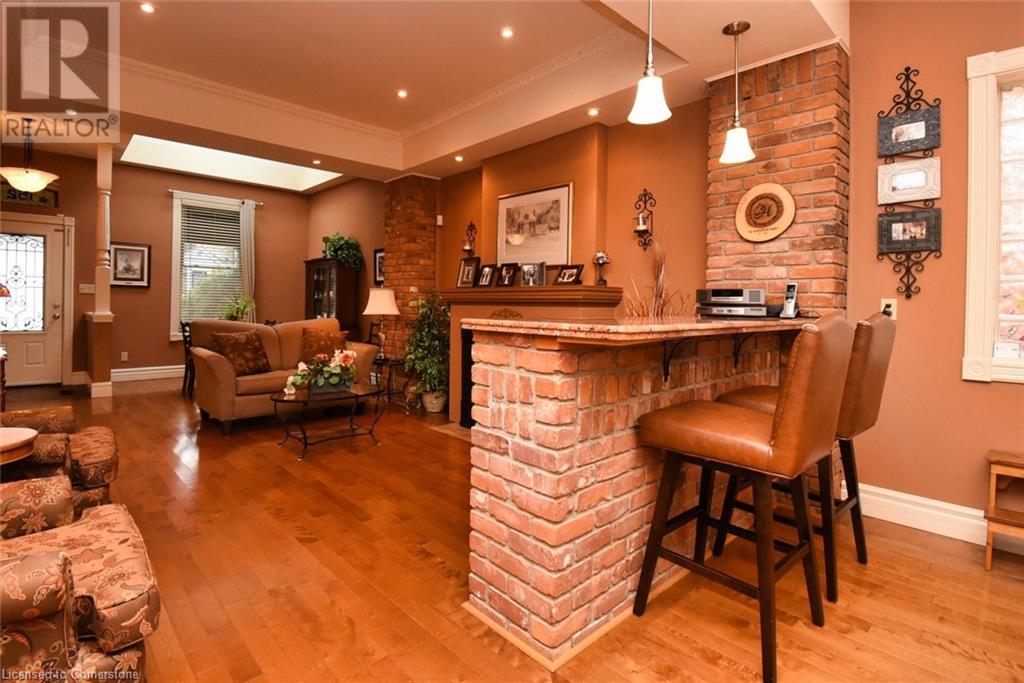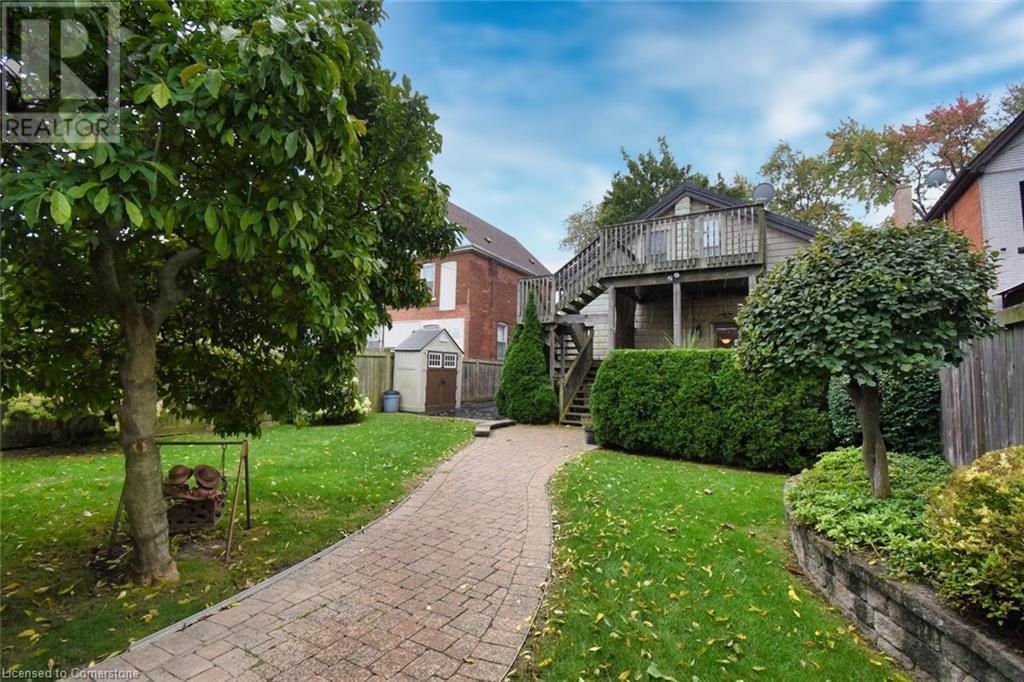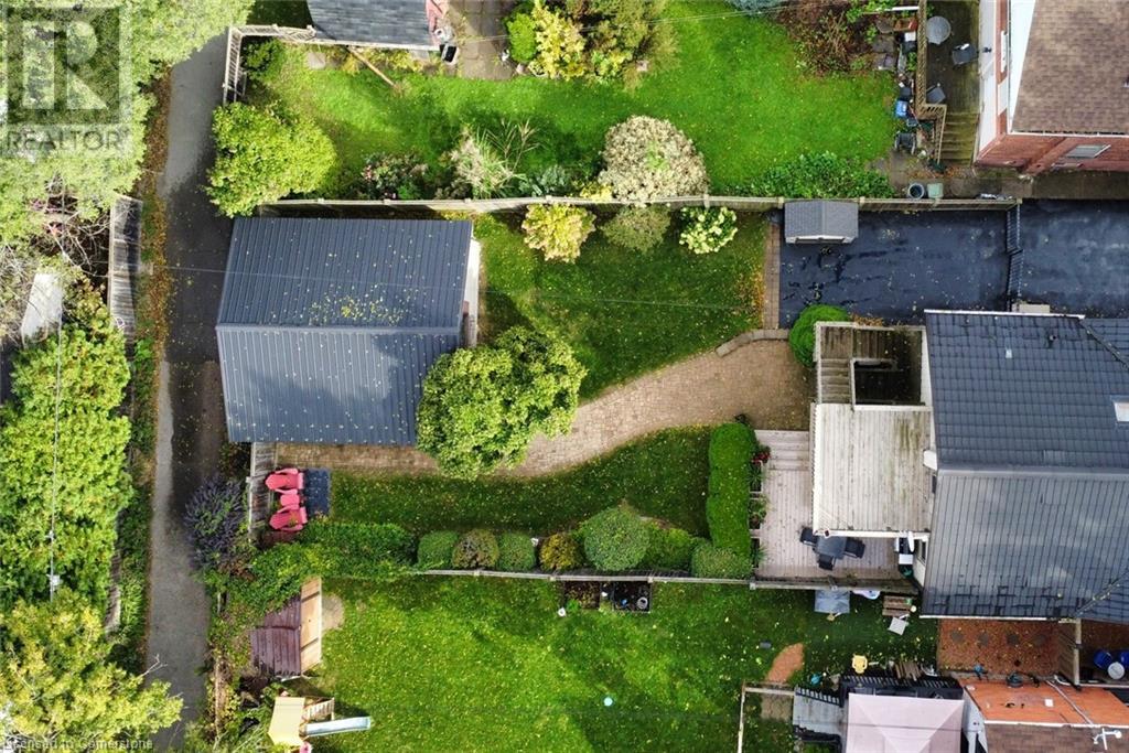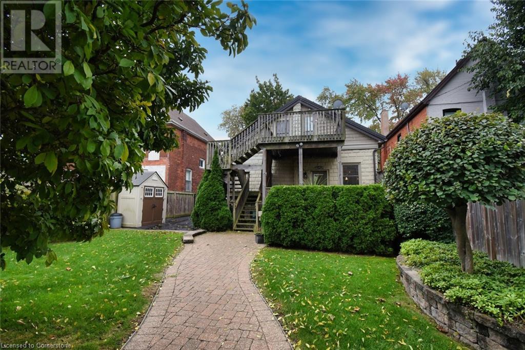 This double brick, century home, built in 1896 boasts historic charm and character with modern luxury and conveniences. Enjoy the convenience of being within walking distance to trendy Locke St. shops, restaurants, public transit, churches, schools and more. Situated on a 40' wide and generous 124' deep lot offering a long side drive (fits 4 cars) and a rear double car garage with access to paved and maintained rear alley. The huge double garage is 19'4 x 21' affords endless possibilities. The interior features exposed reclaimed brick, 10' high ceilings and hardwood floors throughout the main level. Main level features primary bedroom with built-in wall-to-wall Ikea closets, second bedroom, impressive open concept kitchen with island and breakfast bar, granite counters and backsplash, sun-flooded dining room with skylight, living room with cozy gas fireplace, stunning main bathroom with walk-in glass shower enclosure, double sink and handy laundry closet with stacking washer & dryer. The front entrance has wheelchair accessibility directly into main level. The upper level has 2 separate entrances (fire escape and main level private side entrance) suggesting many optional living situations such as in-law suite, teen retreat, multi-generational living and more. Complete with full kitchen with skylight and walk-in closet, full bathroom with skylight, bedroom and living room with private walk-out balcony (11' x 12). The secluded and private backyard oasis is beautifully landscaped with private covered deck and patio area, Upgrades include: all plumbing, all electrical, all windows, all doors, steel roof on house and garage, 3/4 copper water line, entire main level , covered rear deck (11' x 18'6), soffit, fascia and eaves, crawl space has been wrapped and sprayed by Omni Basement and more. (id:55009)