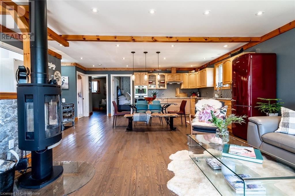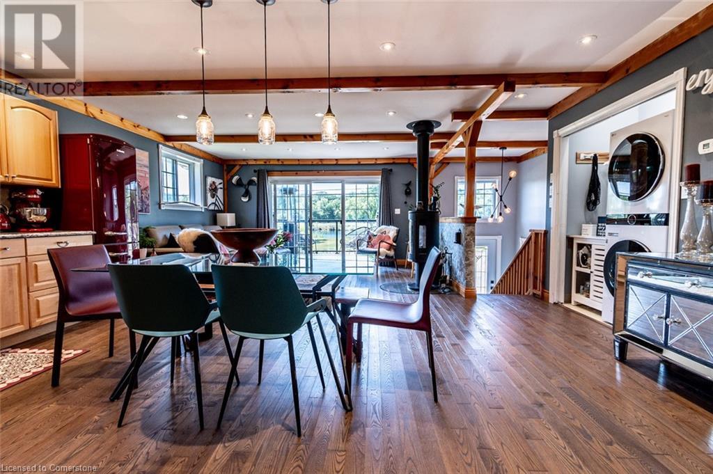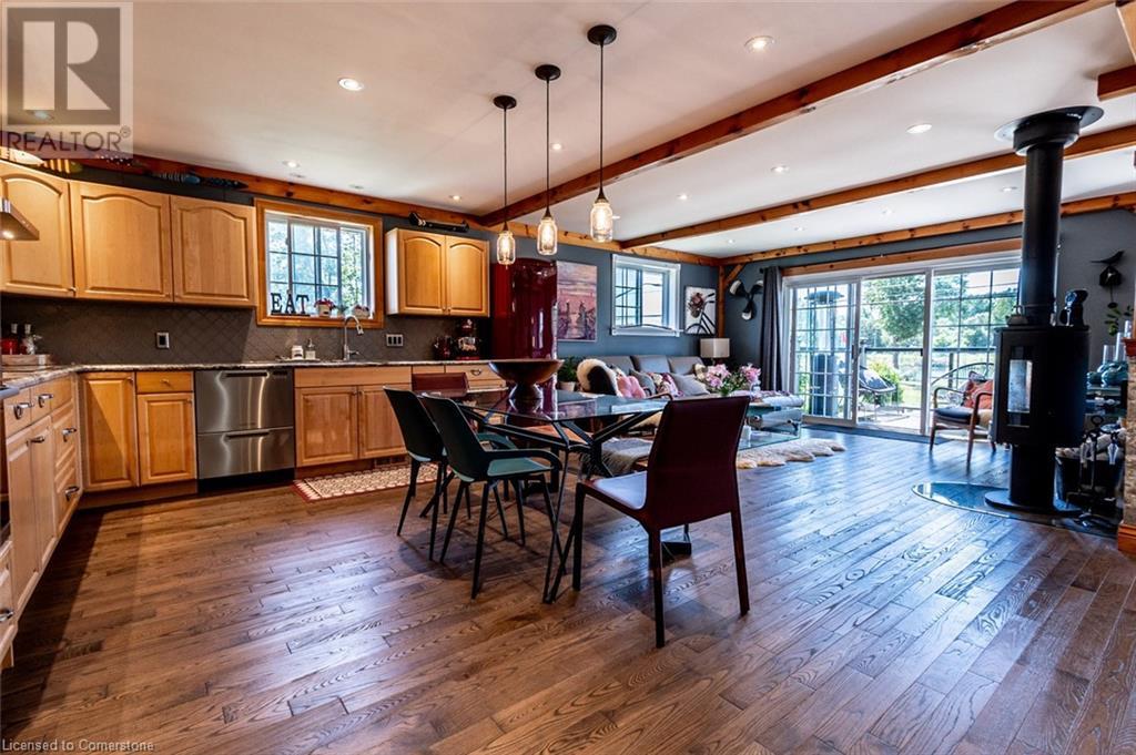 Opportunity awaits you in this unique home situated overlooking the Recreational Flatwater Canal in the small hamlet of Dain City. Wake up and have your morning coffee or an evening glass of wine on the large front deck overlooking the canal and amazing sunsets! This cozy open concept layout is perfect for entertaining this 3 Bed, 2 Bath gem has been beautifully updated & maintained and offers a full inlaw suite. Main level features a huge eat-in kitchen, living room with a new wood burning stove, 4 PC Bath, laundry, 2 well sized Bedrooms & a huge bonus/loft area over the garage. The lower level offers oversized look-out windows, a 3rd Bed w/WIC and is fit with a full 4PC Bath and a full kitchen complete with pantry cupboard and a huge family room with a gas fireplace. Hardwood floors through-out both levels. The oversized garage is partially finished as a workshop ready for the right handyman to set it up and the drive offers 6 car parking. The yard is beautifully landscaped with low maintenance perennials offering summer long blooms. This home has so much to offer to people of all lifestyles! If you have kids off to college that want a little bit of independence, or elderly parents that help out, then this inlaw suite could be the perfect opportunity for you to have your dream home. Enjoy this location just a short walk to The Flatwater Centre, Dragon Boat Festivals, regattas & rowing are regular events on the Canal, and the Trans Canada Trail is located just across the recreational canal, where you can watch world class rowing, a splash pad. Perfect for four-wheeling on nearby trails, along with hiking, fishing or just enjoying the view. Nearby, Empire Communities’ athletic complex offers pickleball courts, tennis courts, beach volleyball courts, and a full-size basketball court. Just a short drive to shopping & to amenities. (id:55009)