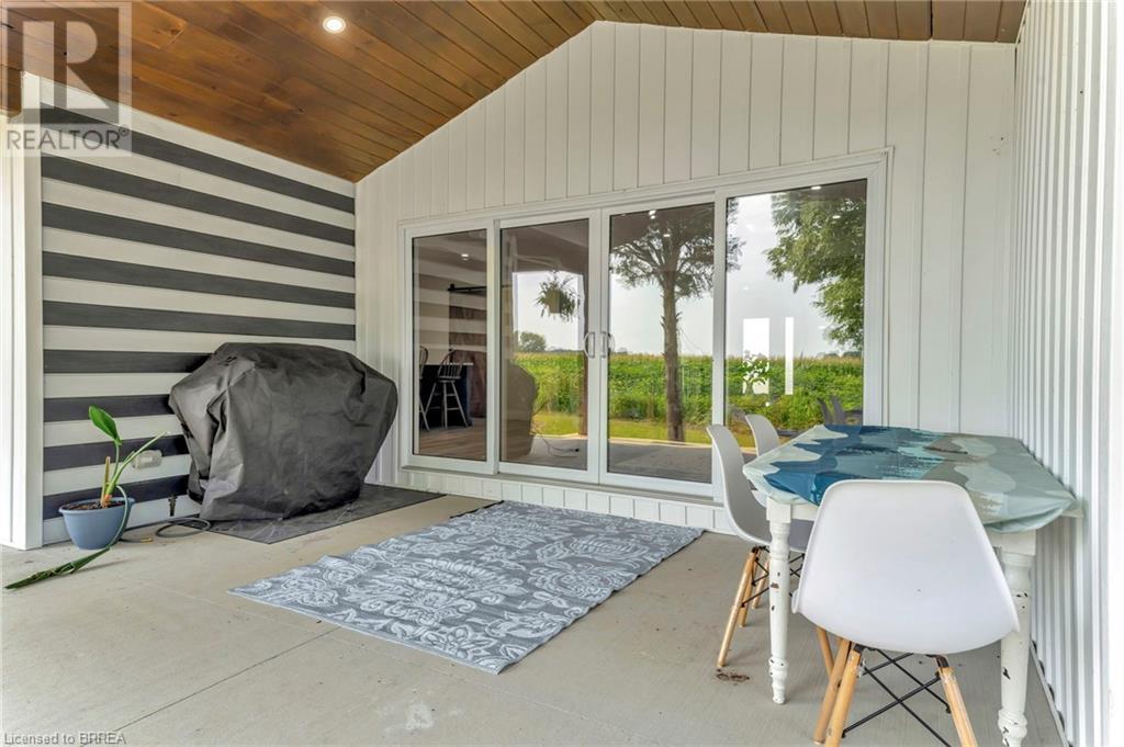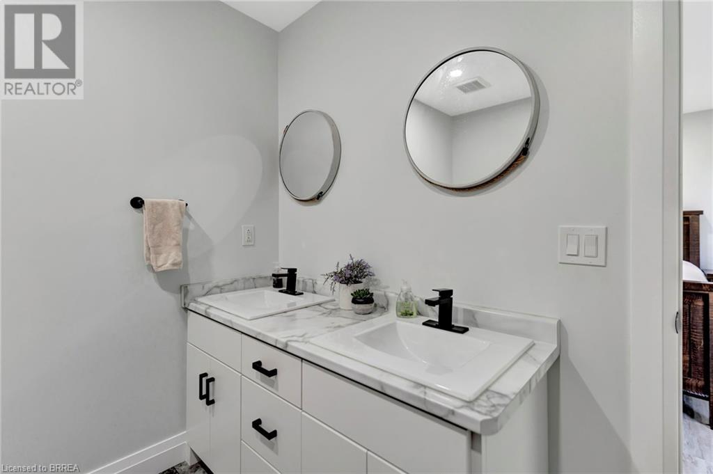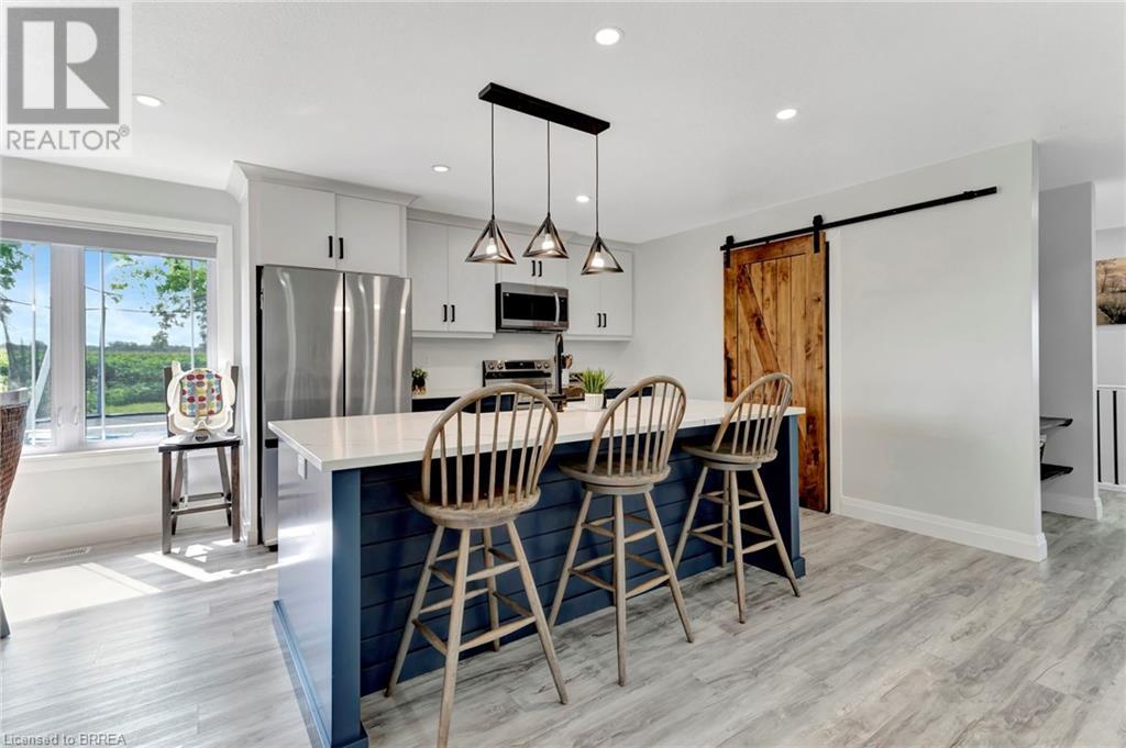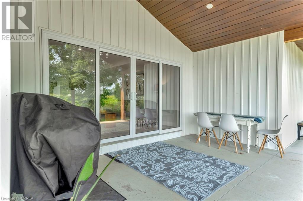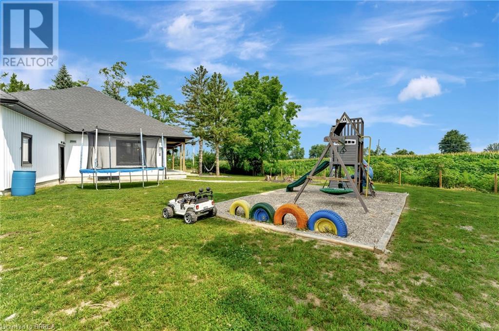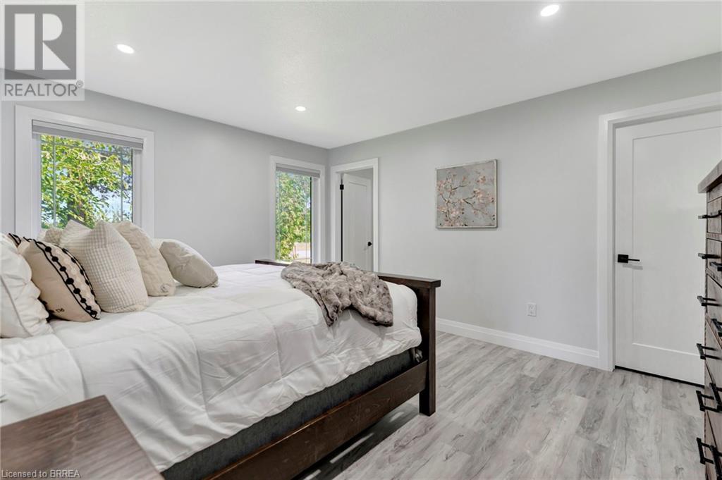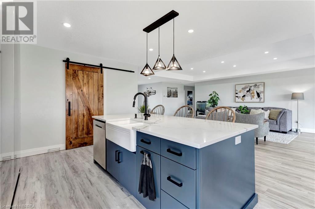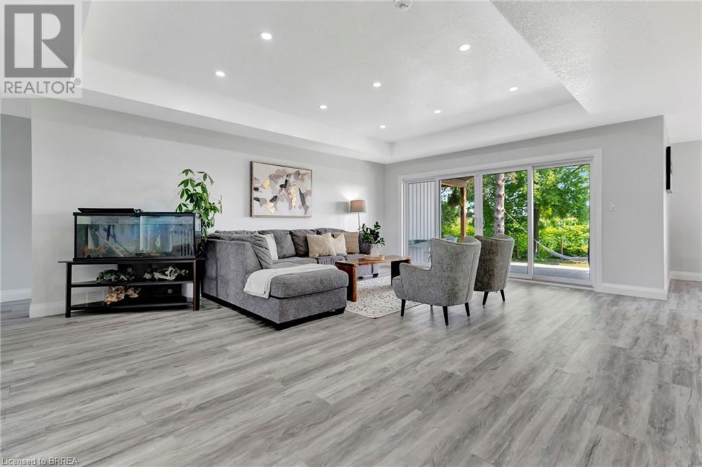 Discover the perfect blend of modern luxury and rural tranquility with this stunning bungalow resting amidst expansive fields of green. This home offers privacy, surrounded by mature trees and picturesque views with a chic exterior featuring black and stone accents, complemented by a double garage and an extended triple-wide driveway. The covered front entry with a full glass door, welcomes you into an open-concept foyer. Inside, the main floor boasts beautiful vinyl plank flooring that flows seamlessly throughout. The two-toned kitchen with blue island and base cabinets, white quartz counters, a farm-style sink, and stainless steel appliances is the heart of this home. Enjoy breakfast bar seating, recessed lighting, and modern fixtures as the kitchen extends into a spacious pantry equipped with an additional sink, counter, shelving, and ample prep space! The dining area showcases breathtaking views of the surrounding fields, while the living room features a tray ceiling and oversized walk-out access, flooding the space with natural light and providing access to indoor/outdoor living with ease. Step outside to the vaulted ceiling, covered porch that spans the width of the home, perfect for relaxing and entertaining. The primary bedroom is a serene retreat with a luxurious 5pc ensuite while two additional bedrooms share a 4pc bathroom. The main floor also includes a convenient laundry/mudroom with garage entry. The expansive finished basement, with deep windows makes it feel above grade and includes two more bedrooms as well as an office/den/playroom with glass french doors, and a 5pc bathroom, providing plenty of space for family and guests. The private yard is a blank canvas, ready for entertaining, outdoor activities, and more. Experience the best of rural living with modern conveniences in this exceptional property. Don't miss the opportunity to make this secluded, stylish bungalow your dream home. (id:55009)