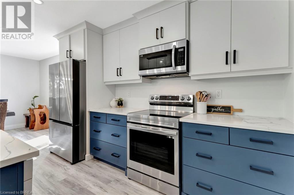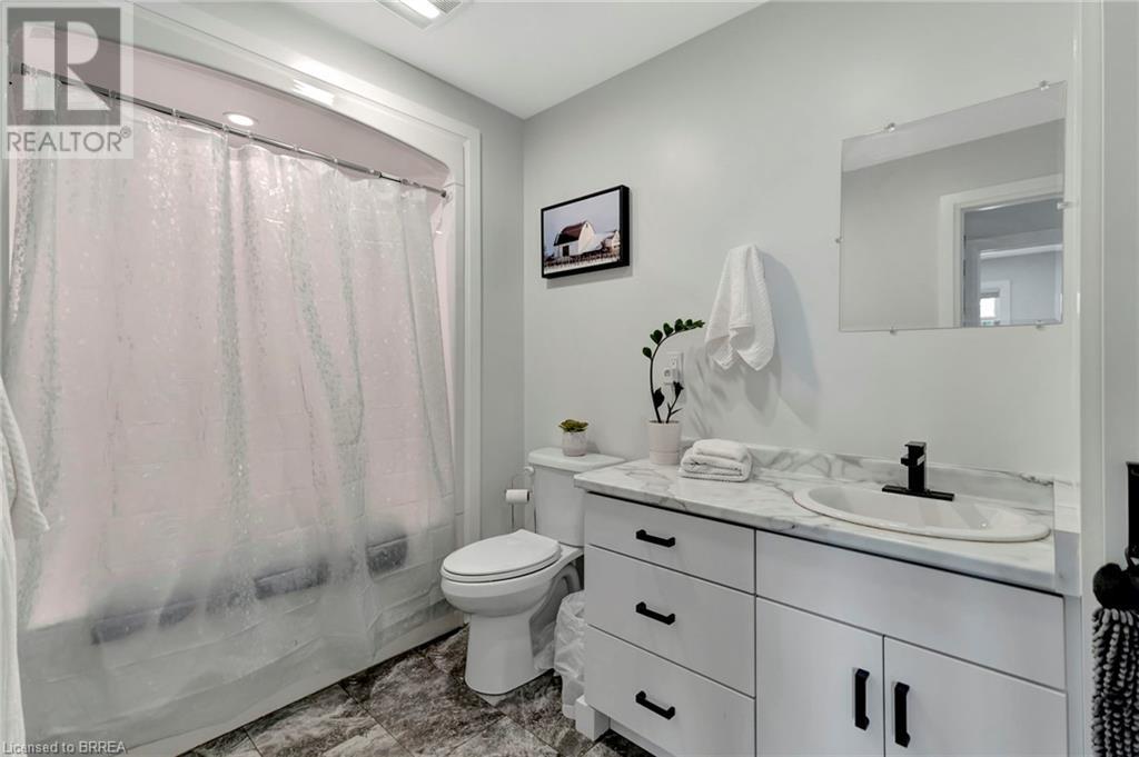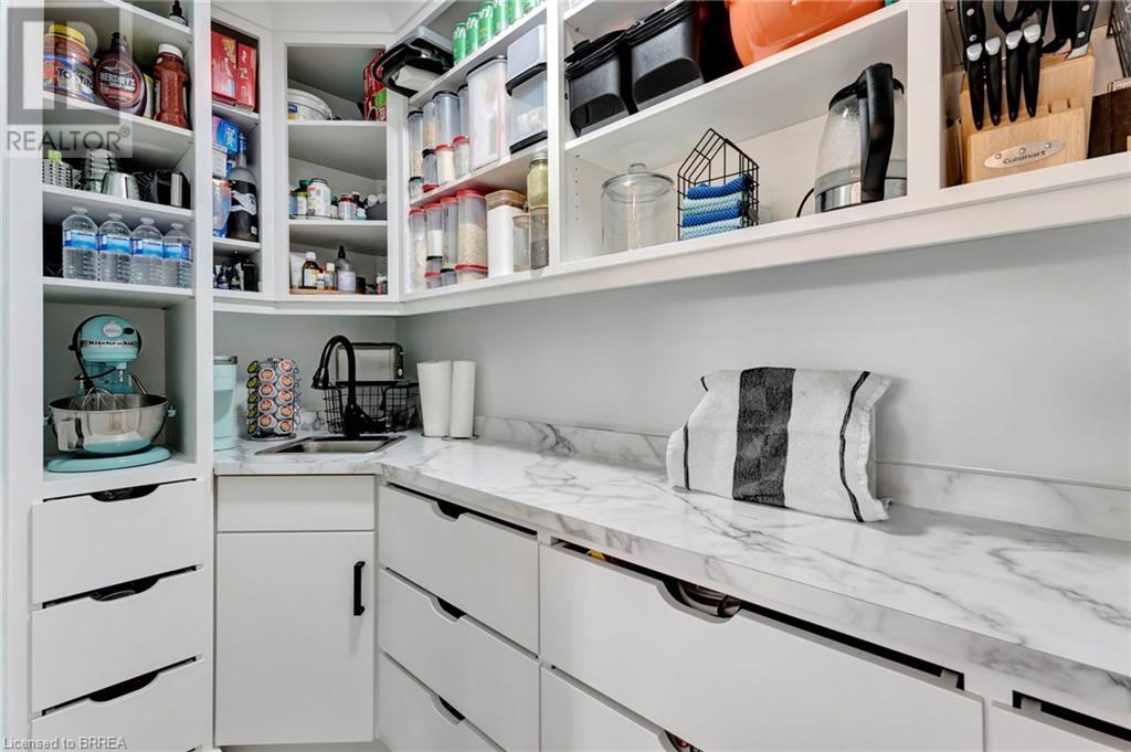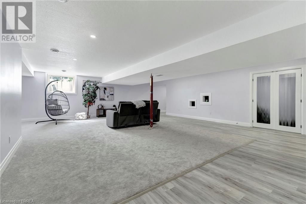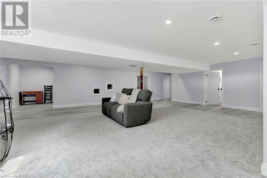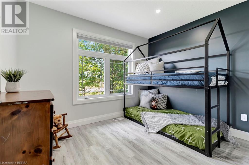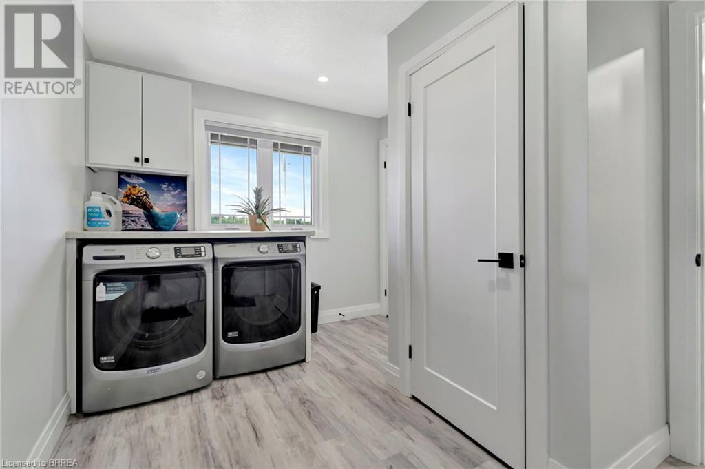 Discover the perfect blend of modern luxury and rural tranquility with this stunning bungalow resting amidst expansive fields of green. This home offers privacy, surrounded by mature trees and picturesque views with a chic exterior featuring black and stone accents, complemented by a double garage and an extended triple-wide driveway. The covered front entry with a full glass door, welcomes you into an open-concept foyer. Inside, the main floor boasts beautiful vinyl plank flooring that flows seamlessly throughout. The two-toned kitchen with blue island and base cabinets, white quartz counters, a farm-style sink, and stainless steel appliances is the heart of this home. Enjoy breakfast bar seating, recessed lighting, and modern fixtures as the kitchen extends into a spacious pantry equipped with an additional sink, counter, shelving, and ample prep space! The dining area showcases breathtaking views of the surrounding fields, while the living room features a tray ceiling and oversized walk-out access, flooding the space with natural light and providing access to indoor/outdoor living with ease. Step outside to the vaulted ceiling, covered porch that spans the width of the home, perfect for relaxing and entertaining. The primary bedroom is a serene retreat with a luxurious 5pc ensuite while two additional bedrooms share a 4pc bathroom. The main floor also includes a convenient laundry/mudroom with garage entry. The expansive finished basement, with deep windows makes it feel above grade and includes two more bedrooms as well as an office/den/playroom with glass french doors, and a 5pc bathroom, providing plenty of space for family and guests. The private yard is a blank canvas, ready for entertaining, outdoor activities, and more. Experience the best of rural living with modern conveniences in this exceptional property. Don't miss the opportunity to make this secluded, stylish bungalow your dream home. (id:55009)
