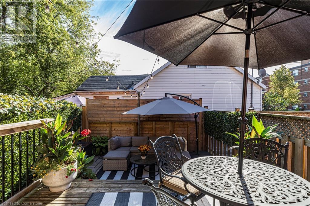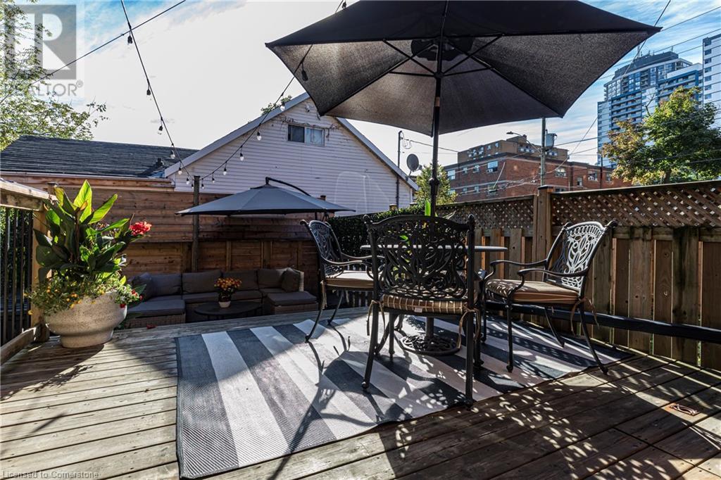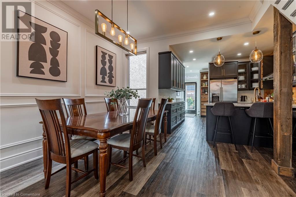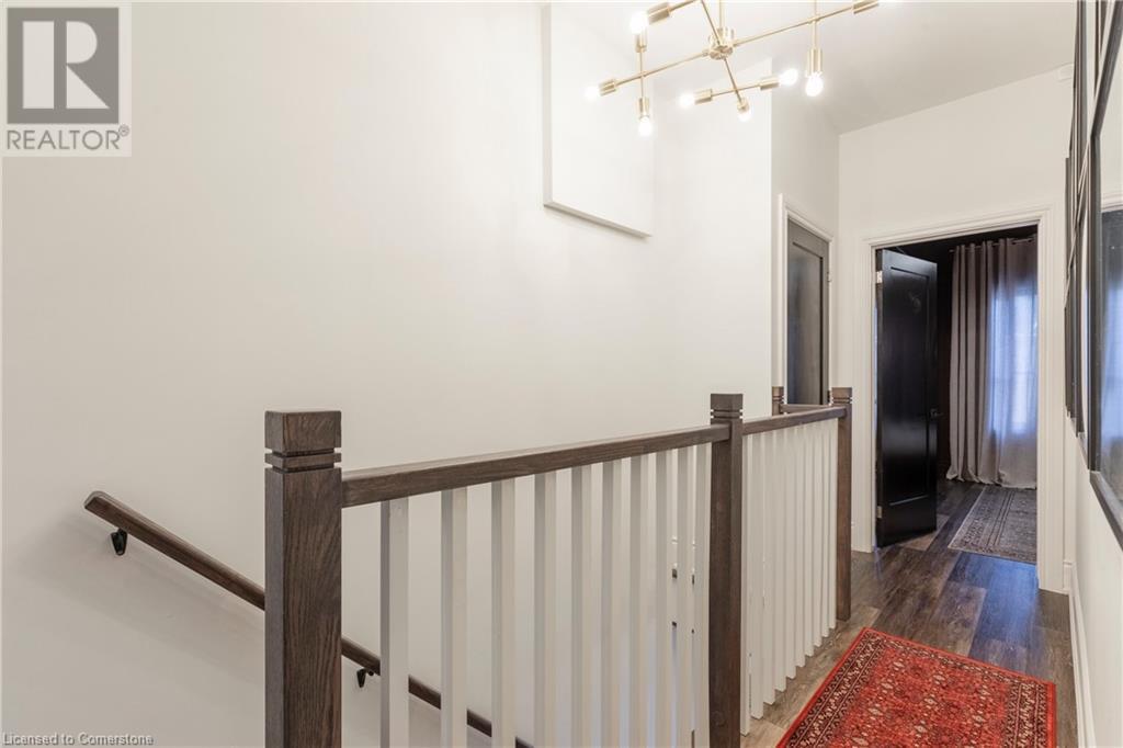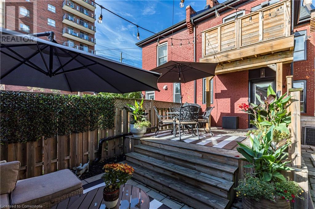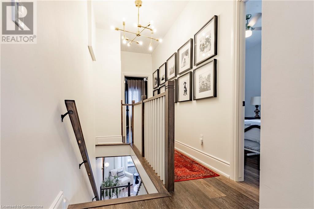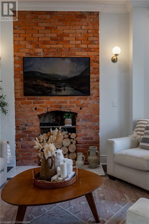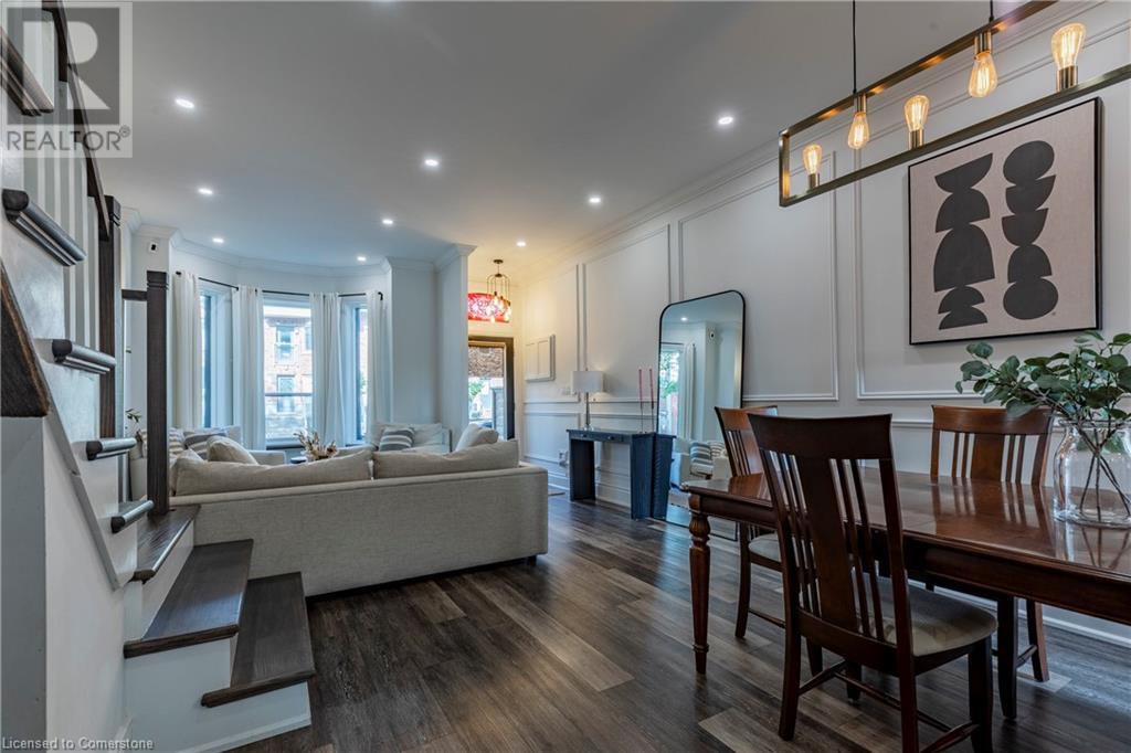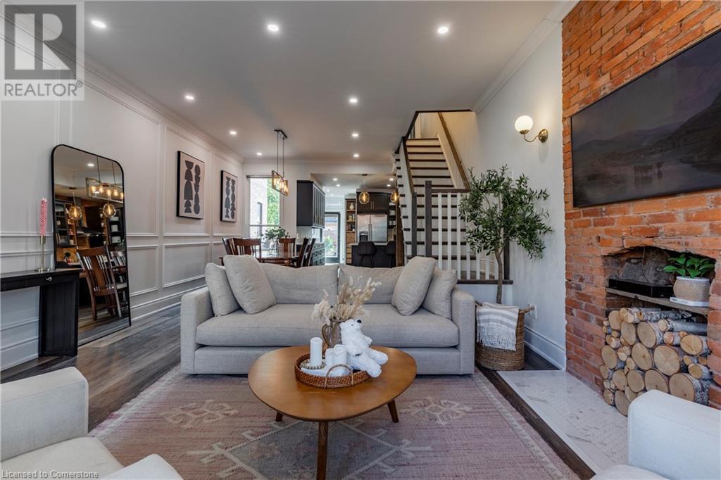 Step into the heart of Corktown w/ this beautifully maintained circa 1892 red-brick semi-det home, offering 1,418 sq ft of historic charm & modern elegance. This 3-bdrm, 2-bath residence combines style & convenience in one of Hamilton's most cherished neighbourhoods. The timeless red-brick ext, low-maint front garden, & interlock driveway for 1 small vehicle lead to an updated glass front door w/ a transom window. Inside, the open-concept main lvl feat 9.5-ft ceil, a spacious foyer, a form liv rm w/ a bay window & exp brick centrepiece, & an adjacent din rm. The stunning kitch incl dark cab, quartz countertops, S/S app, & a peninsula w/ seating for 3. Added cabinetry, crown moulding, pot lighting, & exposed brick accents complete this stylish space. A 3-pc bath w/ a glass shower & laund facilities offer convenience. Upstairs, the primary suite boasts an oversized closet & mirrored wardrobe. 2 add bdrms, one w/ access to an upper balcony, provide versatility. A 4-pc bath w/ a shower/tub combo & a recently installed linen closet add practical comforts. The low-maint rear yard feat an upper deck, lower interlock terrace, & privacy panel, perfect for entertaining or relaxing. Updates incl roof shing (21), insulation, electrical, furnace, & plumbing. Located within walking distance to Augusta Street's vibrant restaurants, GO transit, parks, and downtown Hamilton, this home blends historic character with modern upgrades, offering a perfect Corktown lifestyle. (id:55009)