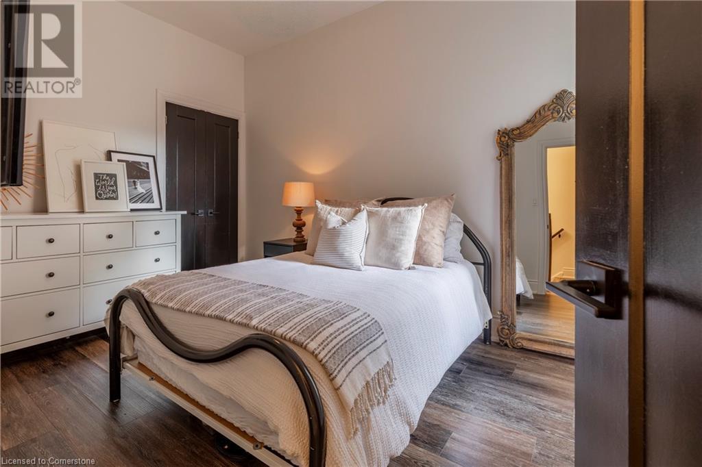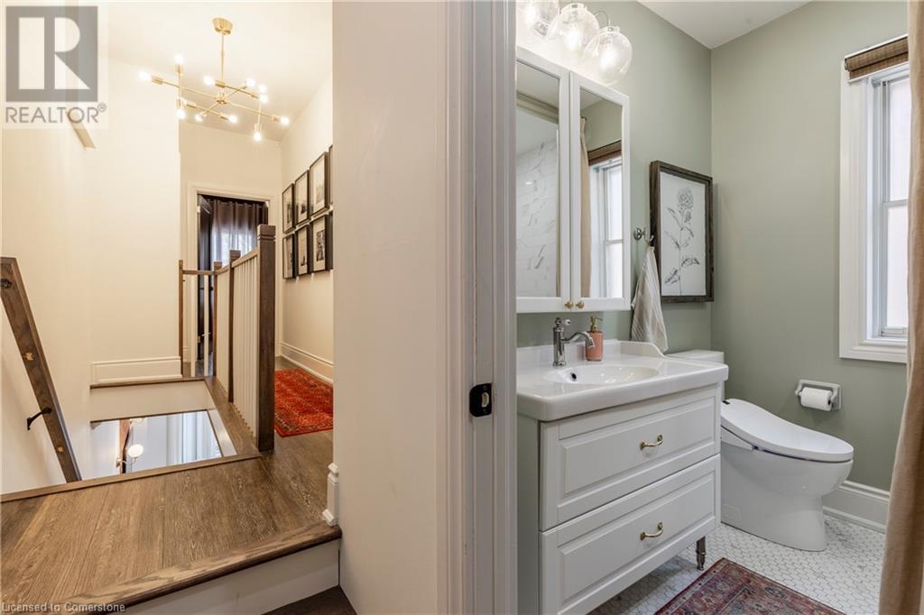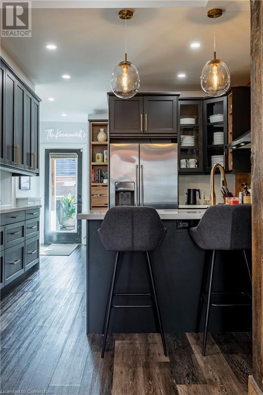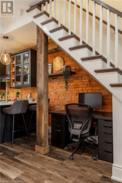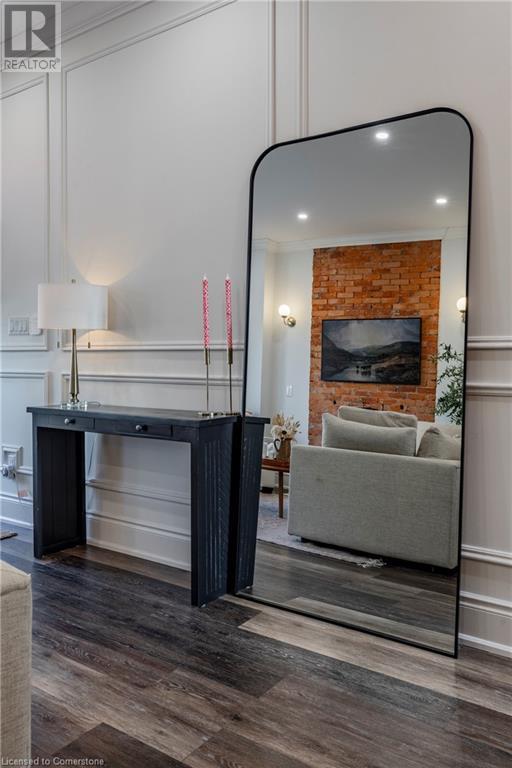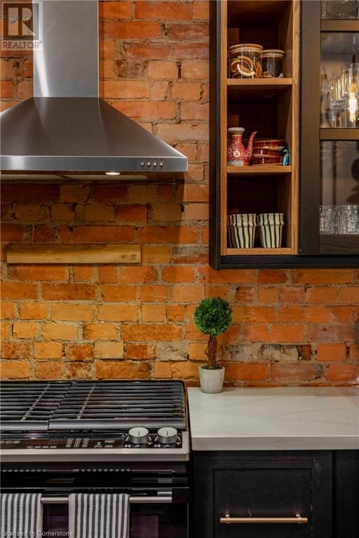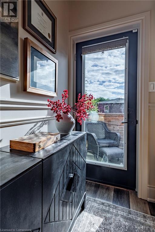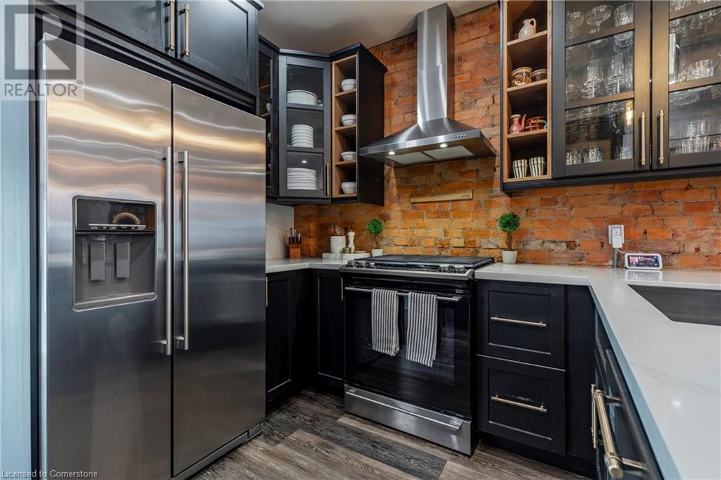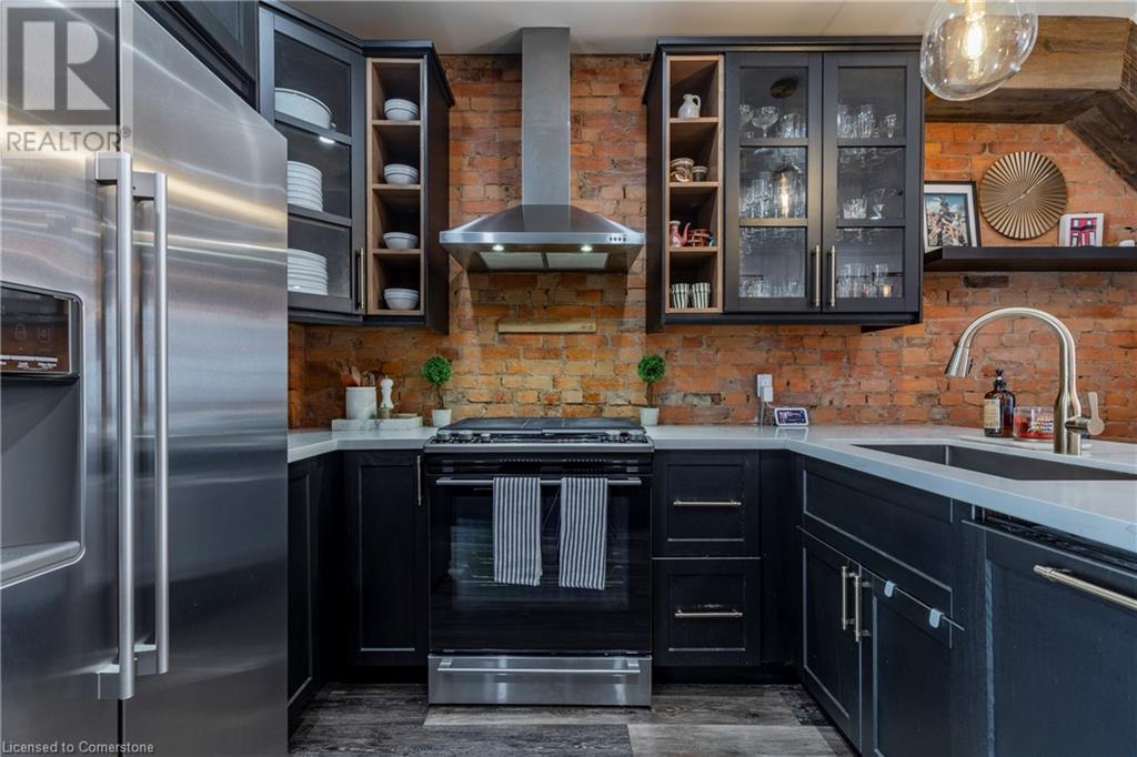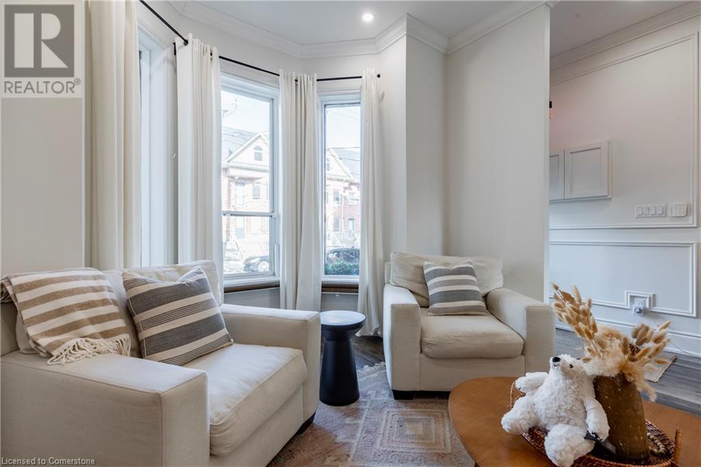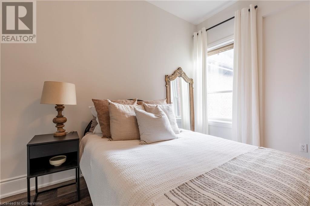 Step into the heart of Corktown w/ this beautifully maintained circa 1892 red-brick semi-det home, offering 1,418 sq ft of historic charm & modern elegance. This 3-bdrm, 2-bath residence combines style & convenience in one of Hamilton's most cherished neighbourhoods. The timeless red-brick ext, low-maint front garden, & interlock driveway for 1 small vehicle lead to an updated glass front door w/ a transom window. Inside, the open-concept main lvl feat 9.5-ft ceil, a spacious foyer, a form liv rm w/ a bay window & exp brick centrepiece, & an adjacent din rm. The stunning kitch incl dark cab, quartz countertops, S/S app, & a peninsula w/ seating for 3. Added cabinetry, crown moulding, pot lighting, & exposed brick accents complete this stylish space. A 3-pc bath w/ a glass shower & laund facilities offer convenience. Upstairs, the primary suite boasts an oversized closet & mirrored wardrobe. 2 add bdrms, one w/ access to an upper balcony, provide versatility. A 4-pc bath w/ a shower/tub combo & a recently installed linen closet add practical comforts. The low-maint rear yard feat an upper deck, lower interlock terrace, & privacy panel, perfect for entertaining or relaxing. Updates incl roof shing (21), insulation, electrical, furnace, & plumbing. Located within walking distance to Augusta Street's vibrant restaurants, GO transit, parks, and downtown Hamilton, this home blends historic character with modern upgrades, offering a perfect Corktown lifestyle. (id:55009)