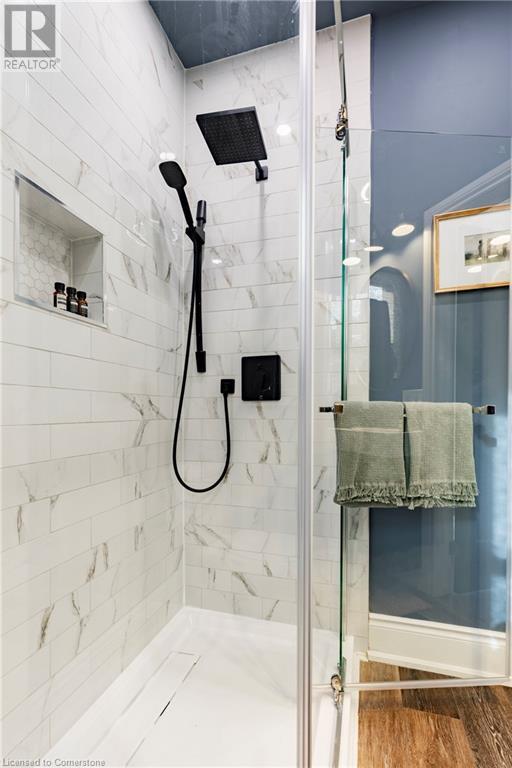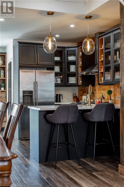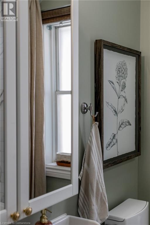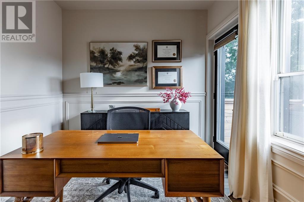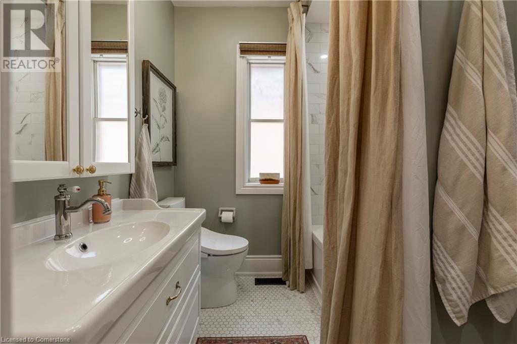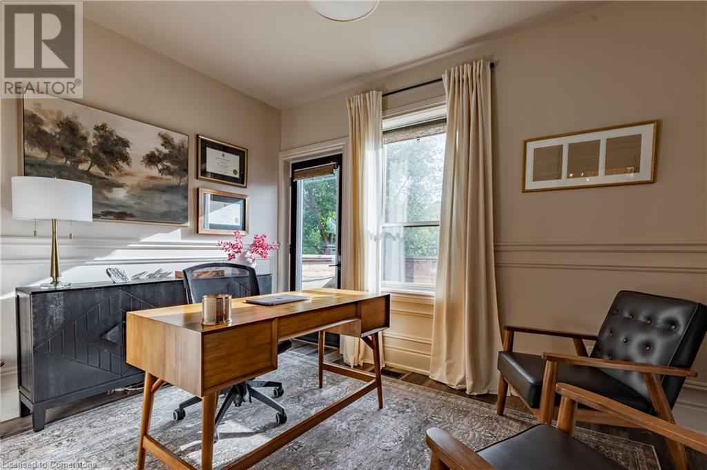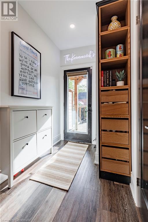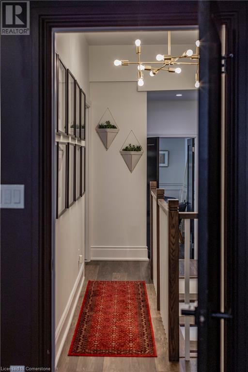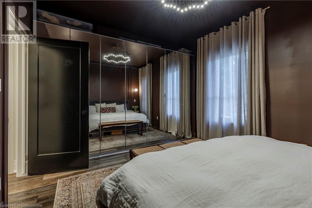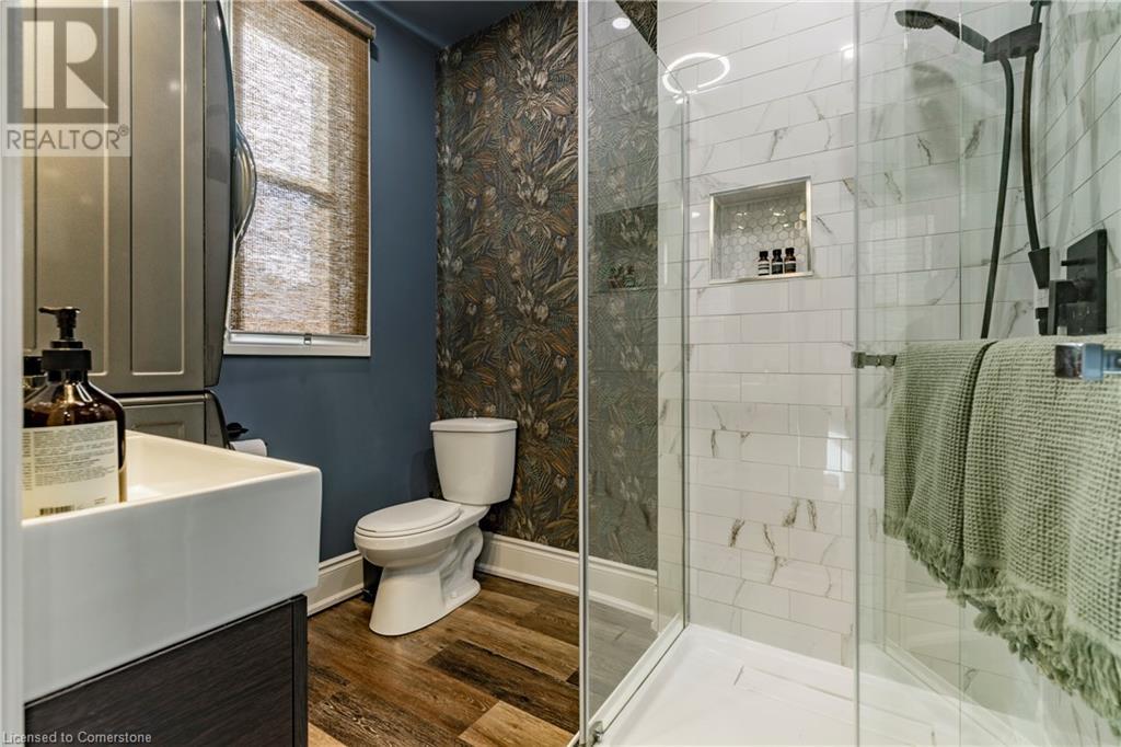 Step into the heart of Corktown w/ this beautifully maintained circa 1892 red-brick semi-det home, offering 1,418 sq ft of historic charm & modern elegance. This 3-bdrm, 2-bath residence combines style & convenience in one of Hamilton's most cherished neighbourhoods. The timeless red-brick ext, low-maint front garden, & interlock driveway for 1 small vehicle lead to an updated glass front door w/ a transom window. Inside, the open-concept main lvl feat 9.5-ft ceil, a spacious foyer, a form liv rm w/ a bay window & exp brick centrepiece, & an adjacent din rm. The stunning kitch incl dark cab, quartz countertops, S/S app, & a peninsula w/ seating for 3. Added cabinetry, crown moulding, pot lighting, & exposed brick accents complete this stylish space. A 3-pc bath w/ a glass shower & laund facilities offer convenience. Upstairs, the primary suite boasts an oversized closet & mirrored wardrobe. 2 add bdrms, one w/ access to an upper balcony, provide versatility. A 4-pc bath w/ a shower/tub combo & a recently installed linen closet add practical comforts. The low-maint rear yard feat an upper deck, lower interlock terrace, & privacy panel, perfect for entertaining or relaxing. Updates incl roof shing (21), insulation, electrical, furnace, & plumbing. Located within walking distance to Augusta Street's vibrant restaurants, GO transit, parks, and downtown Hamilton, this home blends historic character with modern upgrades, offering a perfect Corktown lifestyle. (id:55009)