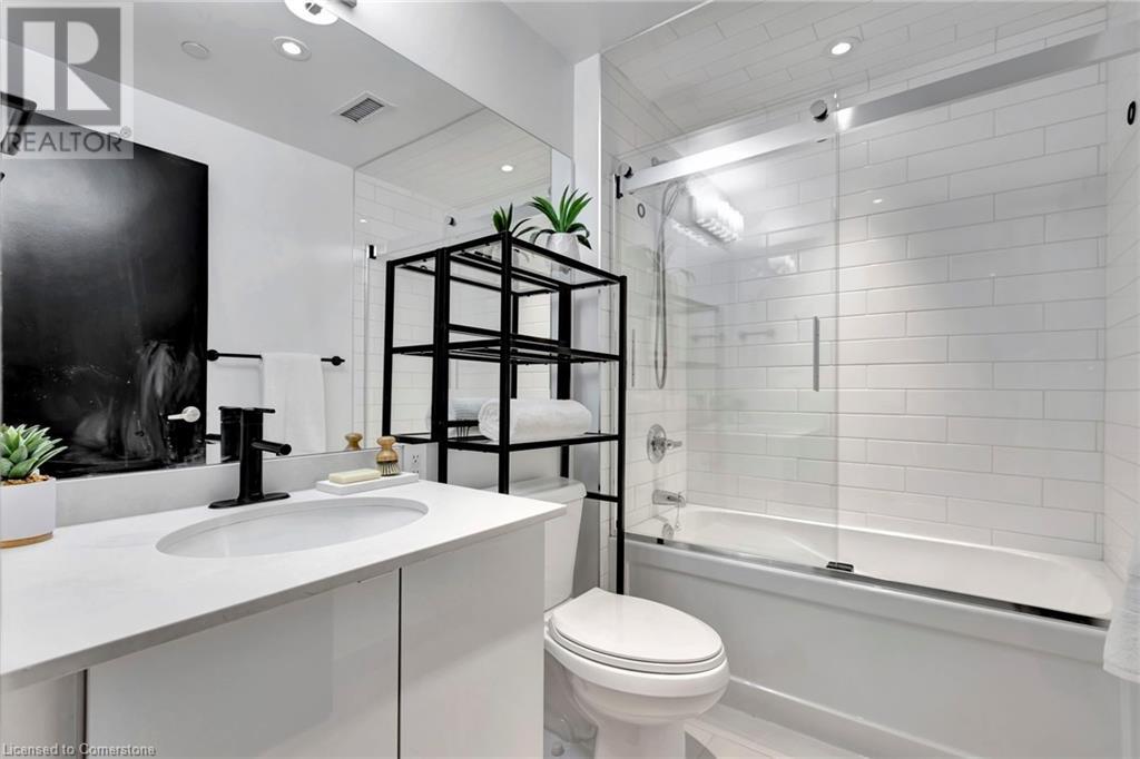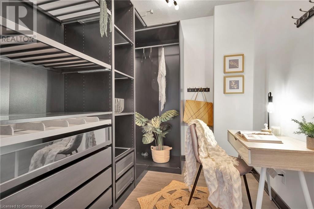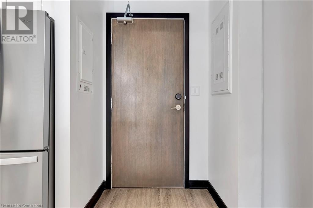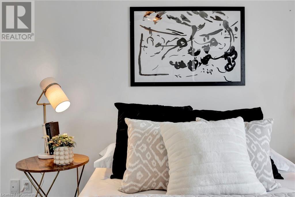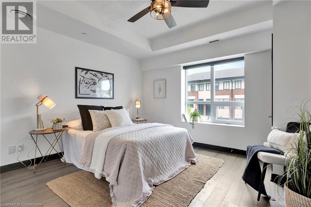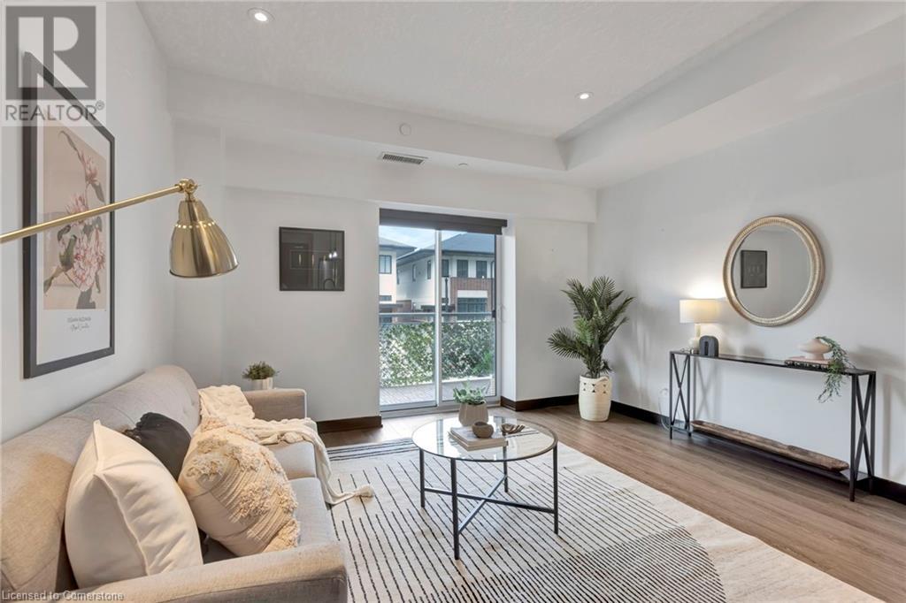 $460 MonthlyWelcome to the prestigious Monetary Heights Community built by Dicenzo homes in Ancaster. This Venice Model features 1 Bedroom+ Den, 1 Bathroom and 738 sq.ft of living space with 72 sq.ft of outdoor space. This unit features multiple upgrades including kitchen cabinets with quartz countertops, upgraded stainless steel appliances and a large island with a voice controlled (Alexa) kitchen sink faucet. The den is currently used as a flex space with custom built-ins for extra storage as well as being used as an office if you're working from home. Off the kitchen you have your open concept living room with automatic blinds and access to your balcony. This beautiful unit also features an upgraded 4-piece bathroom with subway tile surround and glass sliding doors. Off the bathroom you have your bedroom with custom automatic blackout blinds. The entire condo has been painted including black doors and black accent baseboards. This unit includes a RARE opportunity for 2 parking spaces (#21 underground and #21 outside) as well as a locker space for additional storage. Walking distance to all of the amenities Ancaster has to offer as well as schools and public transit! Don’t miss this opportunity!! (id:55009)