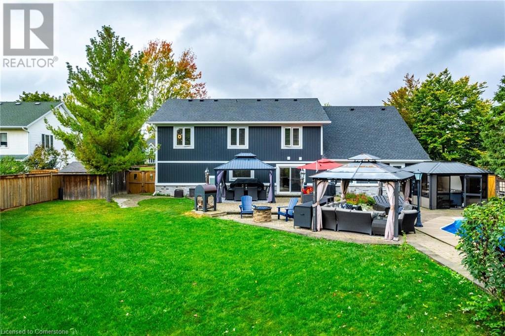 Situated on a private ½ acre lot and located in Flamborough’s coveted Freelton community, this stunning country property offers over 2,700 square feet of above ground living space on a mature dead-end street. The kitchen has been recently remodeled and features high end stainless appliances, Granite counters and a built-in pantry. Bonuses include newer windows and doors (2017), 2 living spaces and a natural gas fireplace add to the charm of the main floor living. Upstairs, you will find 5 generous sized bedrooms including 2 primary suites. Outside the entire home has been tastefully refaced and fully landscaped front and rear. The backyard features an inground pool, enclosed hot tub, and 2 gazebos. This property is sure to please. Don’t be TOO LATE*! *REG TM. RSA. (id:55009)