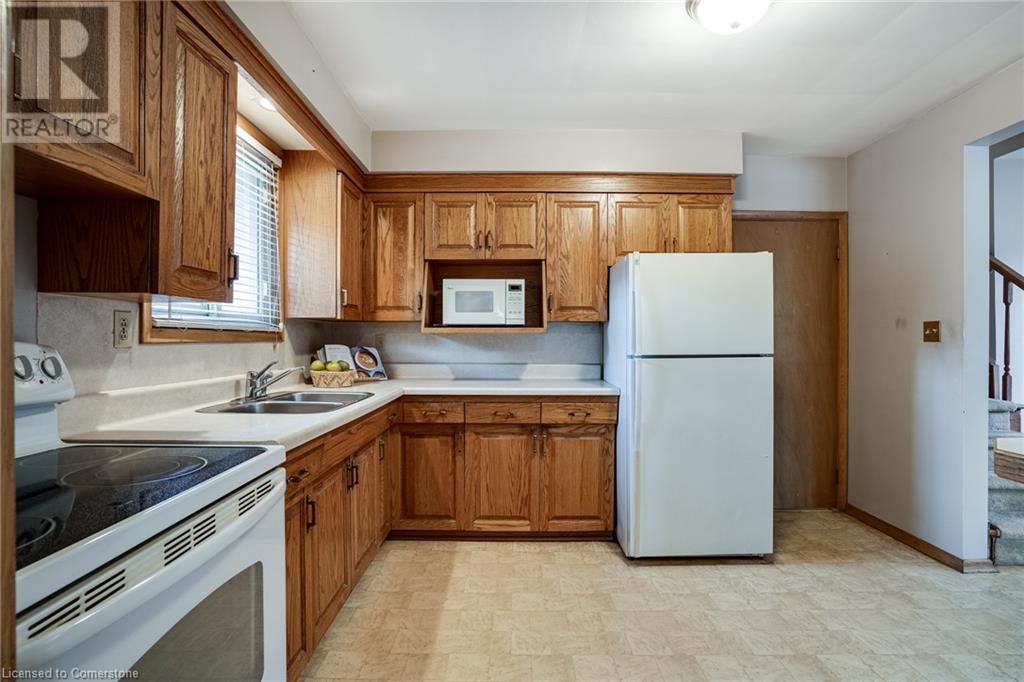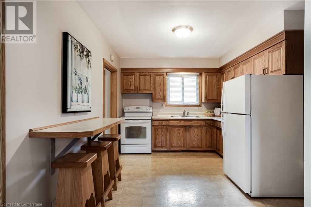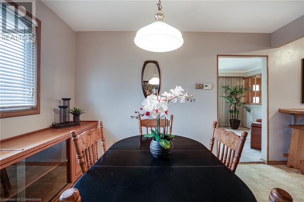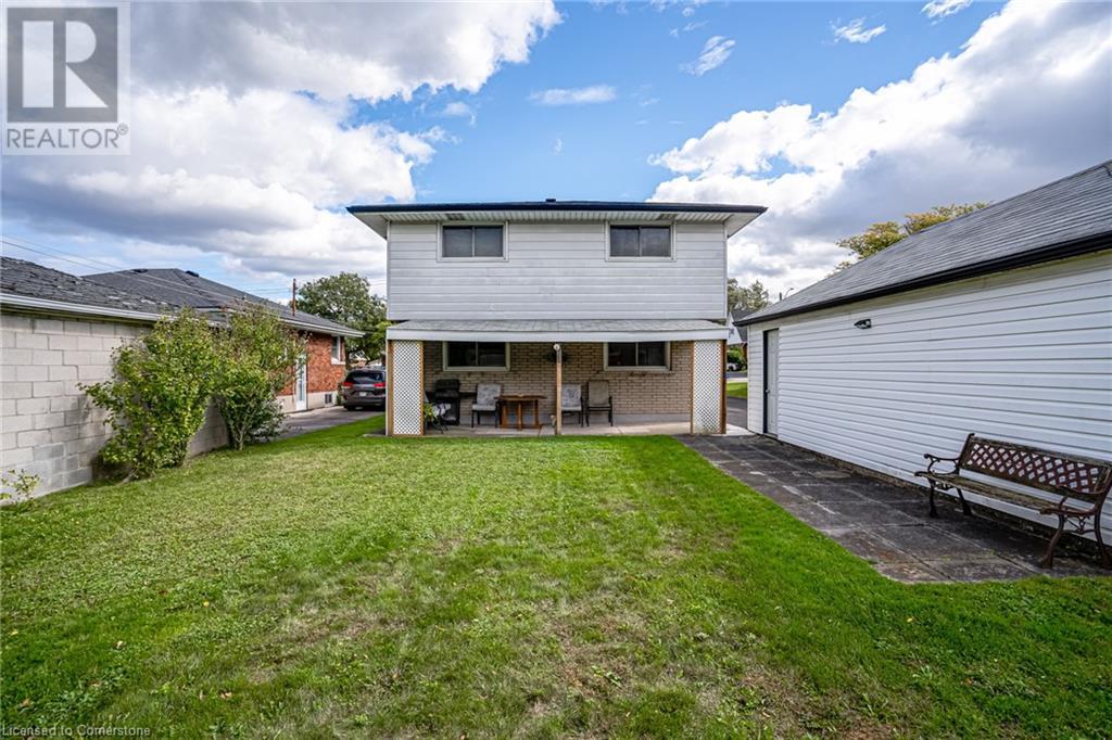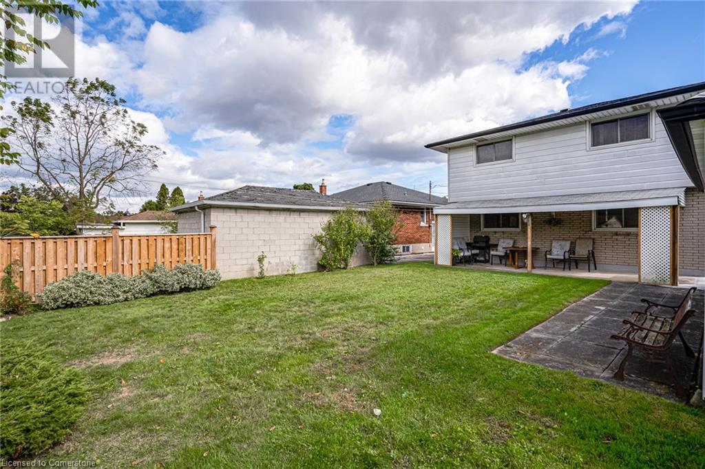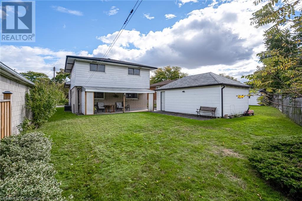 Excellent opportunity to own this charming backsplit with in-law potential in sought after Hamilton Mountain neighborhood! Amazing curb appeal and nestled on a 50 x 116 foot lot with detached 1.5 car garage. Lovingly maintained for many years by the same family, this charming home has loads of potential. With over 1900 square feet of finished living space, 3 bedrooms and 2 bathrooms there is plenty of room for the growing family. This spacious backsplit offers a generous sized living room & eat in kitchen with breakfast bar. The upper level features 3 spacious bedrooms and a 4 piece bathroom. Downstairs you will find a generous sized family room and additional 2 pc bath with separate side entrance off this level. The lower level offers a built in bar area and rec room. Basement laundry & crawl space. The backyard features a generous covered patio and gardens. Ample parking in the paved driveway for up to 5 cars. Amazing neighborhood with schools, parks, shopping, highway access & close proximity to Mohawk College. Book your private showing today! (id:55009)