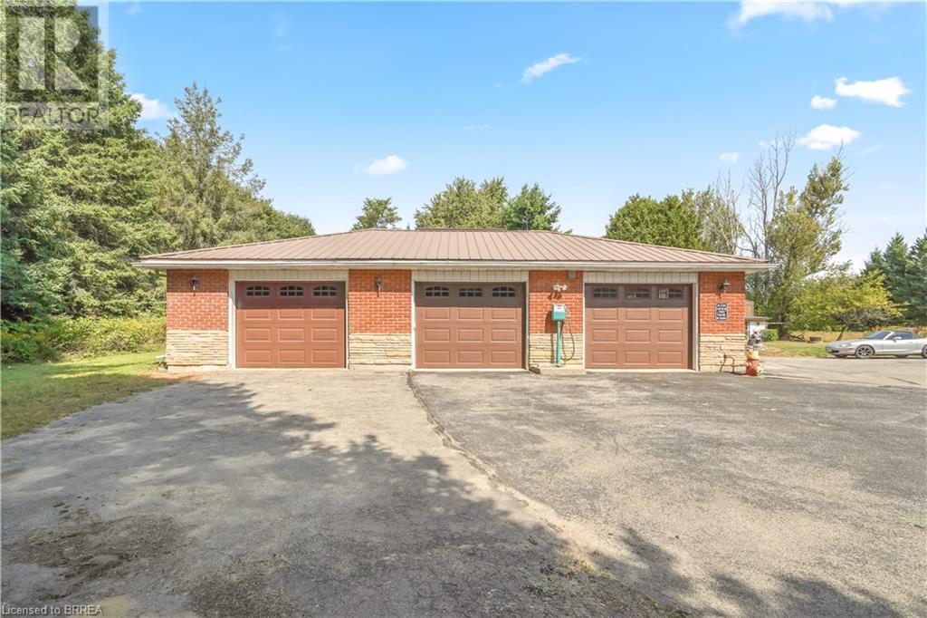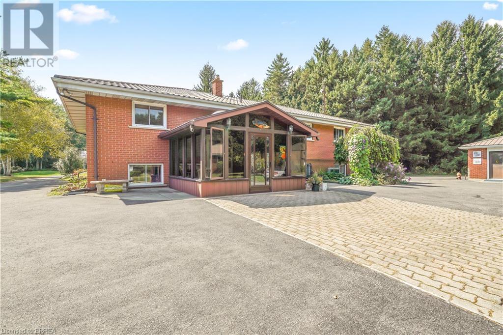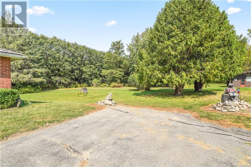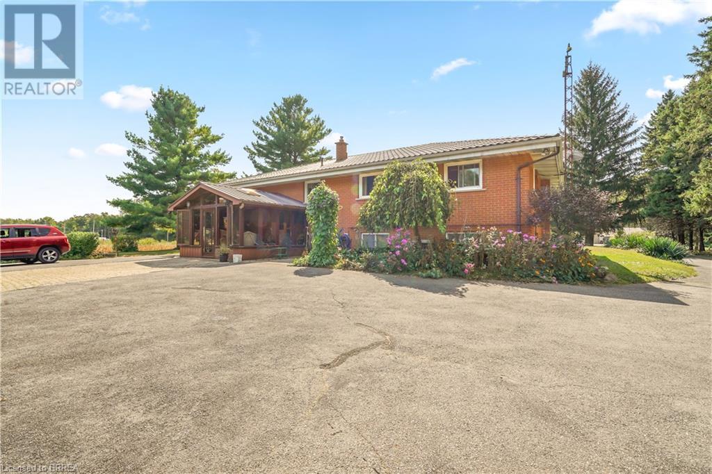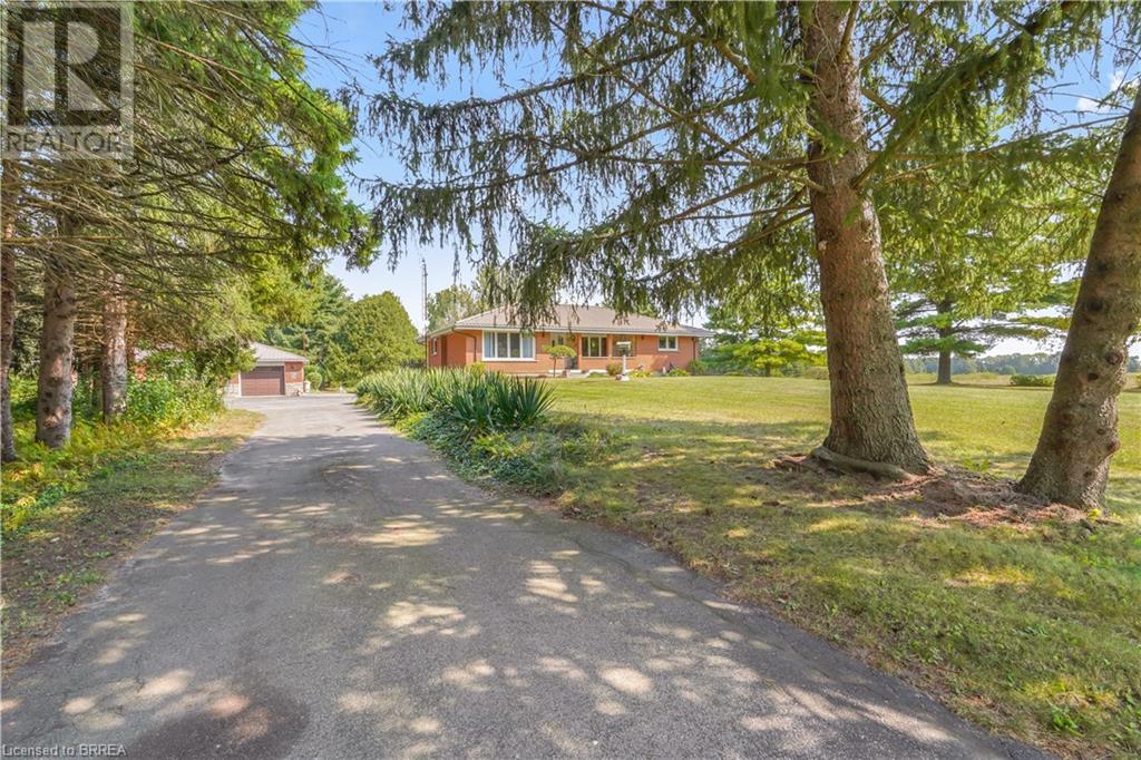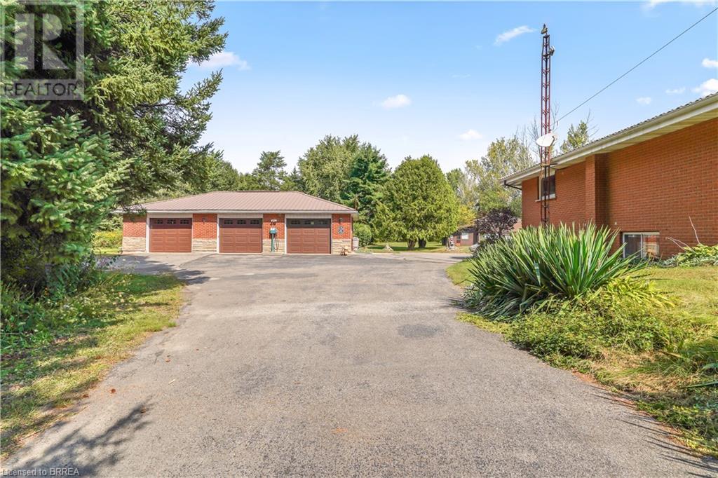 A Beautiful Country Property on 5.92 Acres! This lovely property in the highly sought-after town of Mount Pleasant features a spacious brick bungalow with a detached triple garage (46’ x 26’) that has a heated workshop with an exhaust fan, a barn, a convenient circular driveway with enough room to park 20+ vehicles for big family gatherings and sitting on a private 5.92 acres. You can enjoy your morning coffee on the covered front porch, there's an inviting living room with a big front window, a bright eat-in kitchen with hardwood flooring, tile backsplash, a modern countertop, and an abundance of cupboard space, a walk-in pantry, a formal dining room for family meals with pocket doors and crown moulding, a large master bedroom, an immaculate 4pc. bathroom with tile flooring, and a sunroom at the back of the house that has a vaulted ceiling with 2 skylights. Head downstairs where you’ll find a huge recreation room for entertaining that boasts a wet bar with built-in bar stools, a gas fireplace, big windows that allow plenty of natural light, and a hot tub, a 3pc. bathroom, a 4th bedroom that’s currently being used as an office, the laundry room, a storage room, and more. The 46’ x 26’ detached garage will be the perfect workshop with 2 bays that are heated and an exhaust fan, and the barn offers lots of possibilities as well. The sprawling 5.92 acres has a good mix of mature trees and open space and you can enjoy the peace and quiet that this beautiful country property has to offer. Updates include all main floor windows replaced with new North Star windows in 2016, new metal roof on the house in 2015, new metal roof on the detached triple garage in 2020, on-demand water heater that is owned, and more. Book a private viewing for this amazing property before it's gone! (id:55009)