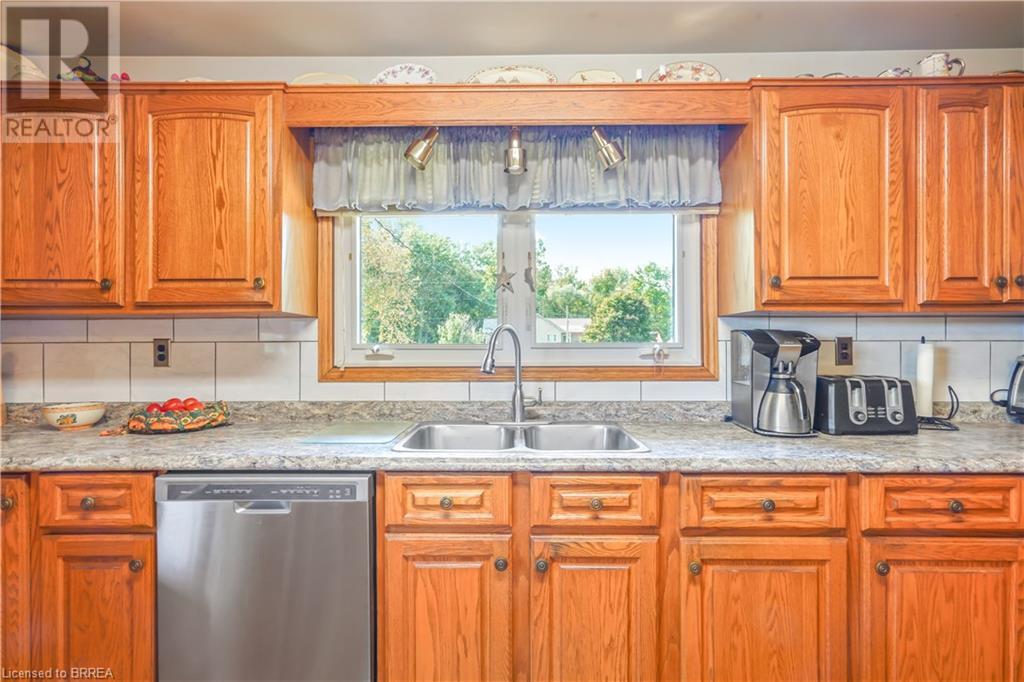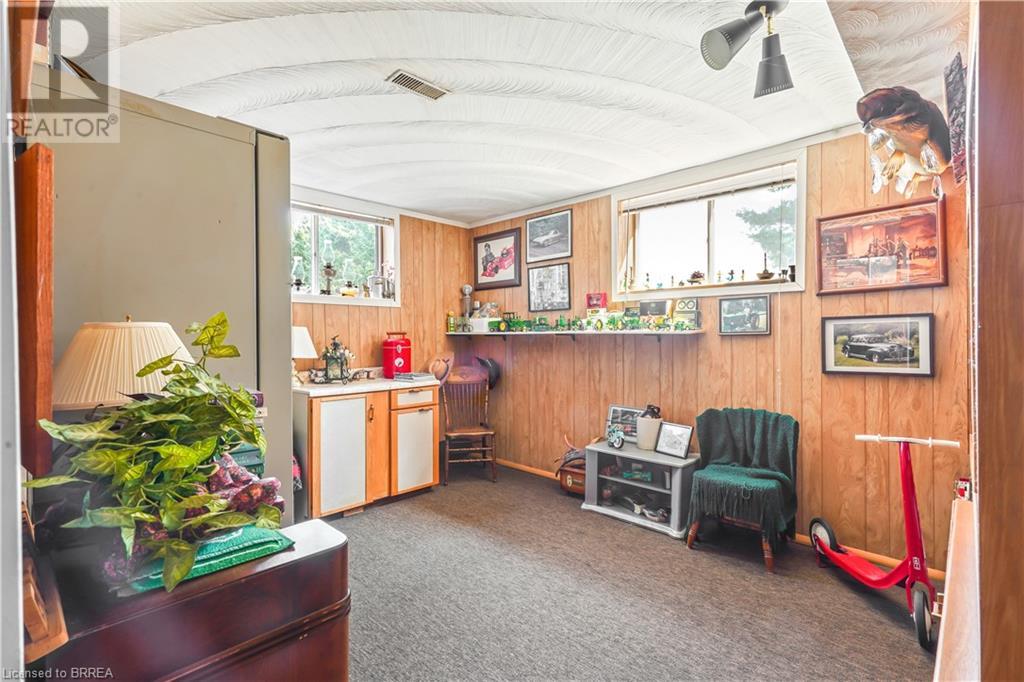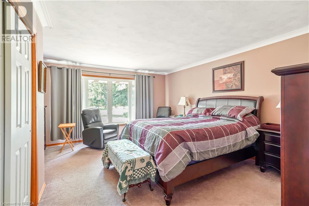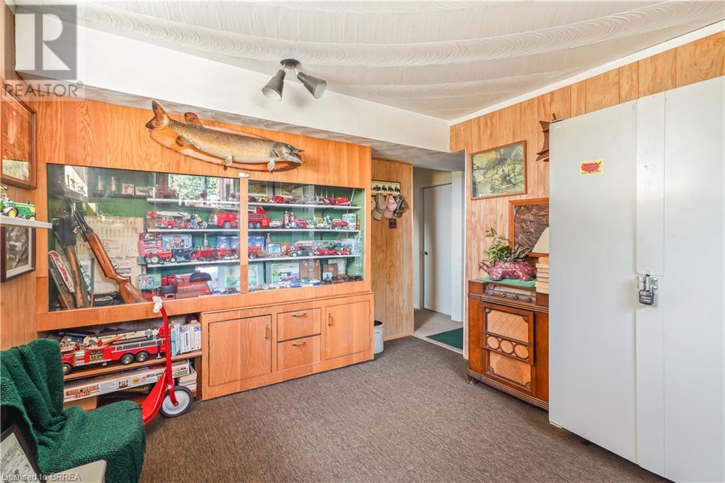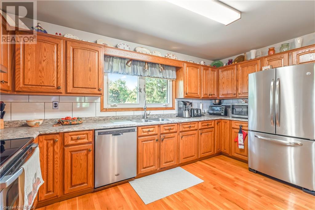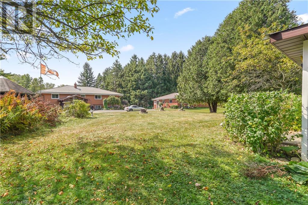 A Beautiful Country Property on 5.92 Acres! This lovely property in the highly sought-after town of Mount Pleasant features a spacious brick bungalow with a detached triple garage (46’ x 26’) that has a heated workshop with an exhaust fan, a barn, a convenient circular driveway with enough room to park 20+ vehicles for big family gatherings and sitting on a private 5.92 acres. You can enjoy your morning coffee on the covered front porch, there's an inviting living room with a big front window, a bright eat-in kitchen with hardwood flooring, tile backsplash, a modern countertop, and an abundance of cupboard space, a walk-in pantry, a formal dining room for family meals with pocket doors and crown moulding, a large master bedroom, an immaculate 4pc. bathroom with tile flooring, and a sunroom at the back of the house that has a vaulted ceiling with 2 skylights. Head downstairs where you’ll find a huge recreation room for entertaining that boasts a wet bar with built-in bar stools, a gas fireplace, big windows that allow plenty of natural light, and a hot tub, a 3pc. bathroom, a 4th bedroom that’s currently being used as an office, the laundry room, a storage room, and more. The 46’ x 26’ detached garage will be the perfect workshop with 2 bays that are heated and an exhaust fan, and the barn offers lots of possibilities as well. The sprawling 5.92 acres has a good mix of mature trees and open space and you can enjoy the peace and quiet that this beautiful country property has to offer. Updates include all main floor windows replaced with new North Star windows in 2016, new metal roof on the house in 2015, new metal roof on the detached triple garage in 2020, on-demand water heater that is owned, and more. Book a private viewing for this amazing property before it's gone! (id:55009)