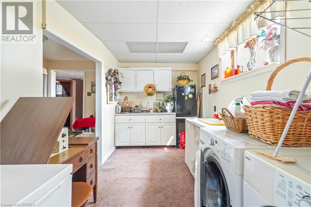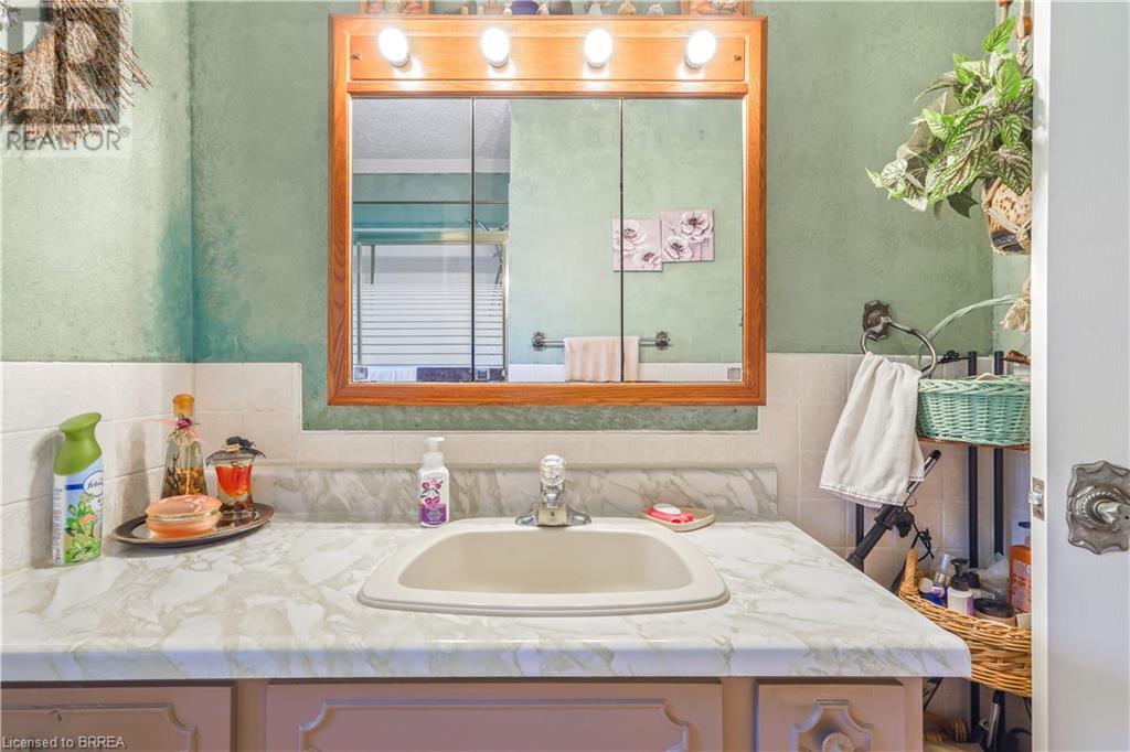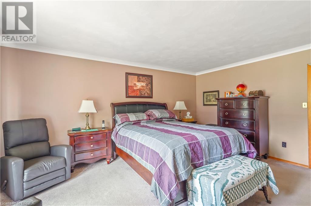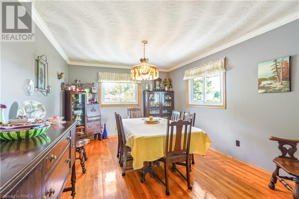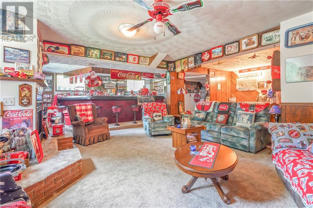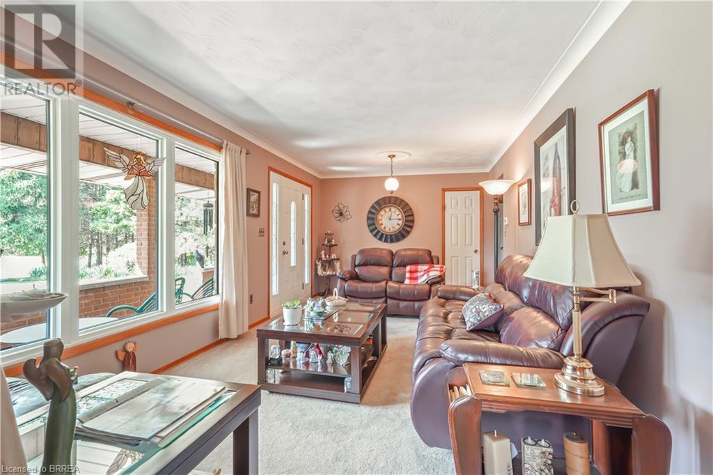 A Beautiful Country Property on 5.92 Acres! This lovely property in the highly sought-after town of Mount Pleasant features a spacious brick bungalow with a detached triple garage (46’ x 26’) that has a heated workshop with an exhaust fan, a barn, a convenient circular driveway with enough room to park 20+ vehicles for big family gatherings and sitting on a private 5.92 acres. You can enjoy your morning coffee on the covered front porch, there's an inviting living room with a big front window, a bright eat-in kitchen with hardwood flooring, tile backsplash, a modern countertop, and an abundance of cupboard space, a walk-in pantry, a formal dining room for family meals with pocket doors and crown moulding, a large master bedroom, an immaculate 4pc. bathroom with tile flooring, and a sunroom at the back of the house that has a vaulted ceiling with 2 skylights. Head downstairs where you’ll find a huge recreation room for entertaining that boasts a wet bar with built-in bar stools, a gas fireplace, big windows that allow plenty of natural light, and a hot tub, a 3pc. bathroom, a 4th bedroom that’s currently being used as an office, the laundry room, a storage room, and more. The 46’ x 26’ detached garage will be the perfect workshop with 2 bays that are heated and an exhaust fan, and the barn offers lots of possibilities as well. The sprawling 5.92 acres has a good mix of mature trees and open space and you can enjoy the peace and quiet that this beautiful country property has to offer. Updates include all main floor windows replaced with new North Star windows in 2016, new metal roof on the house in 2015, new metal roof on the detached triple garage in 2020, on-demand water heater that is owned, and more. Book a private viewing for this amazing property before it's gone! (id:55009)