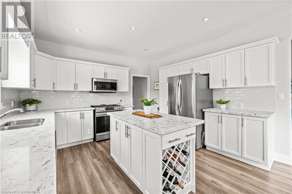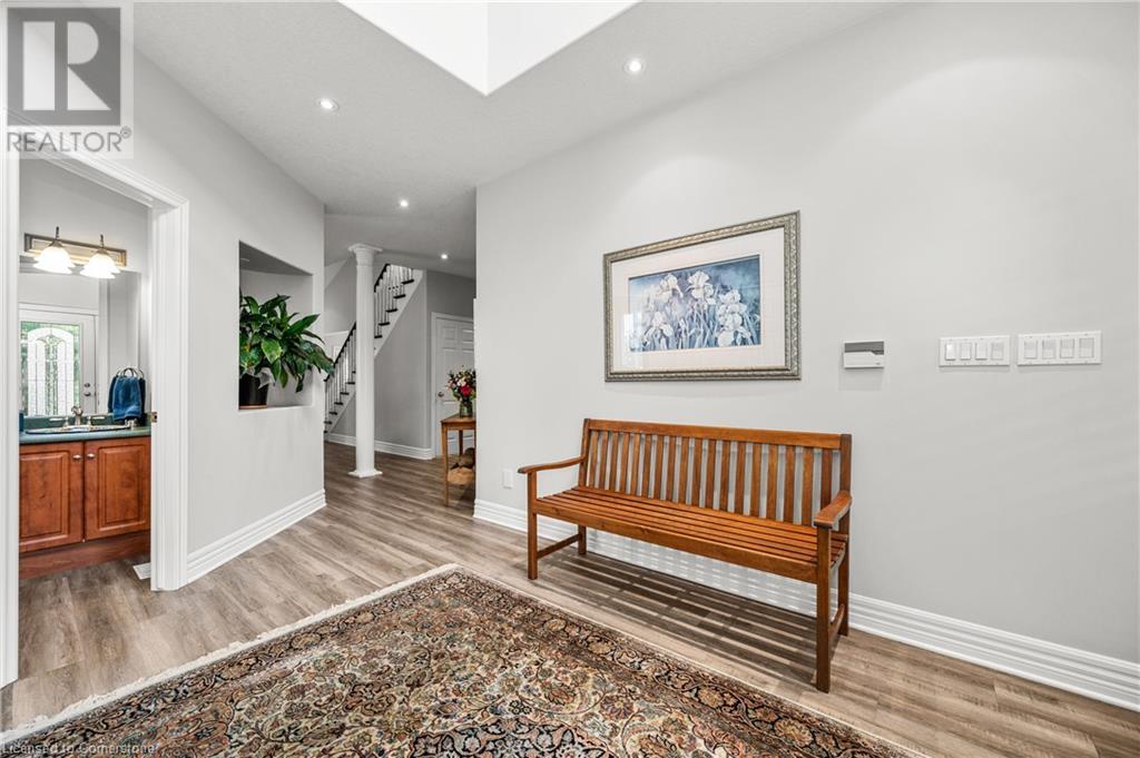 Discover this stunning 3+1 bedroom home with a den, perfectly situated on a quiet street in the desirable Stoney Creek Mountain area. Recently renovated, this well designed floor plan features a over sized foyer upon entry. Continue into the home and you will find a formal separate dining area and a large kitchen with space for a dining table and an island with seating. Your stainless steel appliances will make entertaining and family meals an easy every day task. The double French doors take you directly into the beautifully landscaped backyard. The light-filled great room boasts a vaulted ceiling and a cozy gas fireplace. Upstairs, youll find 3 bedrooms including your primary bedroom retreat featuring a massive bedroom with window seat, 5 pc ensuite and a large walk-in closet. The two additional bedrooms are spacious but we're not done there. This level features a bonus room ideal for a home office or flex space and a 2nd 4-pc bathroom rounds out this space. The recently renovated basement offers a 4th bedroom, a 3 pc bath, large open space for a family room, gym or anything your heart desires. Looking for a separate entrance or 2nd unit potential? We've got it! Entry through the walk-up garage access makes this perfect for a potential 2nd unit. For those who love to tinker, there's a large workshop for all your creative needs. This home features a whole home sound system capable with speakers on all levels (equipment required) and did I mention the garage has an epoxy floor? On to the backyard... oh, the back yard! Now this is an entertainer's dream complete with an inground pool, a gazebo-covered dining or sitting area, and a fire pit. This home truly has it all the comfort, style, and space to enjoy both indoors and out. Too many updates to list! Come on in to preview this home. This one won't last long when it checks every box! (id:55009)